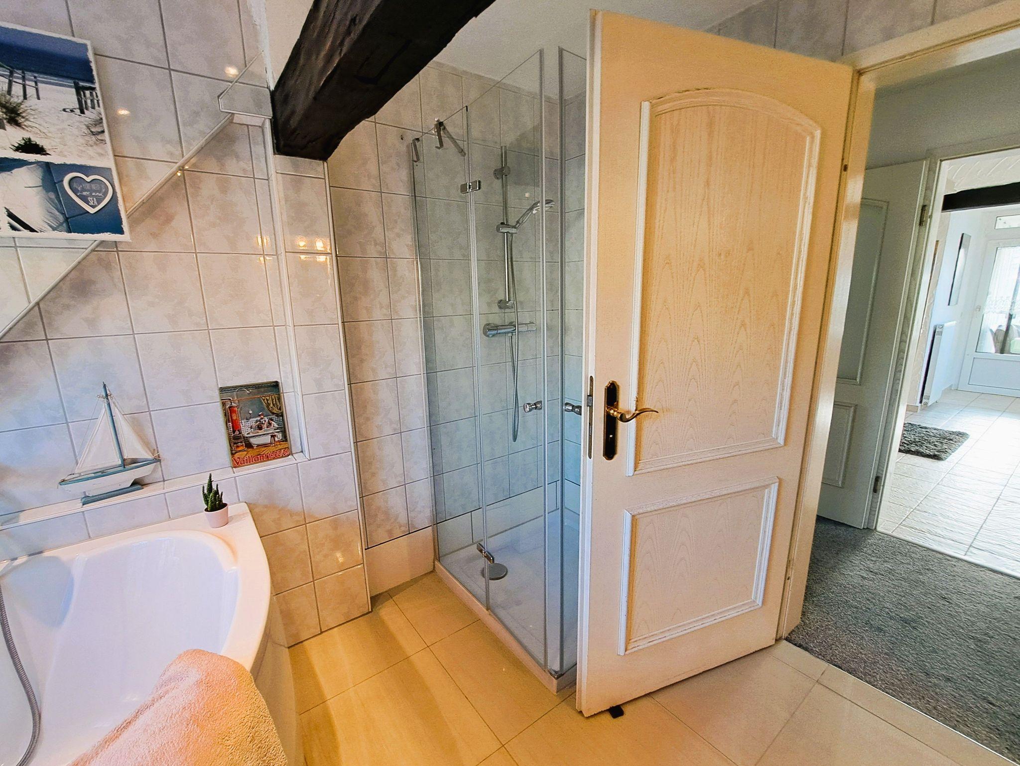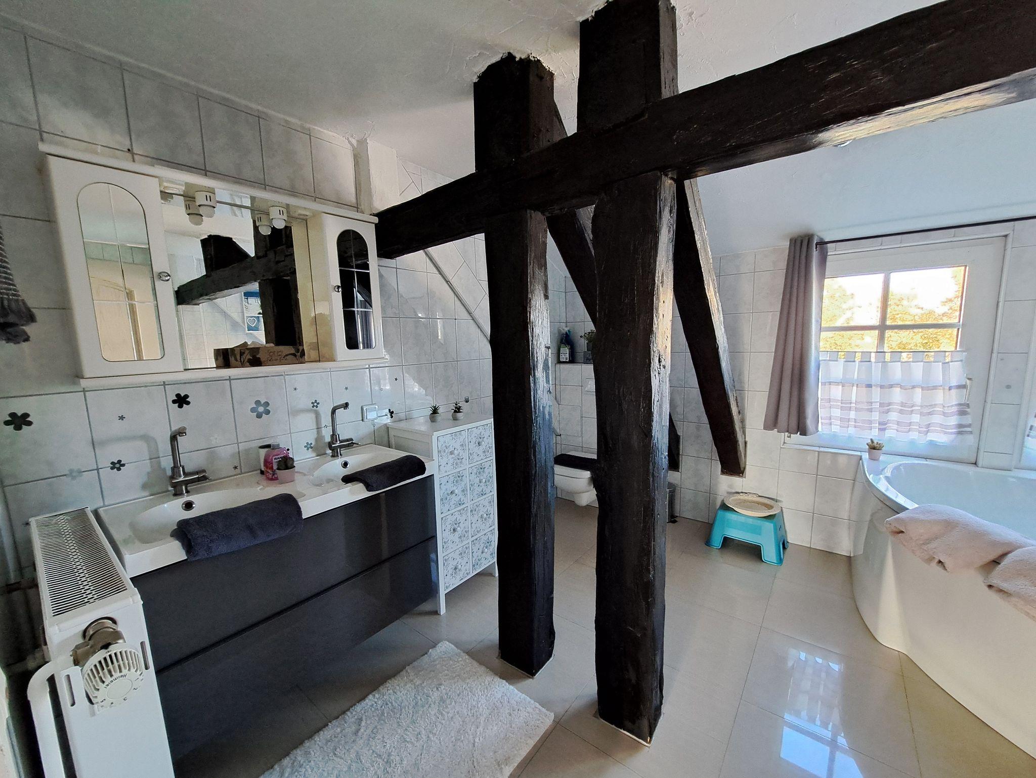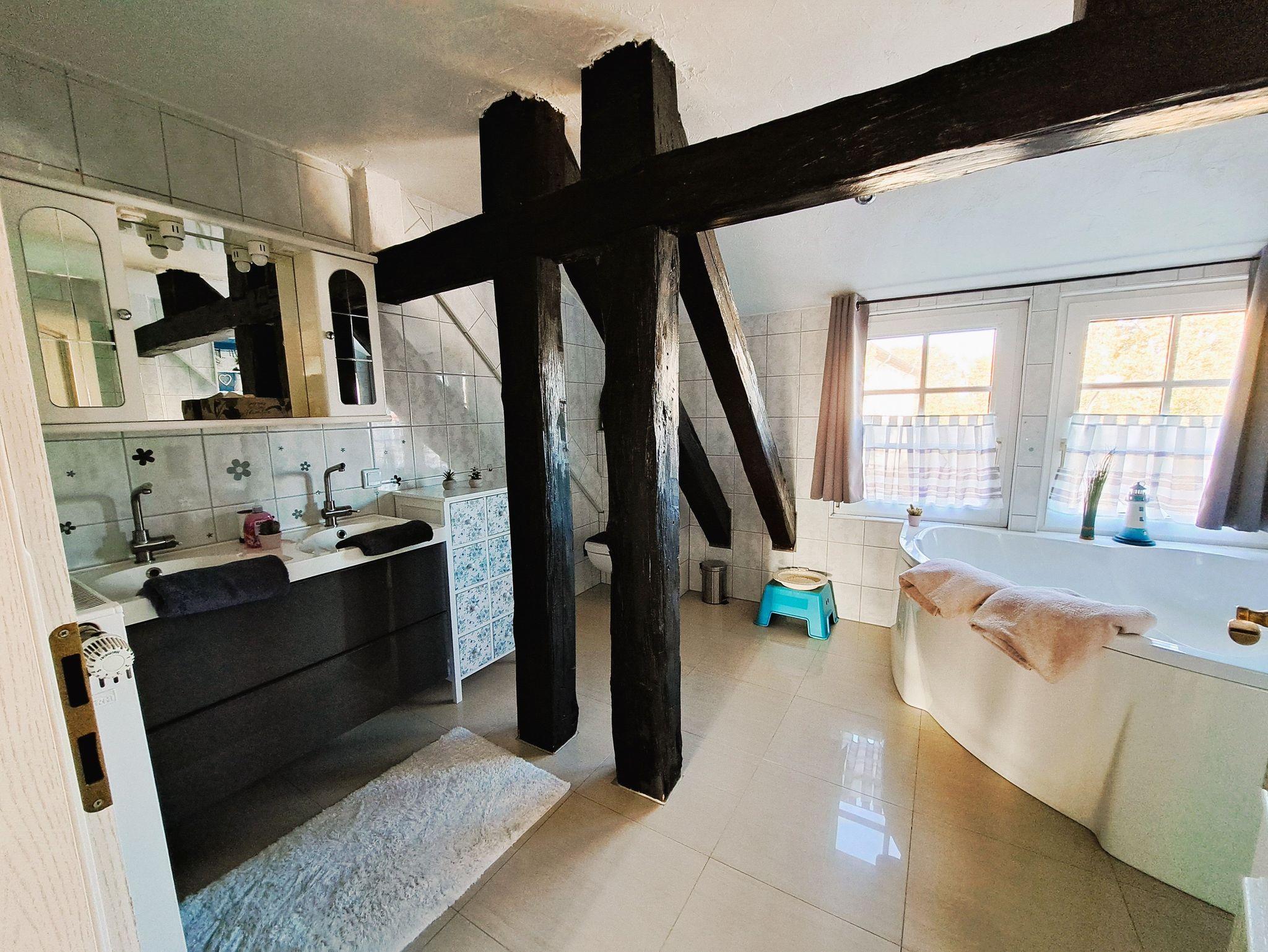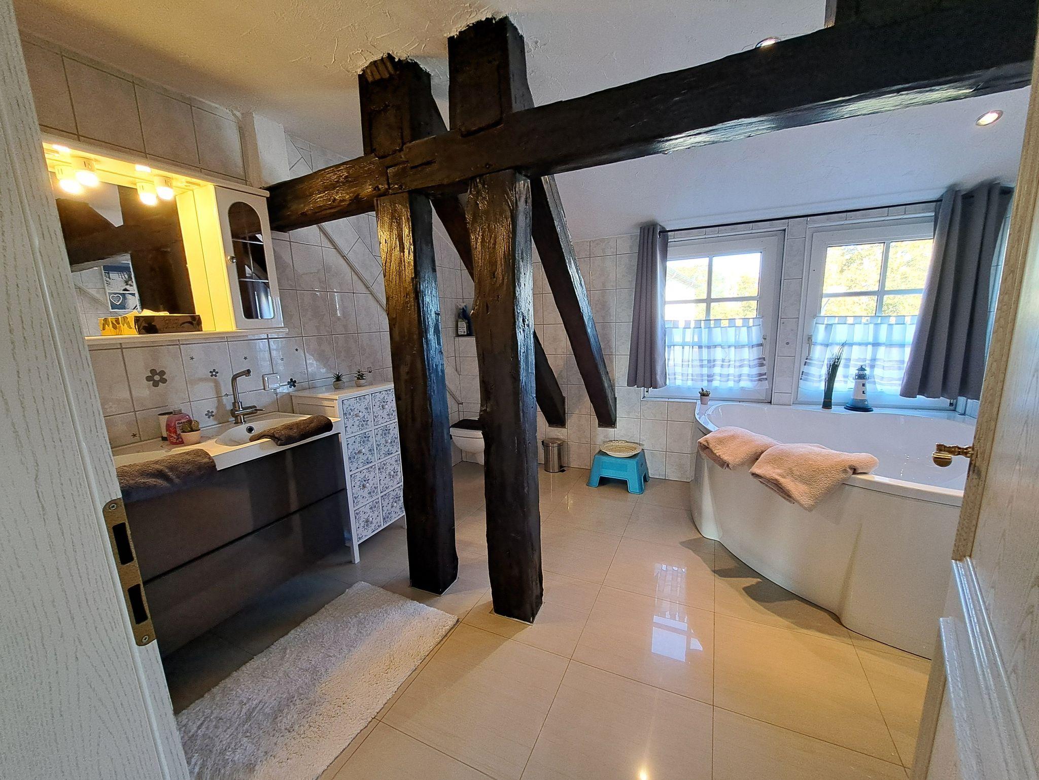 Das Tageslicht-Badezimmer verwöhnt Sie mit einer großen Eckbadewanne, einer separaten Dusche, einem Waschtisch und einem WC. Für Ihren Komfort sind Bettwäsche und Handtücher in der Erstausstattung inklusive.