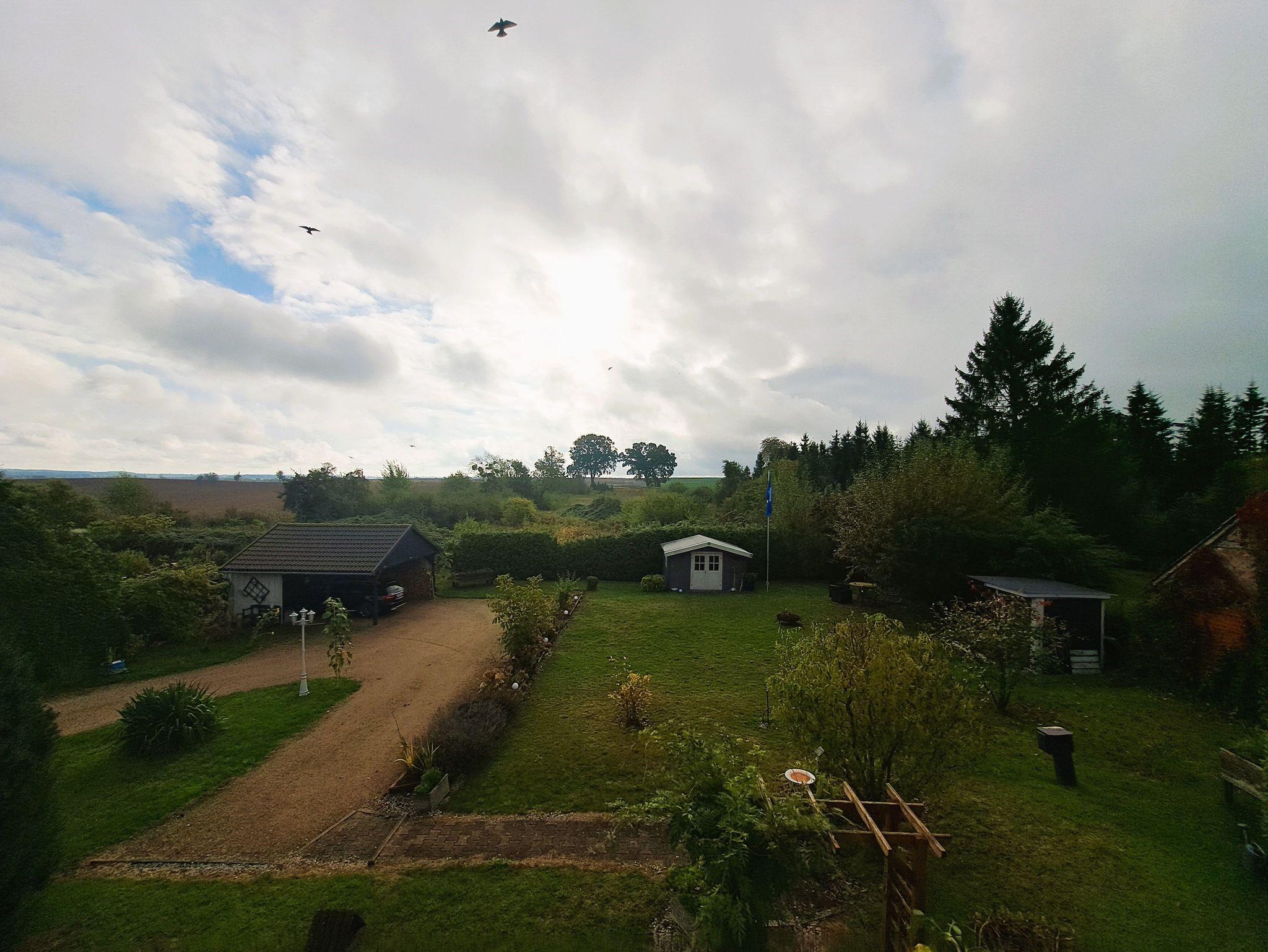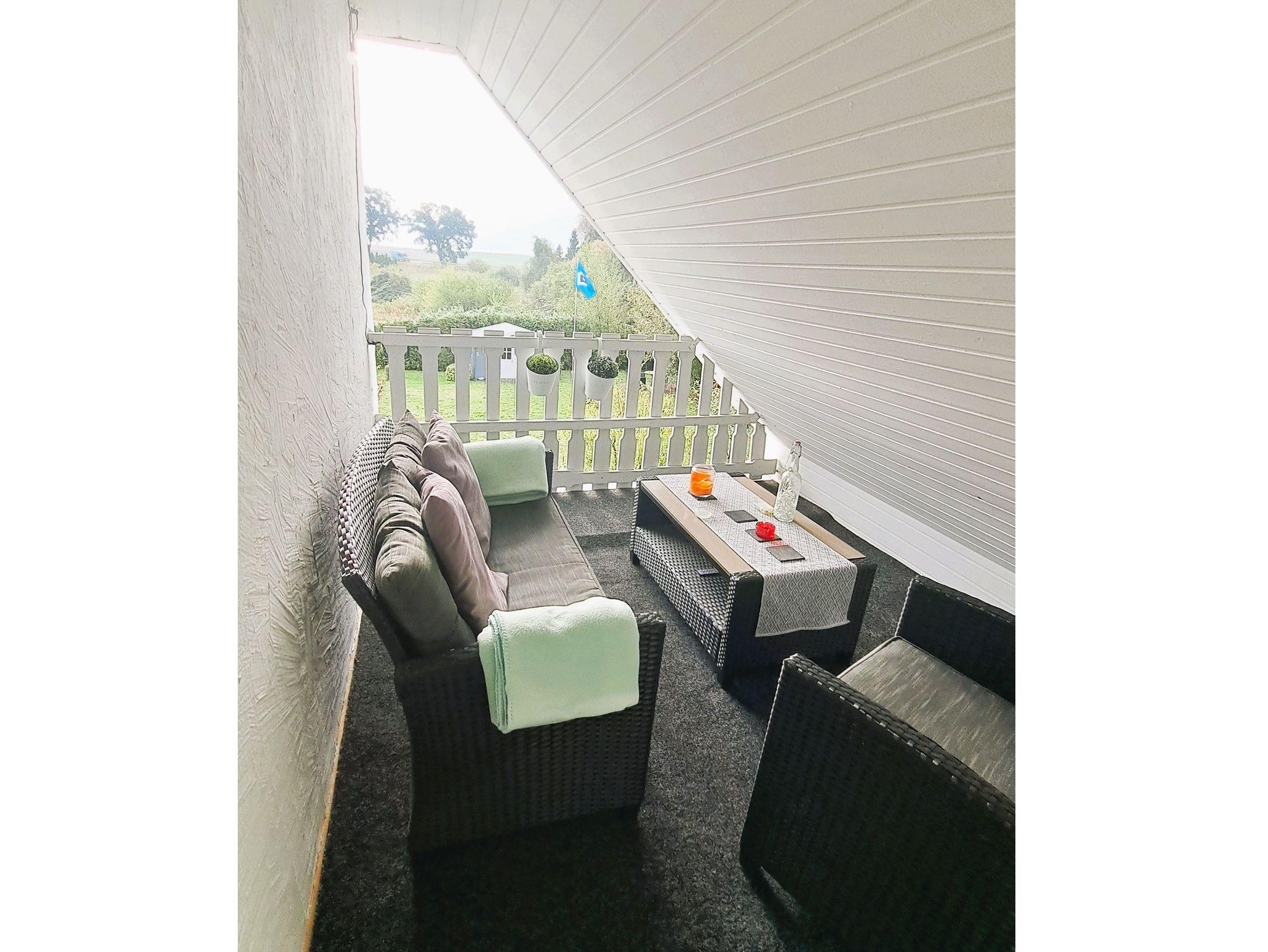 Genießen Sie unvergessliche Tage in unserer charmanten Ferienwohnung im 1. Obergeschoss, die Ihnen einen überdachten Balkon mit komfortablen Sitzmöbeln und einem Tisch bietet. Lassen Sie den Blick über die weiten Felder und die idyllische Natur schweifen und erleben Sie Momente der Entspannung.
