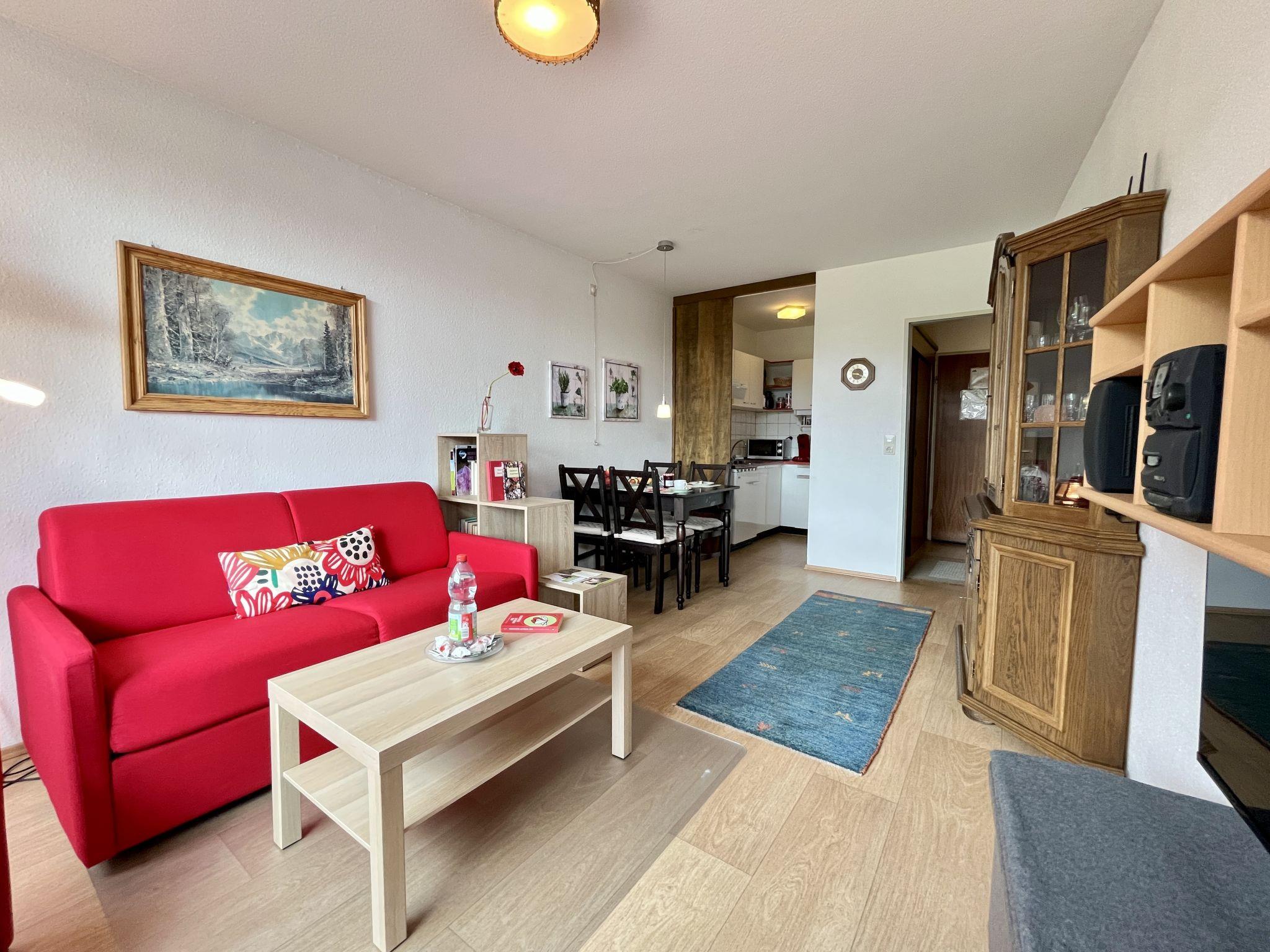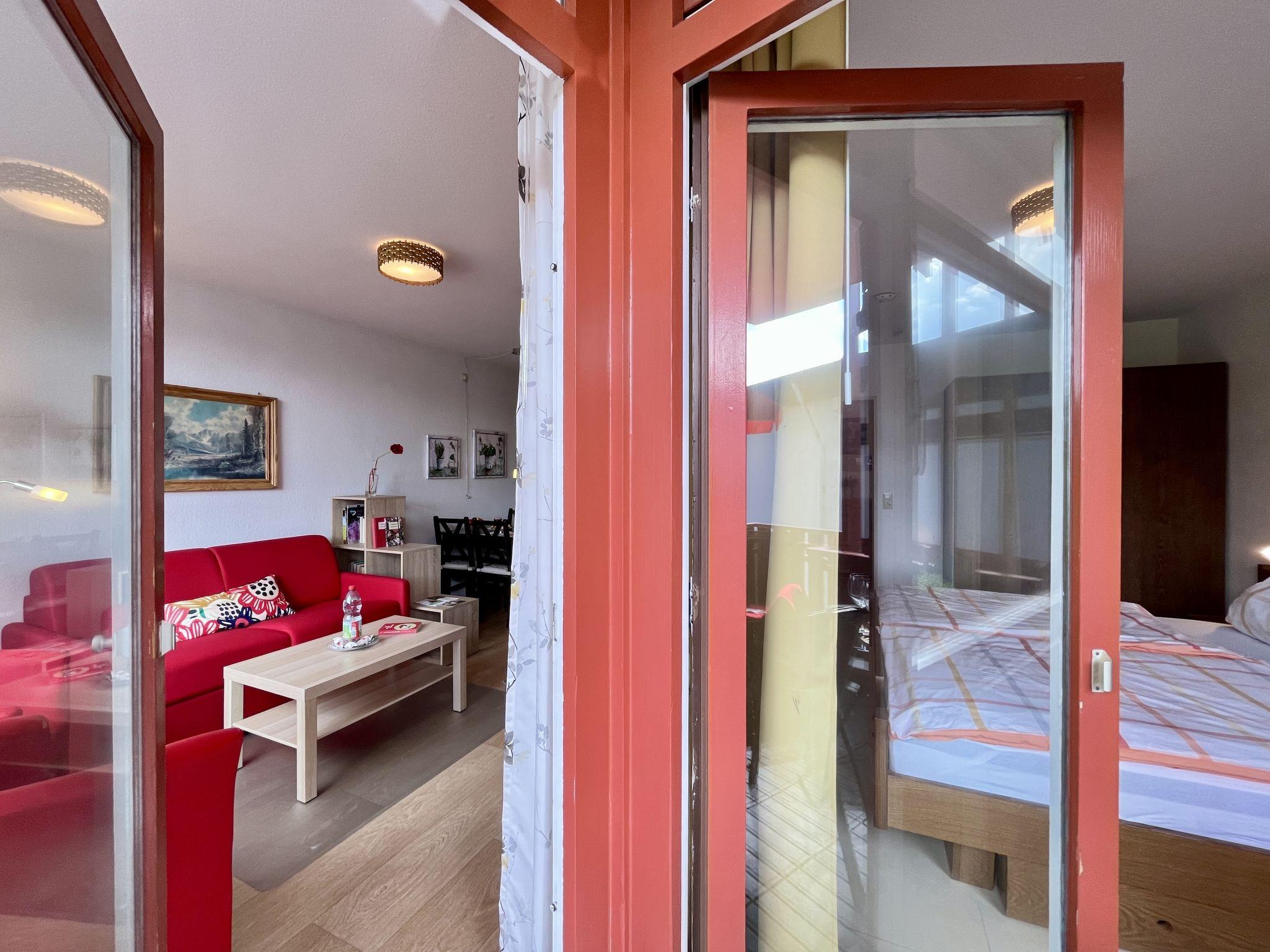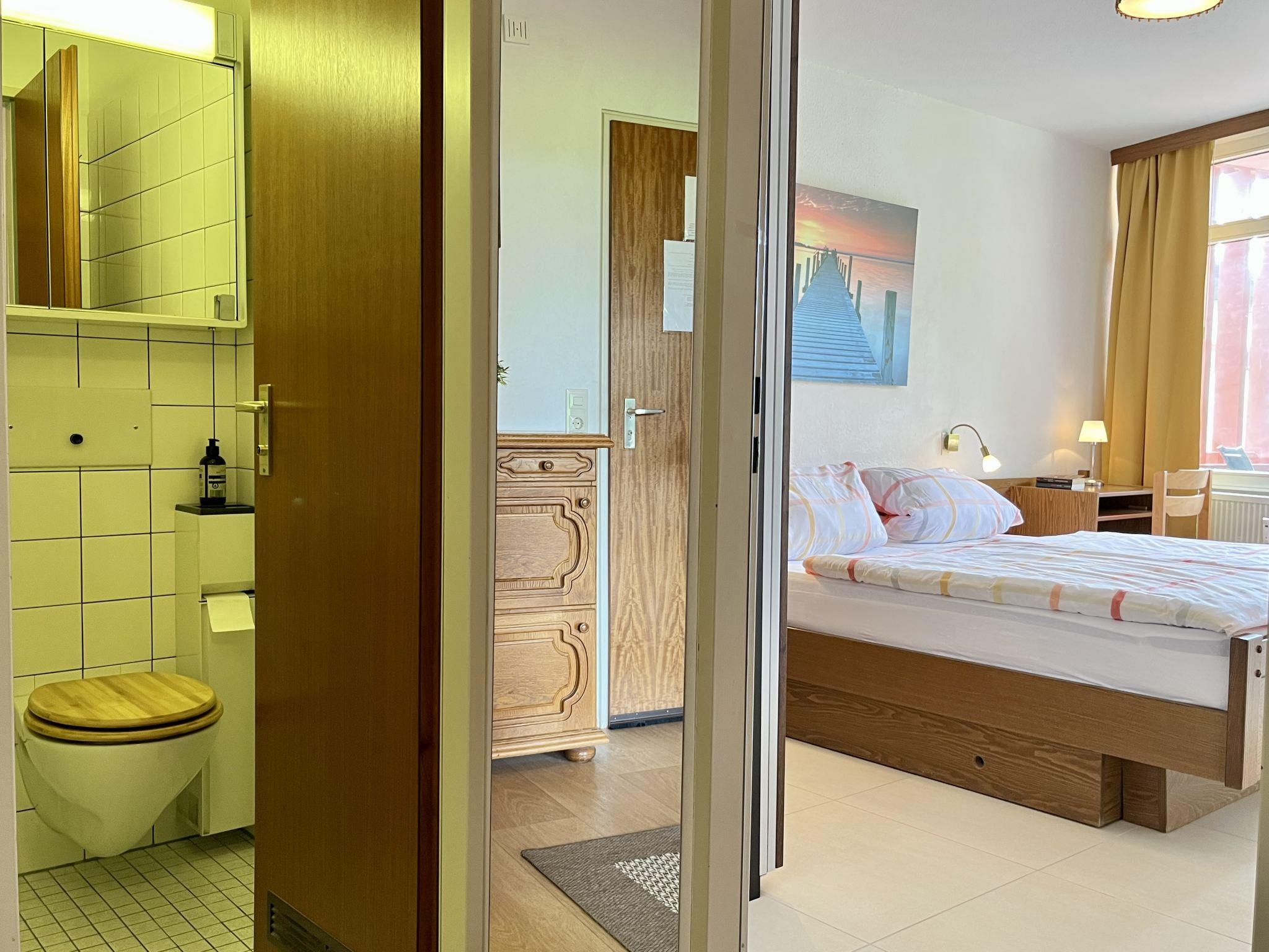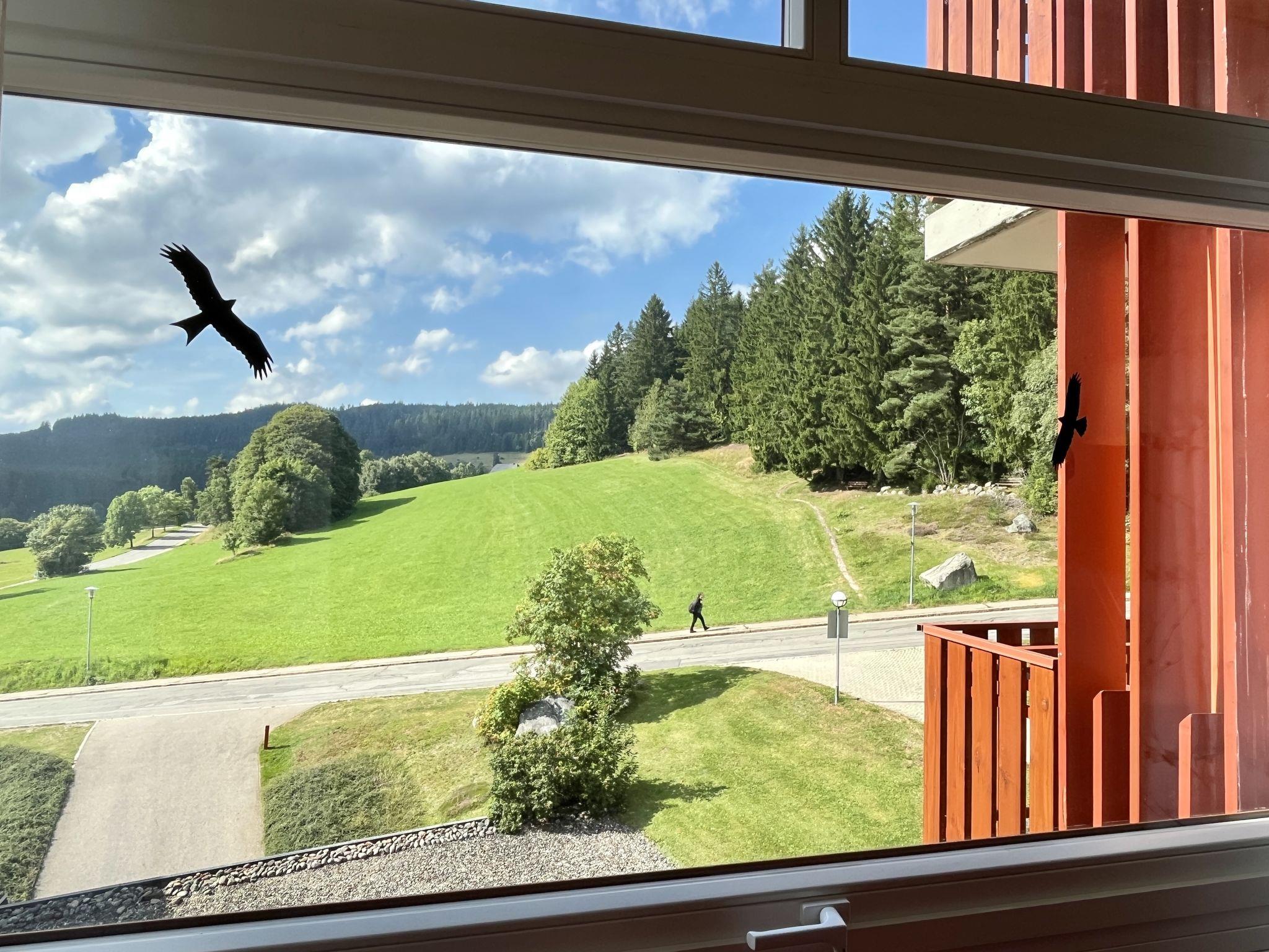 "Schöne Aussicht (App 1406 / EX-Kurhotel)", 2-room apartment 45 m2 on 4th floor. Bright, cosy furnishings: living/dining room with 1 double sofabed and satellite TV (flat screen), hi-fi system and DVD. Exit to the balcony. 1 double bedroom with 1 double bed. Exit to the balcony. Small kitchenette (2 hot plates, microwave, electric coffee machine). Bath/WC. Balcony 6 m2. Balcony furniture. Beautiful view of the countryside and the forest. Facilities: iron, hair dryer. Internet (WiFi, extra). Garage. Please note: fridge without freezer, non-smokers only. Smoke alarm.
