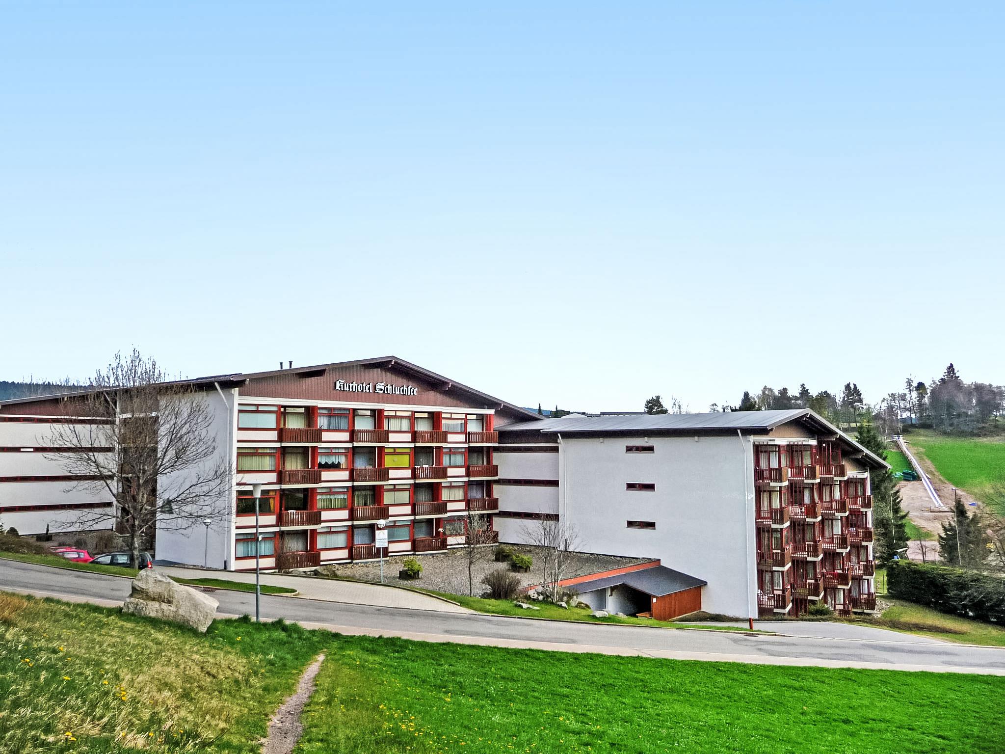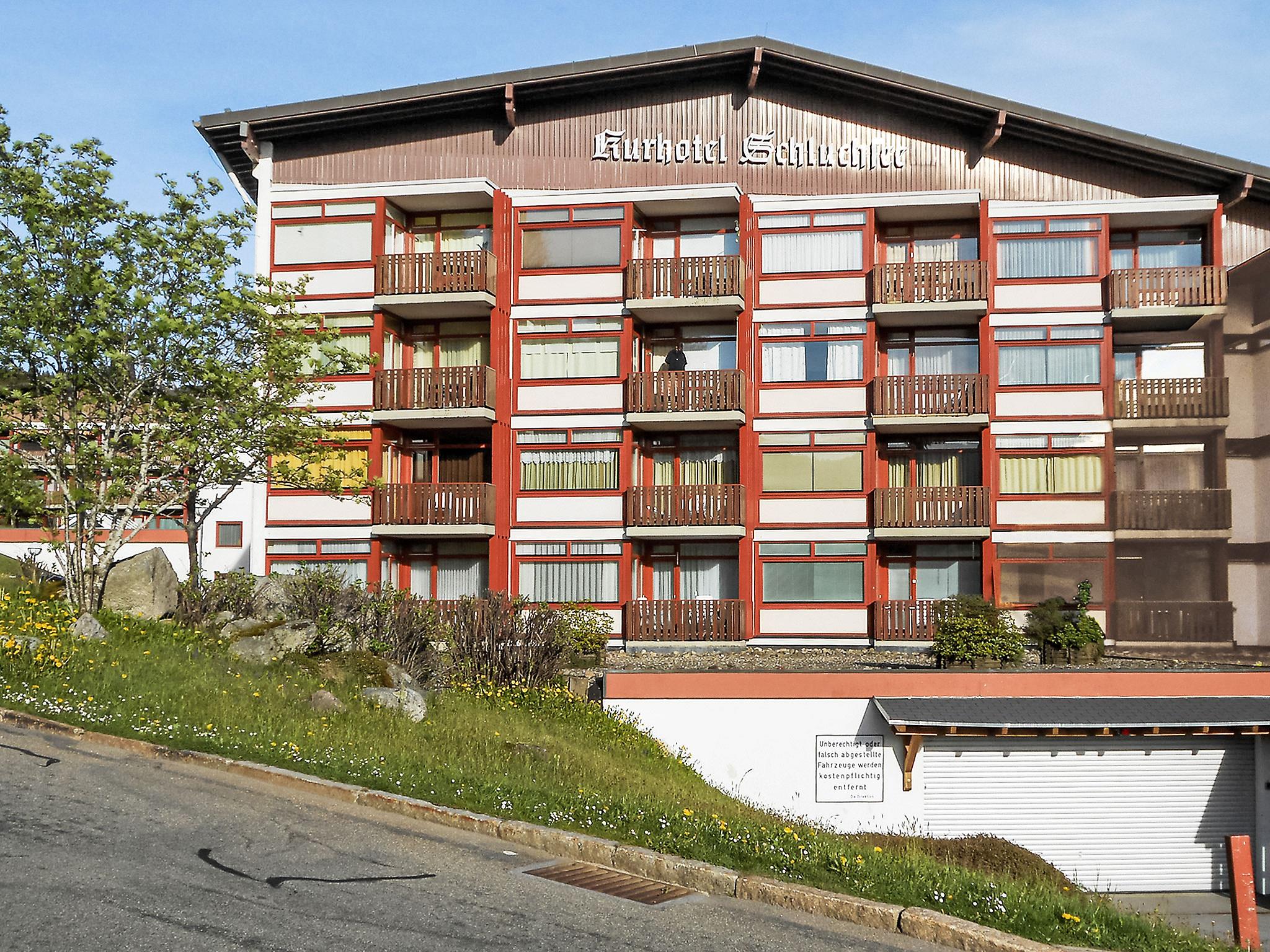 Apartment block "EX-Kurhotel Schluchsee", surrounded by trees and meadows. Above Schluchsee, 500 m from the centre, 100 m from the edge of the forest, 500 m from the lake. For shared use: large garden with lawn and trees, indoor pool heated (14 x 5 m, depth 130 - 140 cm, pool opening hours: 07:00-13:00 and 15:00-22:00). Shower/WC in the pool area, terrace, garden furniture. In the complex: lounge, internet access, WiFi, sauna (extra). Fitness room (extra). Billiard table, playroom, table football, lift, storage room for skis, central heating system, washing machine (extra), tumble dryer (for shared use, extra). Parking at the house, communal covered parking at the house. Shop, grocery, supermarket 600 m, shopping centre 10 km, restaurant, bakery, café 600 m, bicycle rental 500 m, 10 minute walk to the centre, bus stop 50 m, railway station 800 m, sandy beach 500 m, 300 m, outdoor swimming pool 800 m, bathing lake 500 m, lake Schluchsee 500 m. Sailing school 800 m, tennis, indoor tennis centre 200 m, walking paths from the house 1 m, cycle lane 50 m, ski lift 2 km, sled run 50 m, cross country ski track 200 m, children's playground 50 m, fishing possibilities 3 km. Nearby attractions: Staatsbrauerei Rothaus 10 km, Schwarzwaldhaus der Sinne 10 km, Dom St. Blasien 15 km, Badeparadies Titisee-Neustadt 25 km, Freiburg 55 km, Spasspark Hochschwarzwald 500 m. Well-known ski regions can easily be reached: Feldberg / Hochschwarzwald 20 km. Well-known lakes can easily be reached: Schluchsee 500 m, Titisee 25 km. Hiking paths: Schluchseer Jägersteig 1 km, Rothauser Land 8 km, Schluchseegebiet / Feldberggebiet. The three apartment buildings of the former spa hotel are connected by a corridor, only one of the buildings has an elevator. Heated indoor pool (13.60 x 4.30 m / 1.35 m deep), massage jets, changing room/shower/toilet in the pool area.