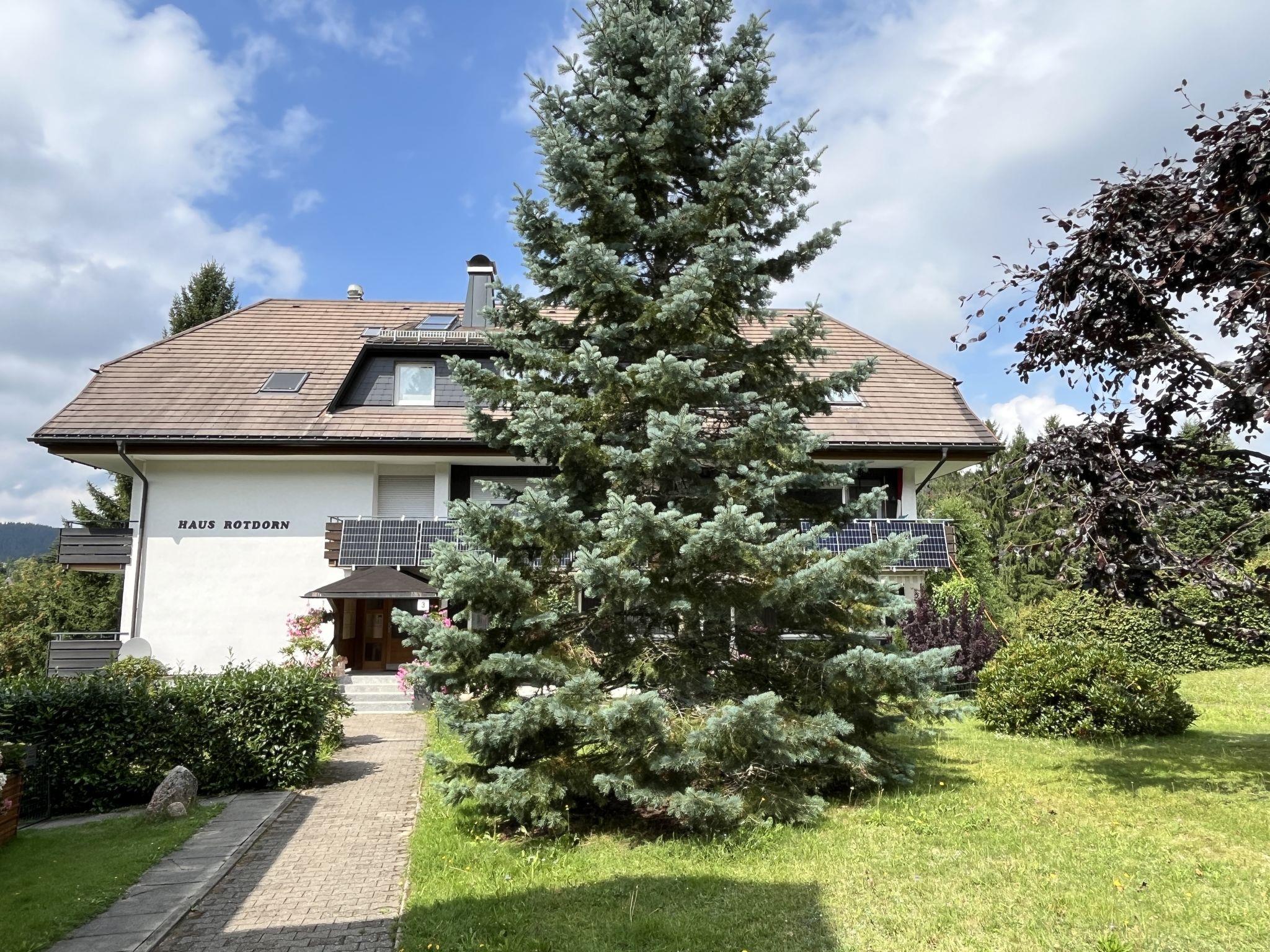 Schluchsee 14 km from St. Blasien: Apartment block "Rotdorn", 3 storeys, detached, surrounded by trees. On the outskirts, 800 m from the centre of Schluchsee, in a quiet, sunny position in the residential district, 100 m from the edge of the forest, 750 m from the lake, 20 m from the stream. In the house: washing machine (extra), drying room. Single garage at the house. Grocery 800 m, supermarket 2000 km, shopping centre 11 km, restaurant 600 m, bakery, café 800 m, 10 minute walk to the centre, bus stop "Bahnhof Schluchsee" 750 m, railway station "Schluchsee", pebble beach, outdoor swimming pool 750 m, lake Schluchsee 700 m. Sailing school 5 km, walking paths from the house 1 m, cycle lane 500 m, slopes 4 km, cross country ski track 600 m, ice rink, children's playground 250 m, fishing possibilities 1 km. Nearby attractions: Staatliche Brauerei Rothaus 8 km, Haus der Sinne, Skulpturengarten 10 km, Dom St. Blasien 14 km, Menzenschwander Wasserfälle und Klamm 15 km, Badeparadies Titisee-Neustadt 20 km, Black Forest Line / Wasserfälle Todtnau 33 km. Well-known ski regions can easily be reached: Feldberg / Hochschwarzwald 17 km. Well-known lakes can easily be reached: Schluchsee 800 m, Titisee 16.5 km. Hiking paths: Schluchseegebiet mit Jägersteig, Feldberggebiet, Hotzenwald, Schwarzwald. Please note: no lift.
