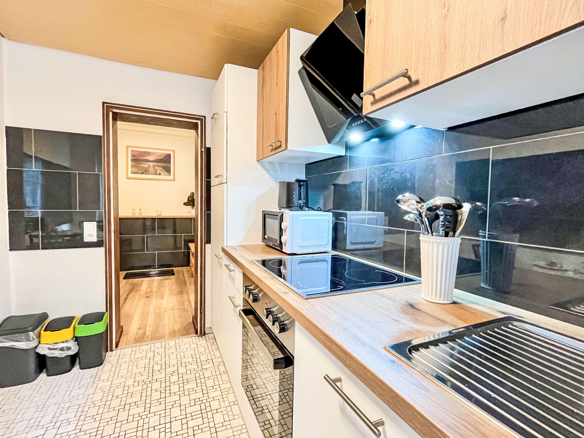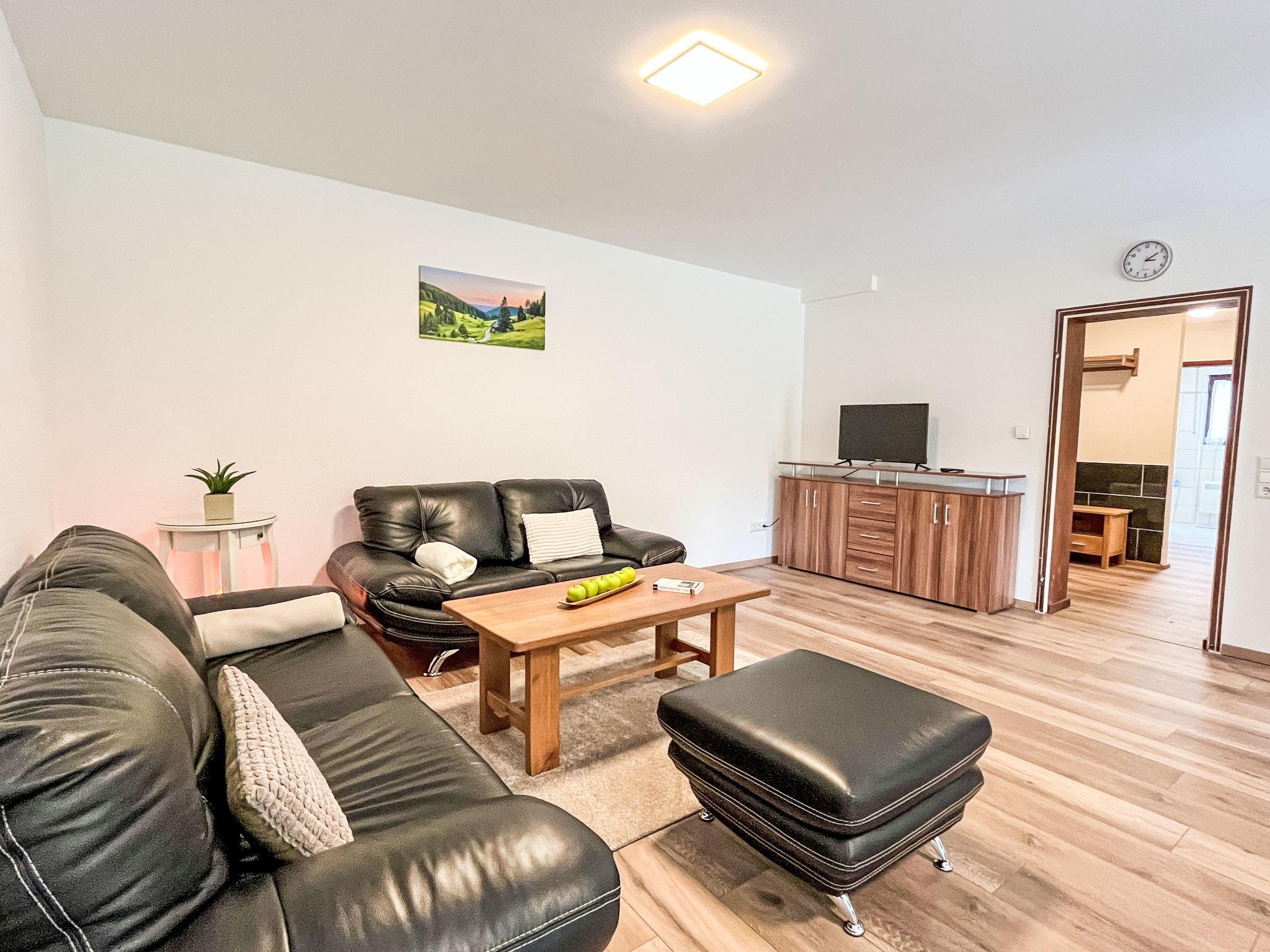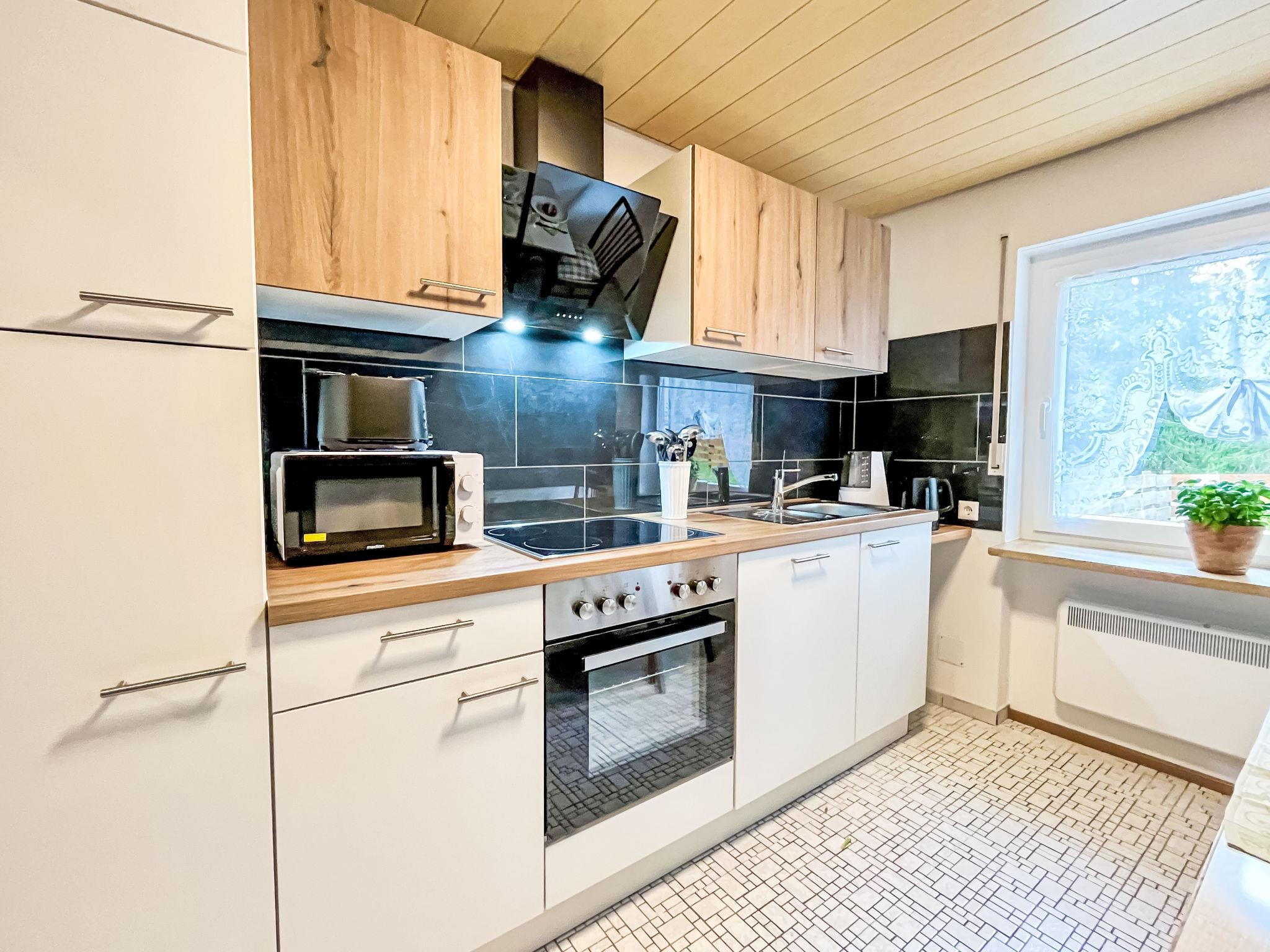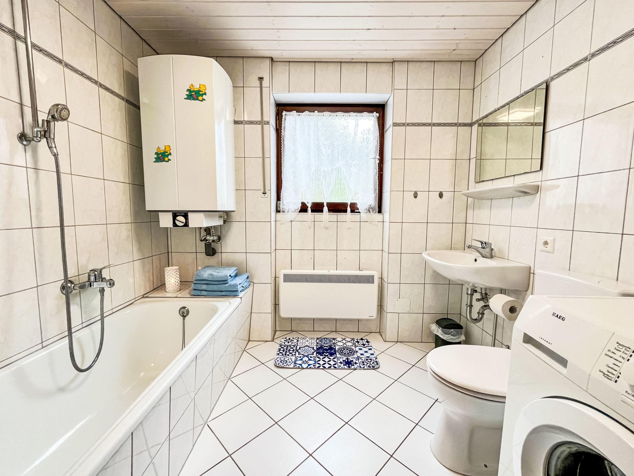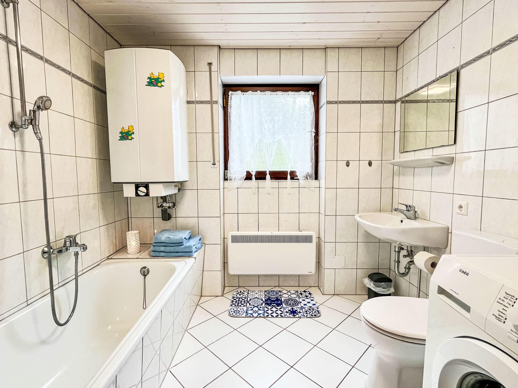 "Habsmoosbach", 2-room granny flat 70 m2. Spacious, partly renovated in 2025, practical and beautiful furnishings: living/dining room with panoramic window with satellite TV (flat screen), electric heating. Exit to the terrace. 1 large room with 1 double bed (2 x 90 cm, length 200 cm). Kitchen (oven, dishwasher, 4 ceramic glass hob hotplates, toaster, kettle, microwave, electric coffee machine) with dining table. Bath/WC. Large terrace. Terrace furniture, electric barbecue. Beautiful view of the garden and the forest. Facilities: washing machine, hair dryer. Internet (WiFi). Parking (1 car) at the house. Please note: non-smokers only. Private entrance, smoke alarm, fire extinguisher.