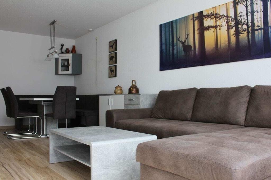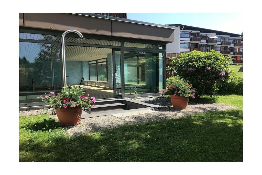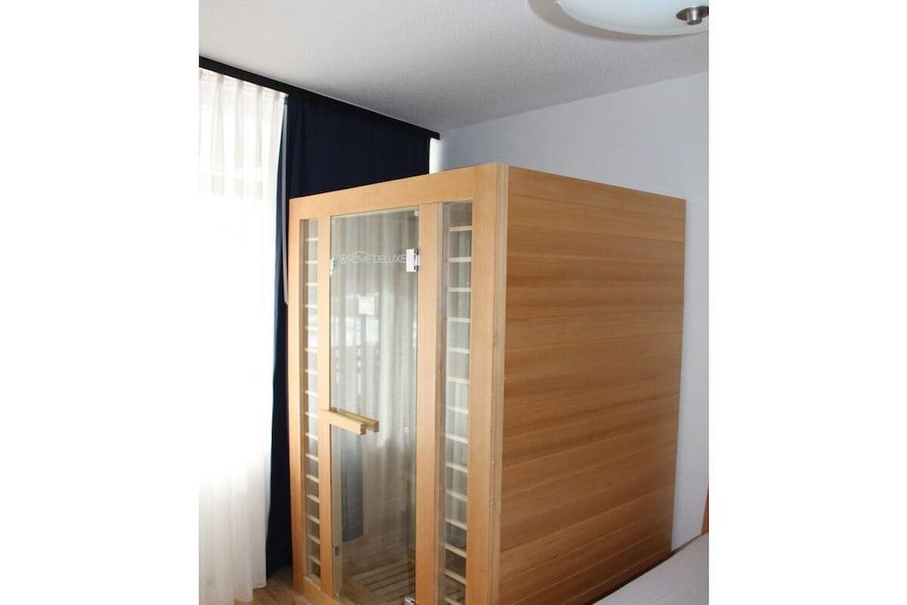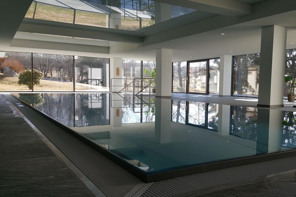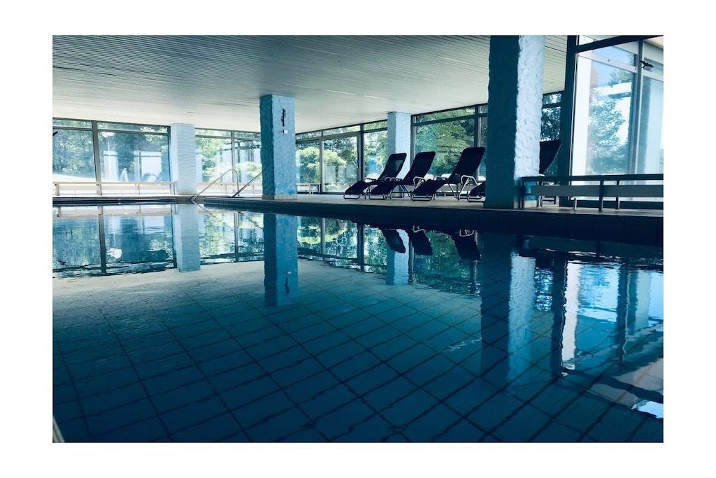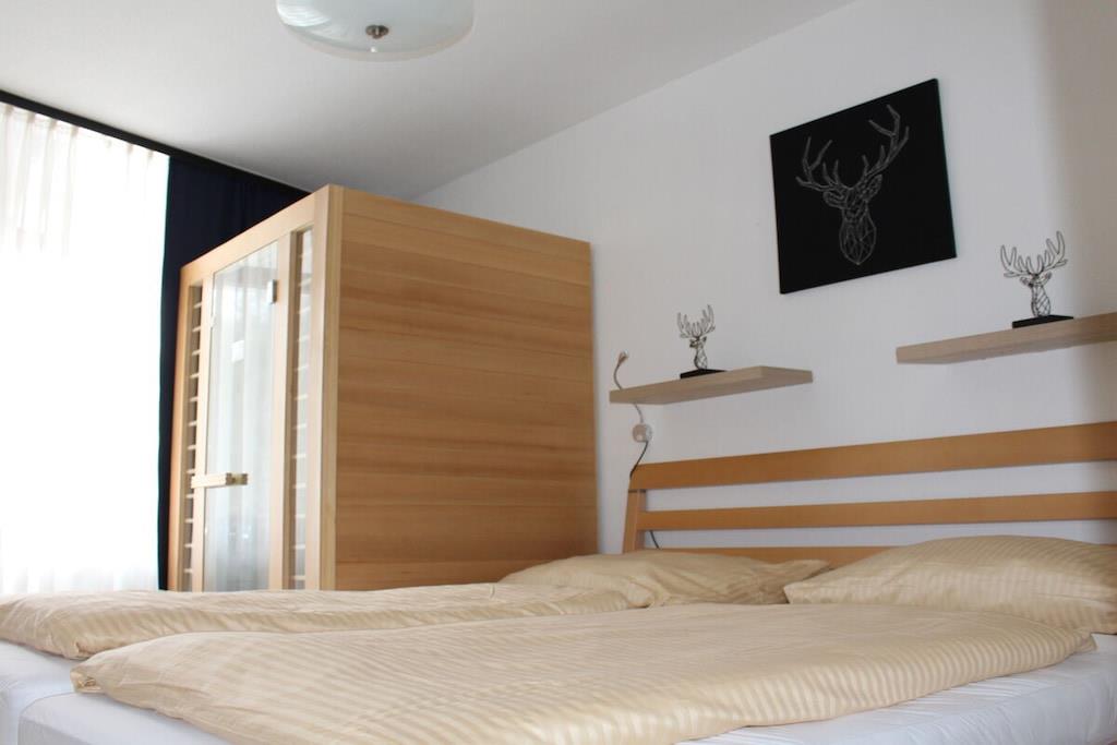 Moderne lejlighed af høj kvalitet, der er egnet til op til 6 personer. Inkluderer indendørs pool, parkering og Wi-Fi i lejligheden. Størrelse: ca. 58 kvm Denne rummelige lejlighed har et fuldt udstyret køkken med opvaskemaskine, mikrobølgeovn, komfur og ovn samt alt nødvendigt køkkenudstyr til omfattende madlavning. Den har også to soveværelser, en stor stue, en entré, et badeværelse med bruser, en sauna og en balkon. Lejlighedskomplekset har et spillerum med bordfodbold, billard og bordtennisbord. De nødvendige bordtennisbats og -bolde findes i lejligheden.