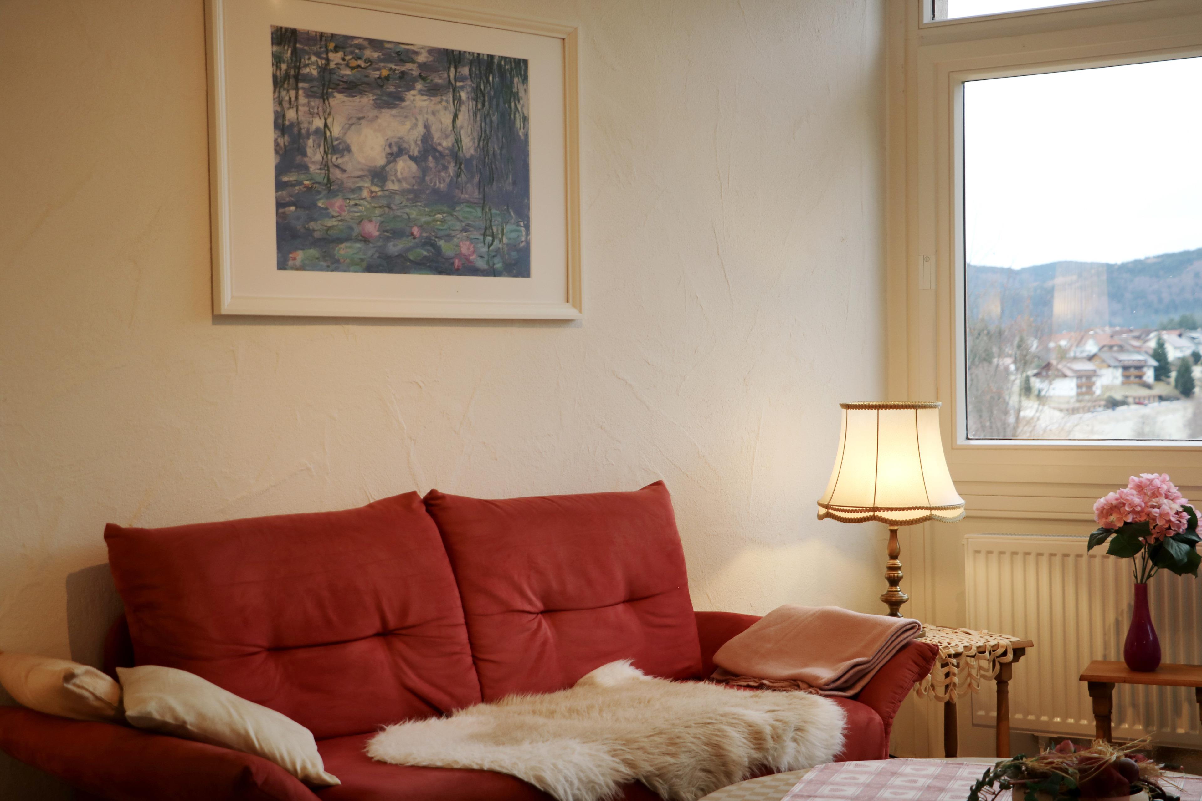 Herzlich Willkommen in unserem gemütlichen Apartment 1301 - Weitblick im Kurhotel Schluchsee. Genießen Sie im geräumigen Wohnzimmer den schönen Ausblick Richtung Schluchsee und Feldberg.