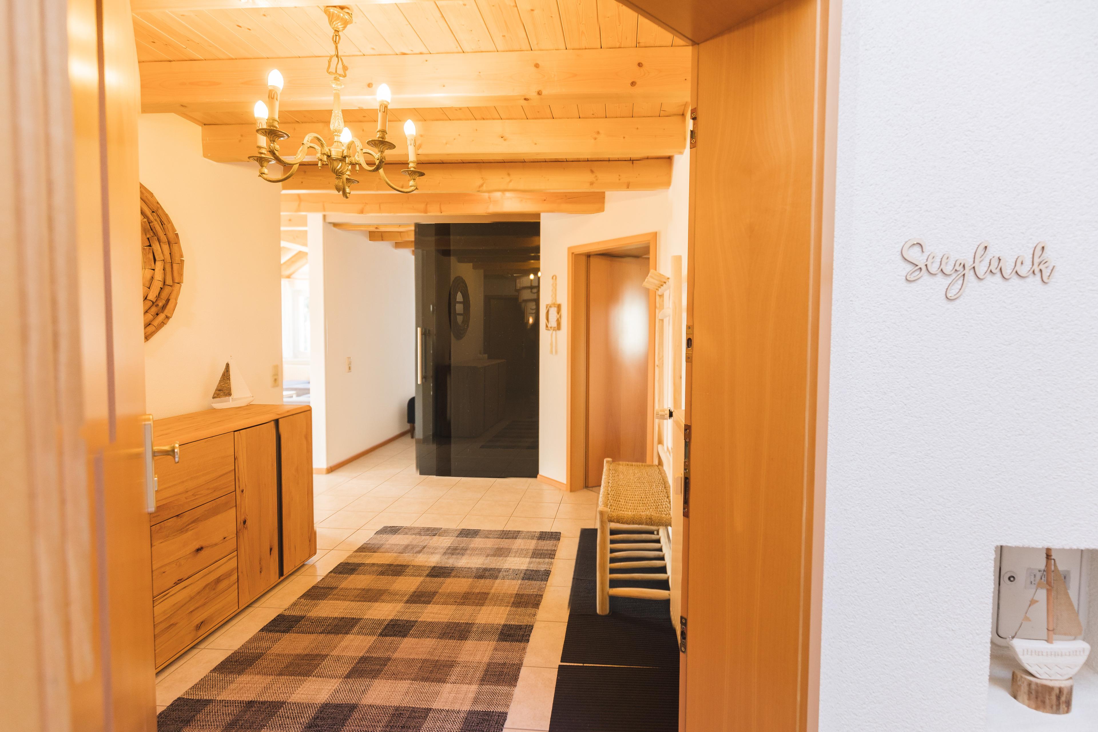 Die lichtdurchflutete Ferienwohnung Seeglück verfügt über kostenlose Parkplätze und einen überdachten Fahrradständer direkt vor dem Hauseingang. Sie umfasst rund 105m² Wohnfläche, die sich auf 4,5 Zimmer im 1. 0G und Dachgeschoss verteilen.