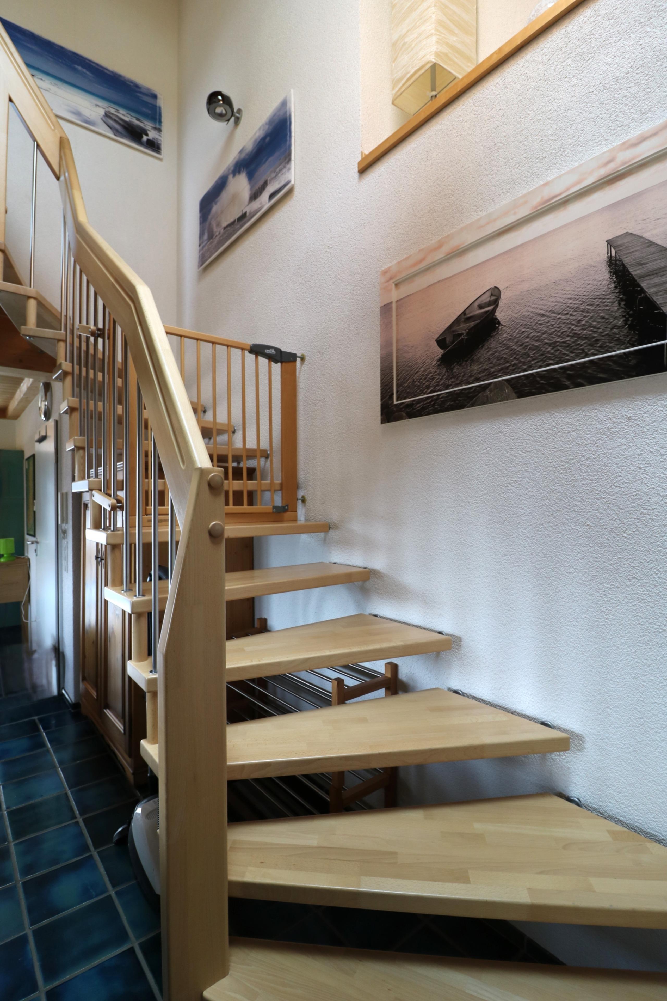 Über eine Treppe gelangen Sie zu einer offenen Galerie mit einem weiteren Schlafzimmer mit Doppelbett (200x200) und einem Schlafsofa (160x200). Ebenfalls befindet sich auf dieser Ebene ein großes Badezimmer mit Badewanne und bodengleicher Dusche.