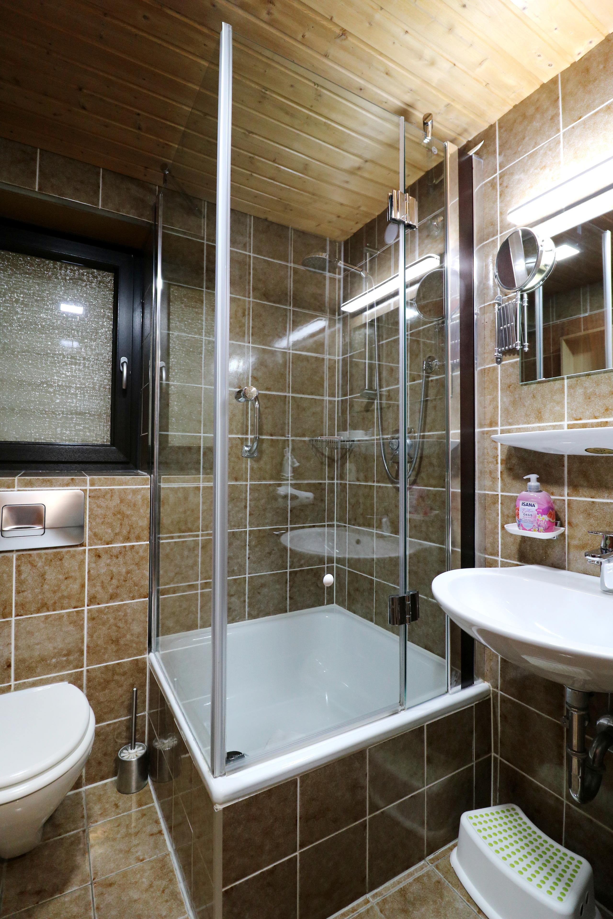- two bathrooms, each with a shower and WC