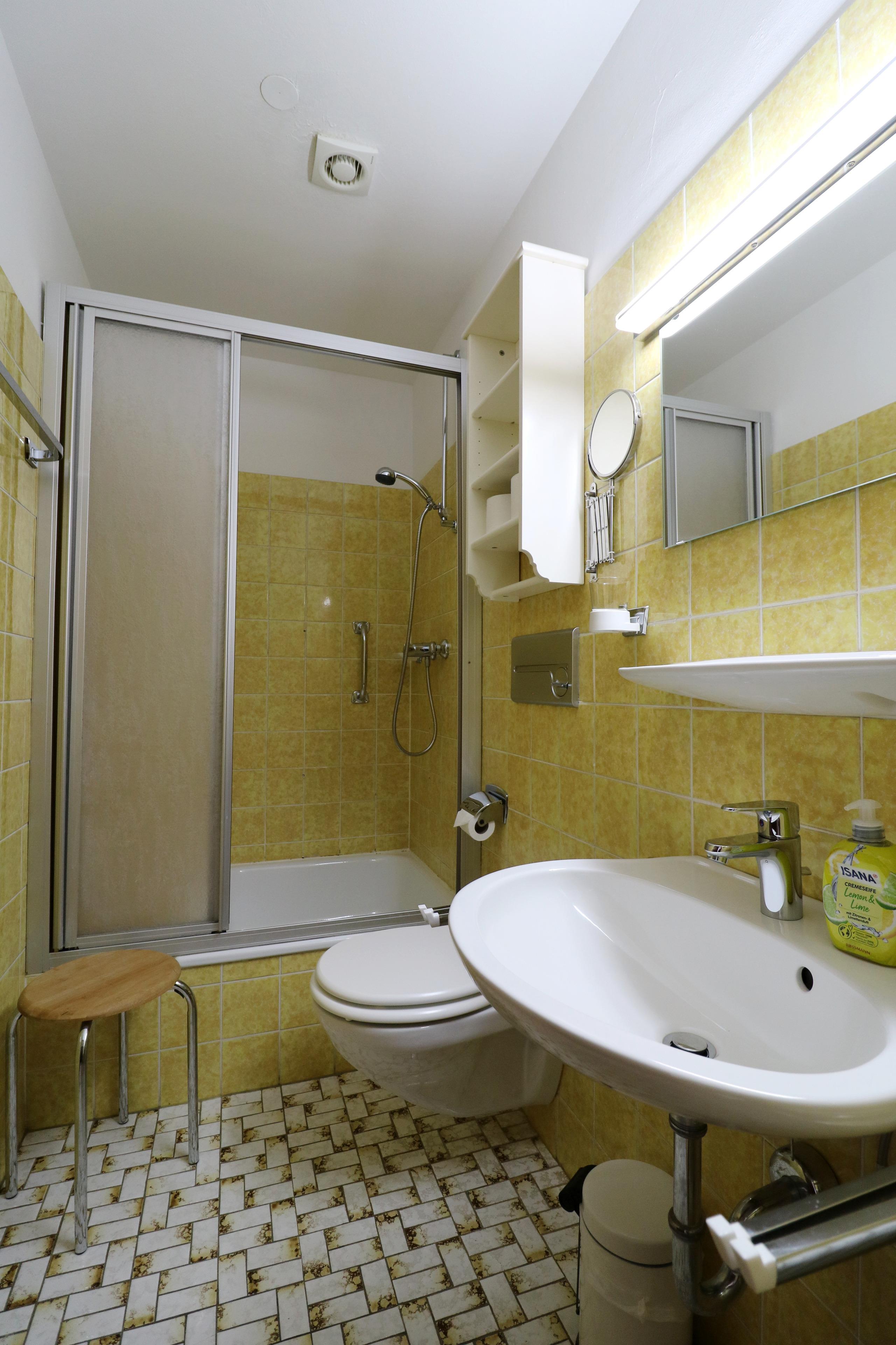 - a bathroom with shower and WC