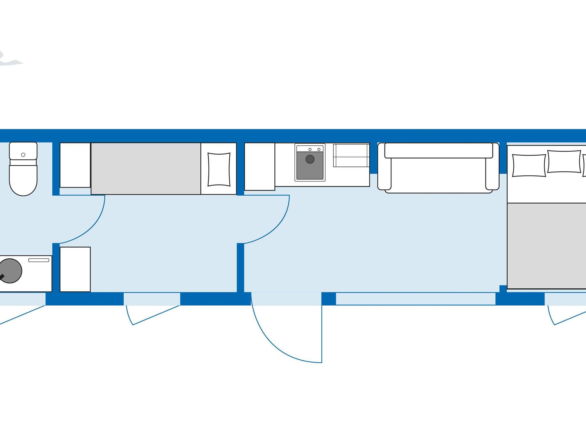 -Schlafmöglichkeiten: 1 Doppelbett 160 x 200cm, 2 Etagenbetten 70 x 195cm