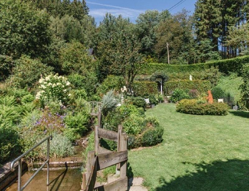 Appartment - ebenerdig - eigener Eingang - 2 Schlafzimmer - Terrasse zur Liegewiese mit Kneipp-Tretbecken - W-LAN-Anschluss - für 4 Pers. - direkt am Wald - keine Durchgangsstraße - absolut ruhige Südhanglage, Terrasse und Freisitz mit Grillkamin