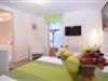 Stueetage: (gang, tekøkken(komfur(Komfur med to kogeplader), kaffemaskine(kaffetragt), mikrobølgeovn, køle-fryseskab), stue / spisestue(Fjernsyn(parabol)), soveværelse(dobbeltseng), soveværelse(dobbeltseng), badeværelse(bruser, håndvask, toilet)) sofastue, grill, varme(central), terrasse(deles med andre gæster), havemøbler, parkering