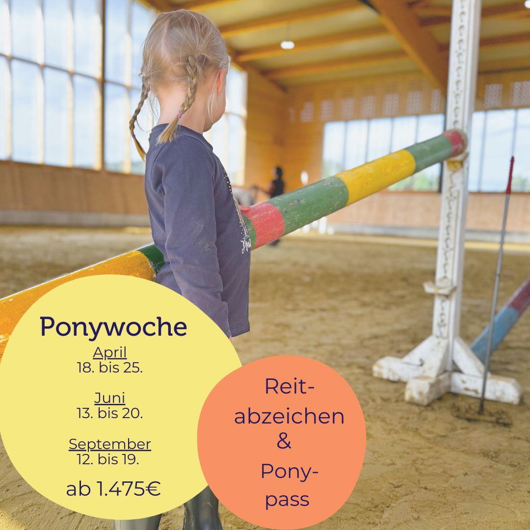 Unsere Ponywochen sind zurück. Für alle kleinen und großen Pferdefans bieten wir auch im nächsten Jahr wieder unsere beliebten Ponywochen an! Taucht ein in die Welt der Ponys und Pferde, lernt alles rund ums Reiten und genießt unvergessliche Momente auf unserem Hof!