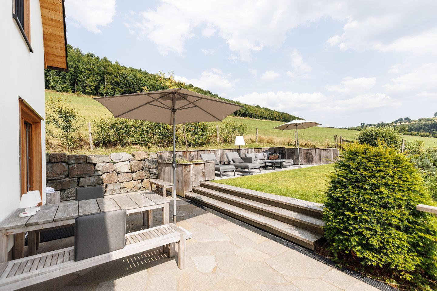 Die Romantikhütte Grafschaft (ca. 150 m² | max. 8 Personen) vereint urige Gemütlichkeit mit Luxus. Es erwarten Sie warme Eichendielenböden, ein Holzkamin, viele schöne Kissen und Decken, Felle und Lampen. Ein wunderschöner Wohn/Ess-Küchenbereich mit einer modernen Küche, 2 Master-Schlafzimmer mit hochwertigen Boxspringbetten sowie eine urige Schlafkammer für 4 Personen und eine Sauna machen das Angebot perfekt. Die große Terrasse sowie der Garten bieten einen traumhaften Rundum-Panoramablick.