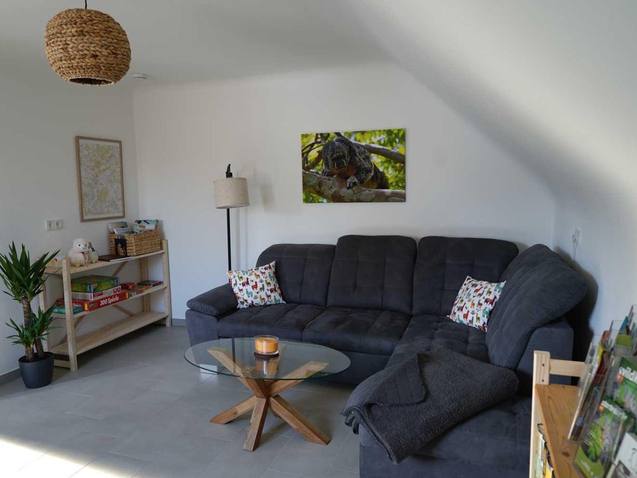 Das gemütliche Wohnzimmer mit Sofa, Flachbild-TV, Büchern und Spielen lädt zum Verweilen ein. Die komplett ausgestattete Küche mit Geschirrspüler, Kühlschrank inkl. Gefrierfach, Herd, Backofen, Mikrowelle, Wasserkocher, Eierkocher, Toaster und Kaffeemaschine lässt keine Wünsche offen. Die Ferienwohnung verfügt über 2 Schlafzimmer mit einem Doppel-Boxspringbett, zwei Einzel-Boxspringbetten und genügend Ablagefläche sowie Kleiderschränke. Das geräumige Badezimmer mit ebenerdiger Dusche, großem Spiegel, Föhn und Platz für alle Gäste rundet das Gesamtbild ab. Zum Reinigen Ihrer Kleidung wird ein Wäschservice auf Anfrage und gegen Gebühr angeboten. Bitte beachten Sie, dass keine Haustiere erlaubt sind und es sich um eine Nichtraucher Wohnung handelt. Das WLAN und der Parkplatz vor dem Haus können kostenfrei genutzen werden.