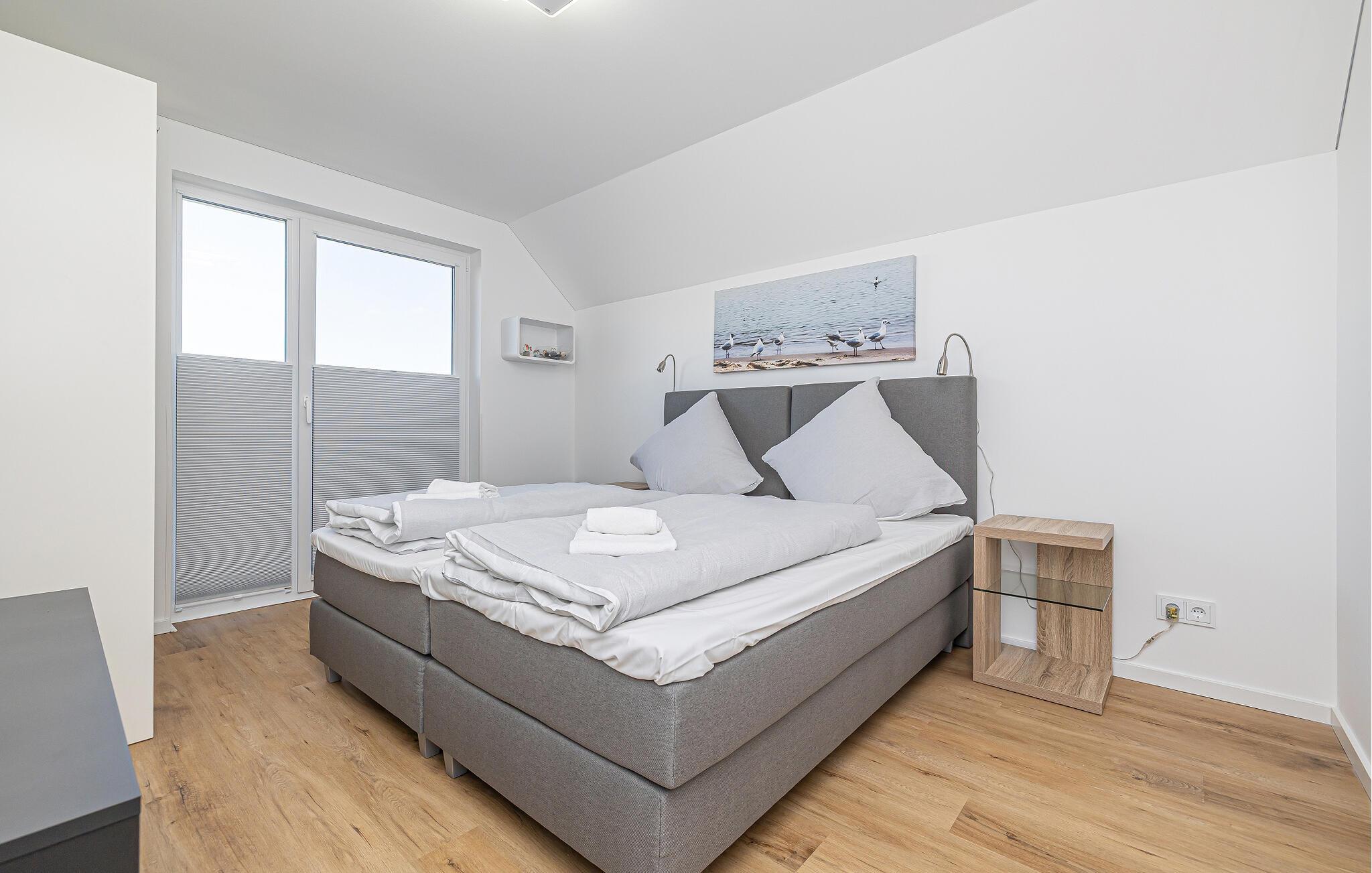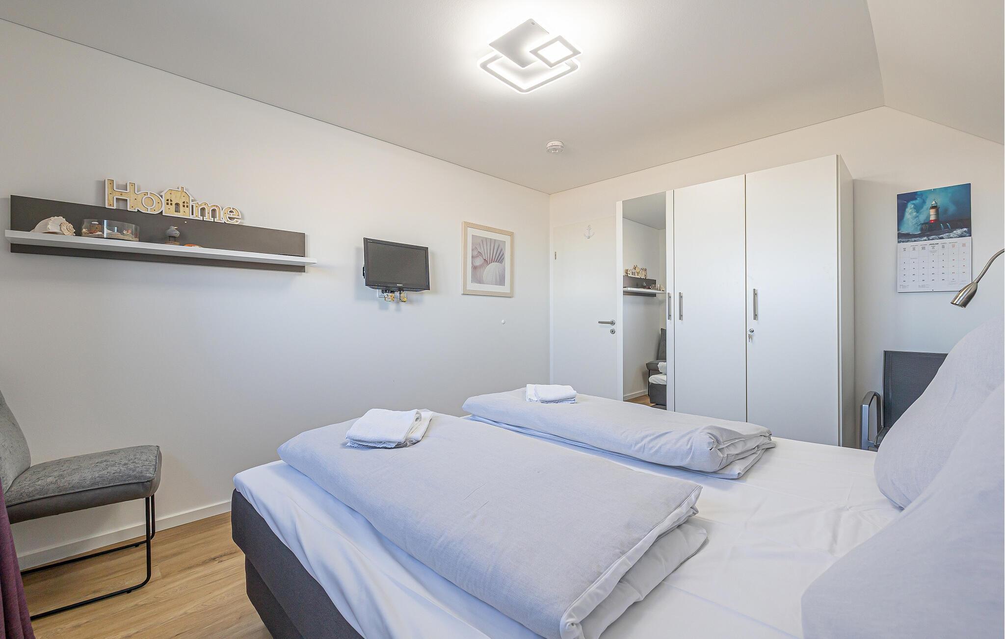 Soveværelserne er møbleret med en dobbeltseng (boxmadras), to enkeltsenge og et fjernsyn i hvert værelse. I kan sikkert opbevare jeres værdigenstande i det medfølgende pengeskab.