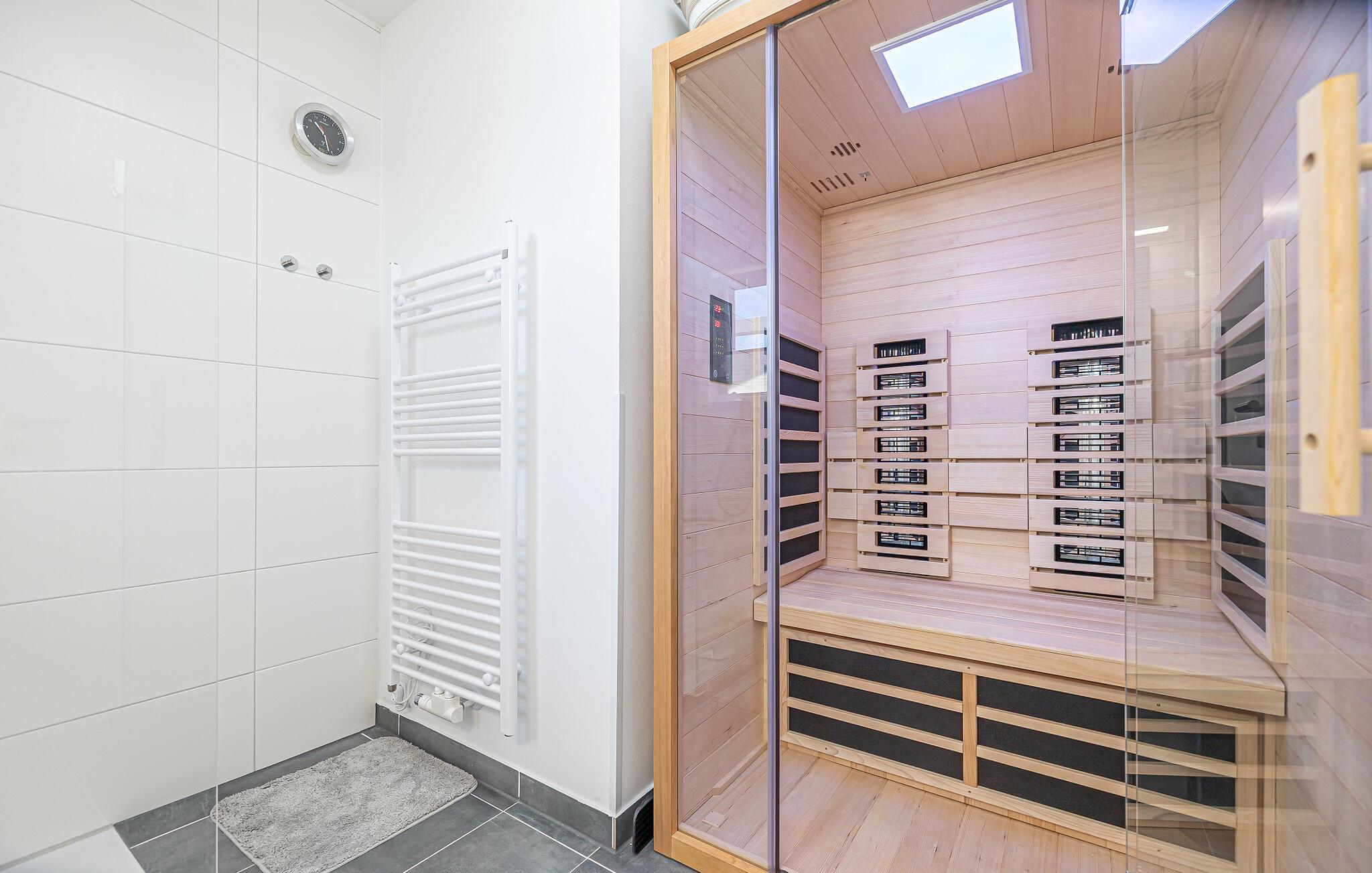 Med to soveværelser og i alt fire sengepladser er lejligheden perfekt til familier eller vennegrupper. Det åbne køkken og opholdsstue lægger op til at lave mad og slappe af sammen. Den sydvendte balkon tilbyder fuldstændig privatliv og en betagende udsigt over området, perfekt til afslapning. Et andet højdepunkt i denne lejlighed er pejsen, som skaber en hyggelig atmosfære på kølige aftener. For yderligere afslapning er den infrarøde sauna tilgængelig, så I kan slappe af efter en lang dag på stranden eller udforskning af området. Den komfortable hjørnesofa er ideel til at læse eller se tv, mens I nyder udsigten. I kan afspille god musik via Bluetooth gennem det indbyggede lydsystem. De moderne møbler, inklusive boxmadras og et ekstra tv i soveværelset, lader intet tilbage at ønske. Nyd afslappende nætter i denne perle af en lejlighed takket være mørklægningsgardinerne af høj kvalitet i soveværelsesvinduerne. Fra begge soveværelser kan I nyde en direkte udsigt over havnen fra jeres seng.