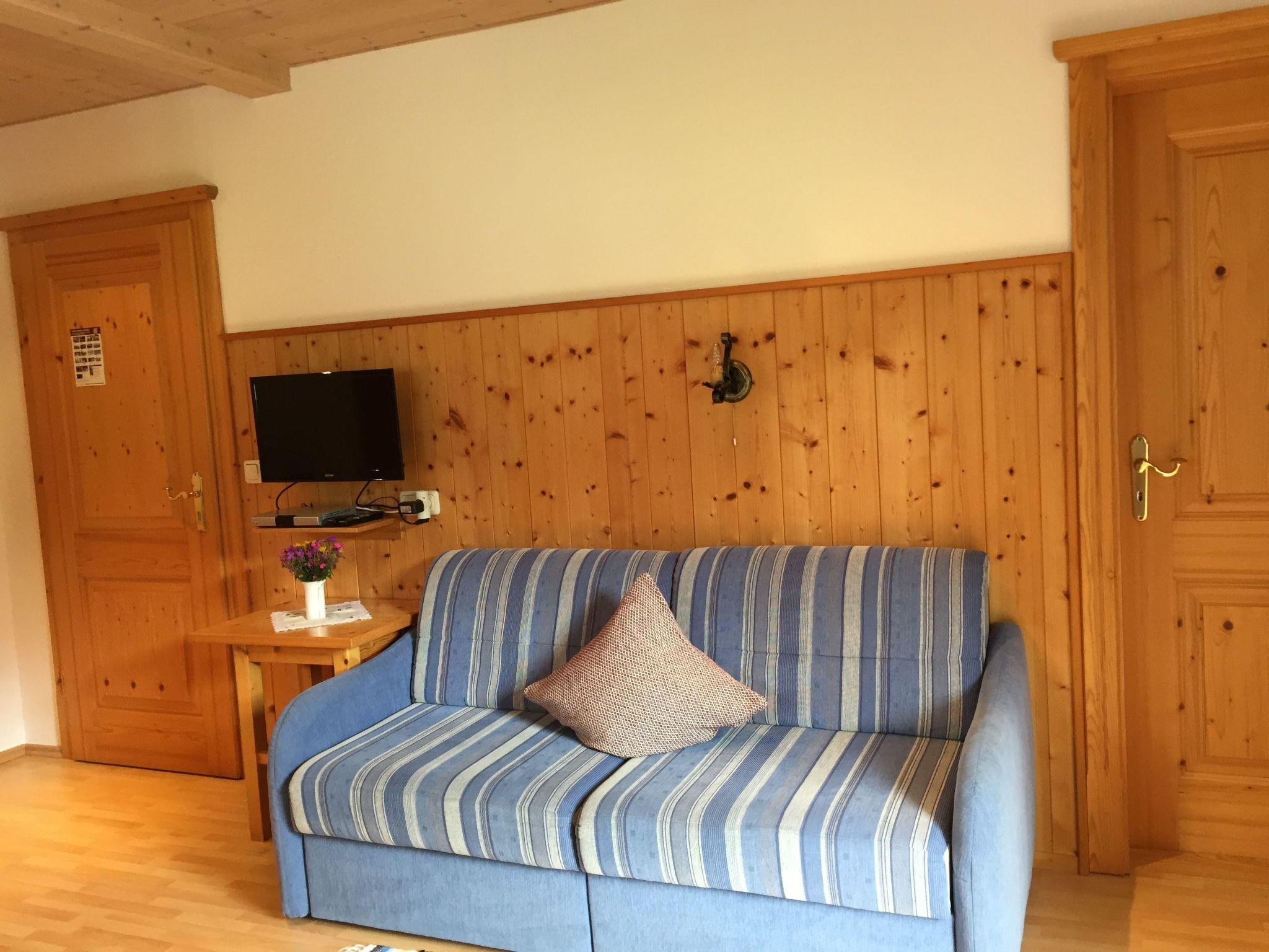 This non-smoking flat, furnished in country style, is located on the upper floor of our detached house and has a large balcony. It can be reached via a marble staircase. In the living area there is a small kitchenette, a dining area for 4 people and a large sofa bed (1.80x2.00) suitable for one adult or two children up to a maximum of 12 years. There is also a separate bedroom with a double bed. Fully equipped with bed linen, towels, kettle, microwave and much more, the flat leaves nothing to be desired. A tastefully furnished bathroom with shower/WC is also at your disposal. Since we attach great importance to the cleaning of our apartment, there are no carpets in the flat and our holiday flat was lovingly made by carpenters.