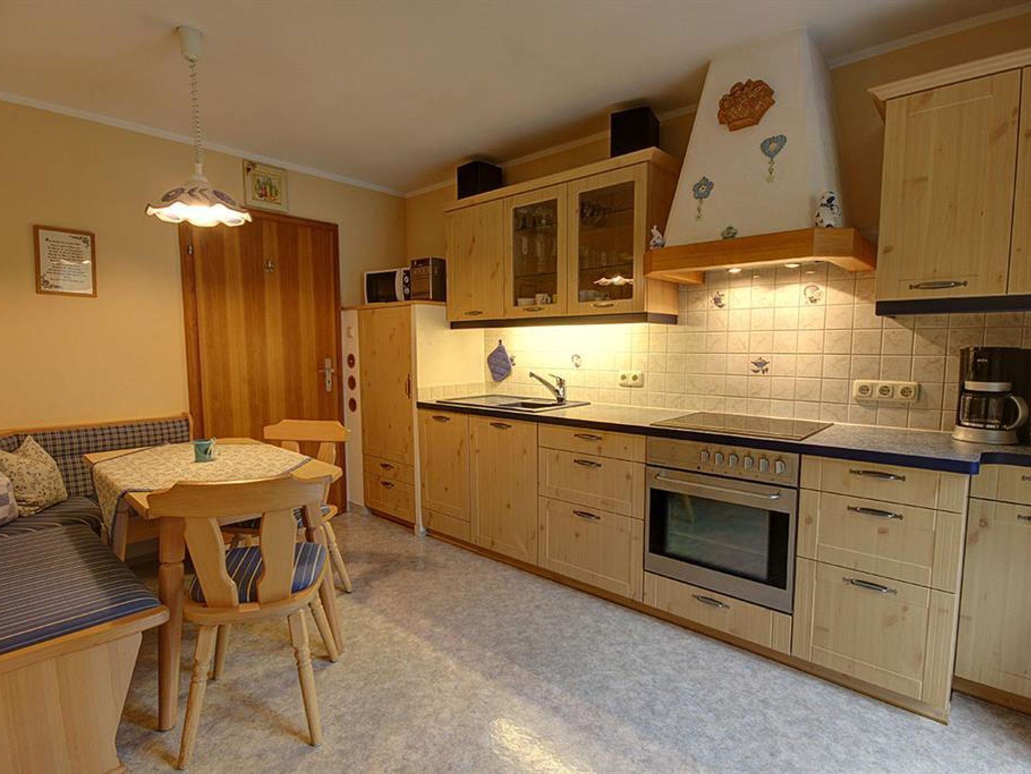 Großer Westbalkon, neu eingerichtetes Schlafzimmer in Fichte, begehbarer Kleiderschrank mit Kommode. Die großzügige Wohnküche ist mit Flachbild-TV, Stereoanlage, 4-Platten-Ceranfeldherd, Backofen, Dunstabzugs- haube, Mikrowelle, Wasserkocher, Kaffeemaschine, Handmixer, Kühlschrank mit Gefrierfach und Spülmaschine ausgestattet. Zusätzlich ist noch eine gemütliche, gepolsterte Eckbank und ein bequemer Rattansessel zum Entspannen vorhanden. Das Badezimmer verfügt über Dusche, WC, Fön und Kosmetikspiegel. Insgesamt 36m² gemütliche Wohnfläche. Inklusive Endreinigung, Bettwäsche, Handtücher (Wechsel nach Wunsch) und Geschirrtücher.