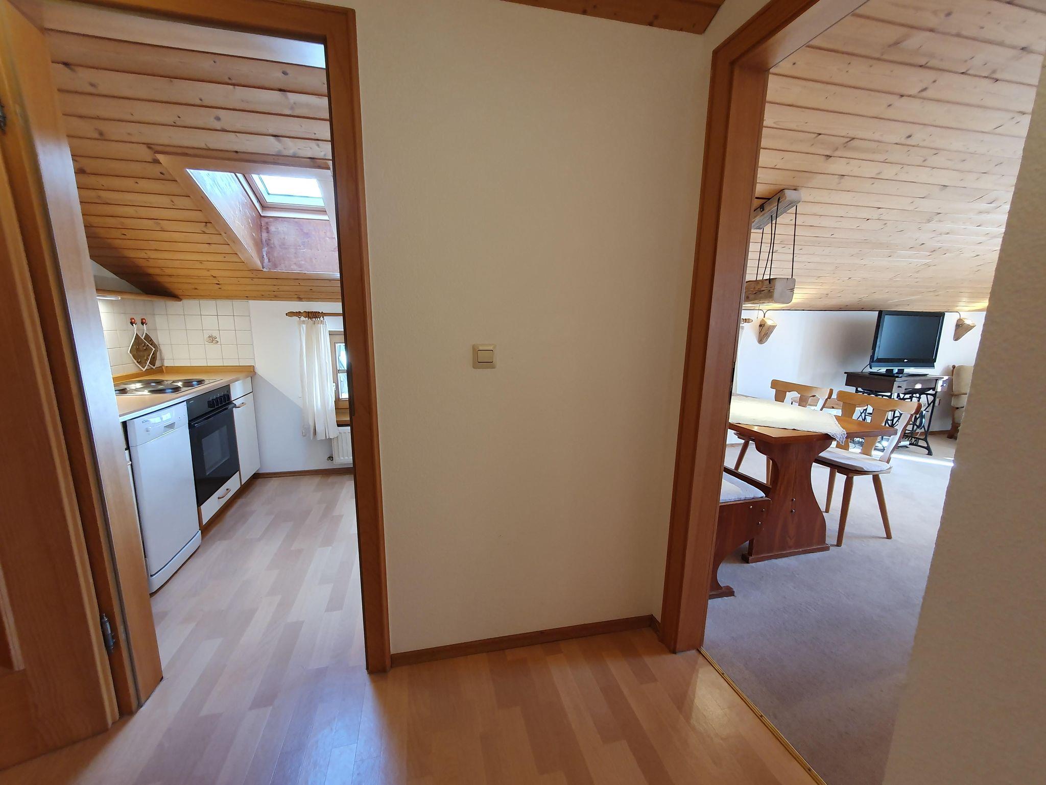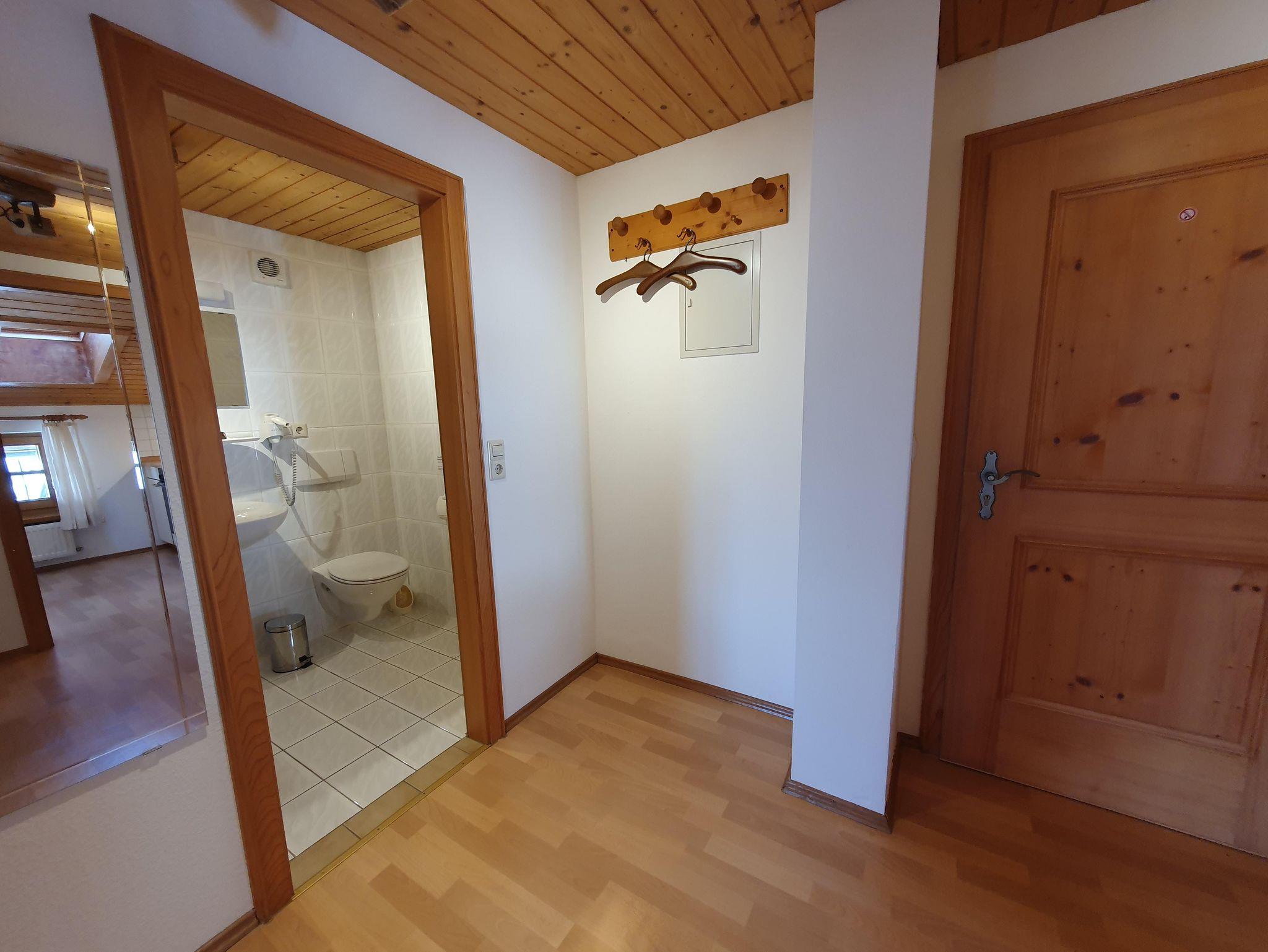 Als Quartier stehen ihnen zwei Ferienwohnungen zur Verfügung. Diese sind direkt nebeneinander im zweiten Stockwerk und haben Zugang zu einem Balkon auf der Südseite des Hauses. Der Balkon ist durch eine Holzwand getrennt. Die eigene Privatsphäre ist somit sehr gut gewährleistet. Bei Bedarf, beispielsweise bei Belegung beider Ferienwohnungen, kann diese jedoch auch geöffnet werden. Die zwei Ferienwohnungen liegen im 2. Obergeschoss des Prümbachhofes mit sehr schönem Blick auf das Weißbachtal, die umliegenden Berge und die Weißbacher Kirche.