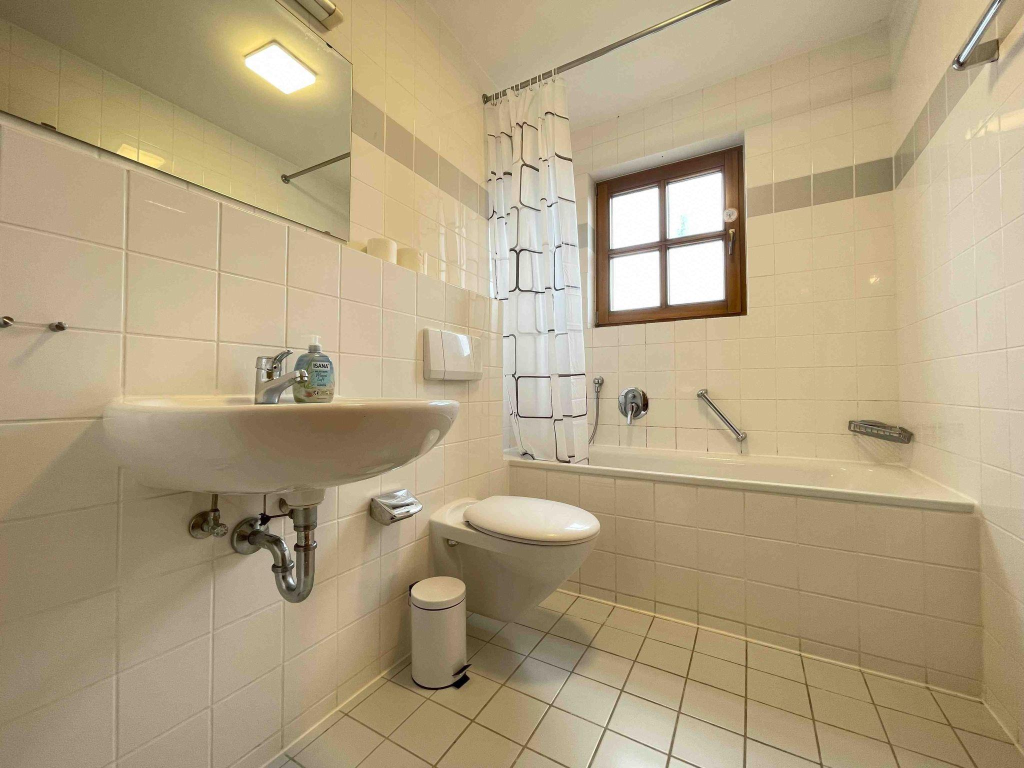 The bathroom consists of a WC, a washbasin and a bathtub.