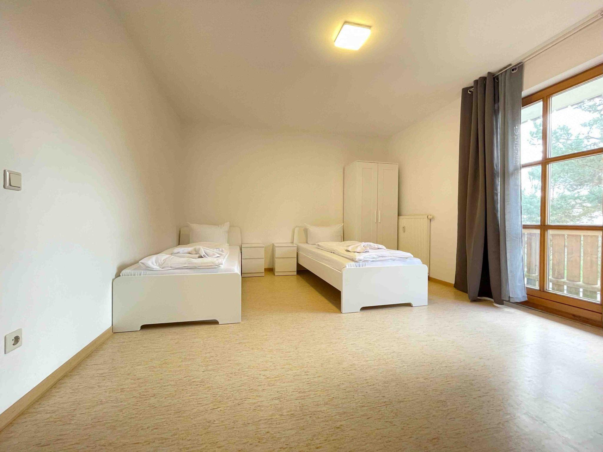 The furnished 45 m² upper floor flat in Stamsried has two bedrooms, each with two single beds, and is suitable for up to four people.