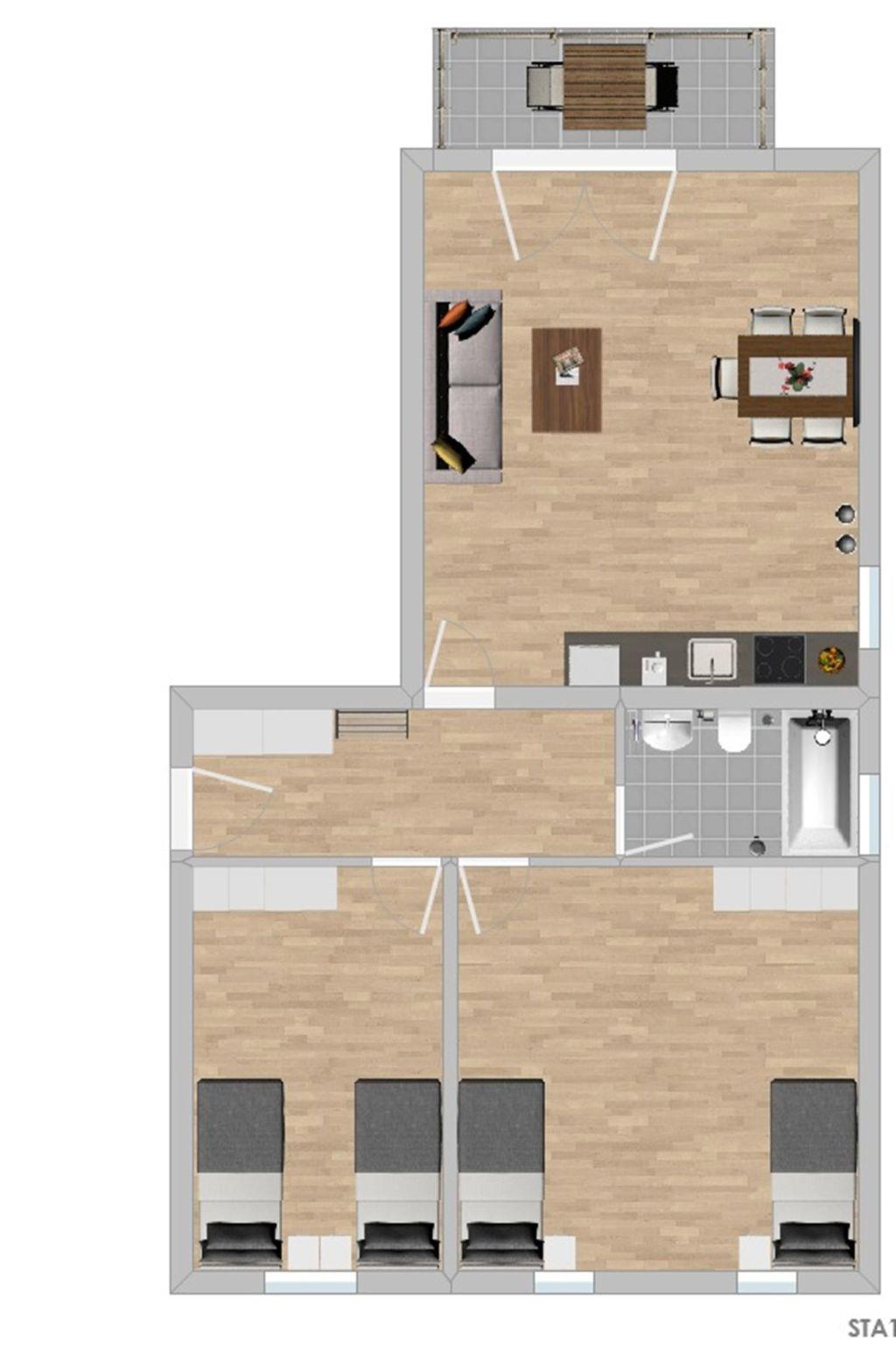 You can see the exact room and bed layout on the floor plan of the accommodation.