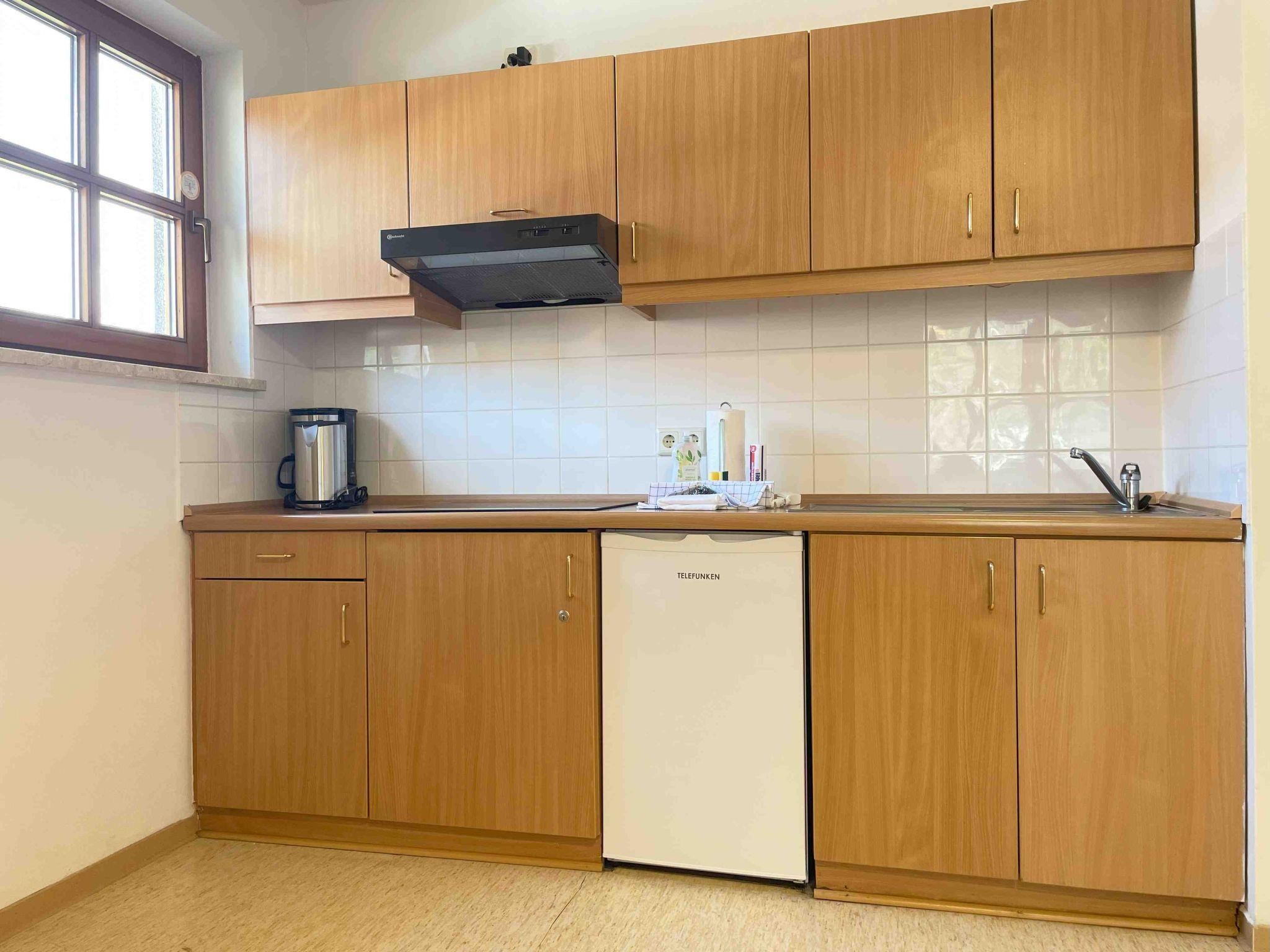 There is a fully equipped kitchen including electronic appliances such as a fridge and coffee machine as well as basic cooking equipment (pots, pans, kitchen utensils and cutlery).