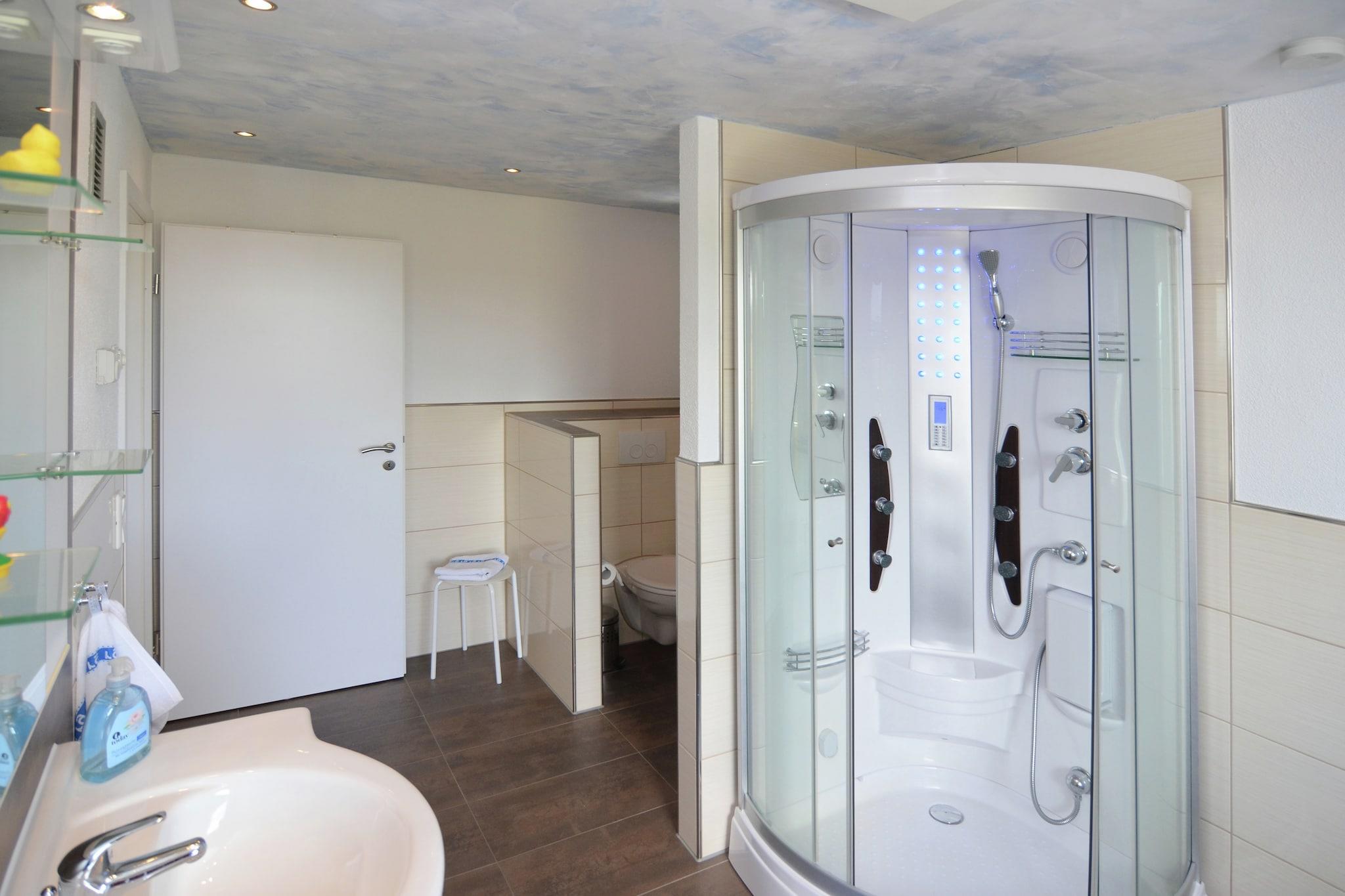 Dette nyrenoverede feriehus ligger 720 meter over havets overflade på den solrige sydlige skråning af Mount Simmersberg i Schnett, en af ??Thüringens højeste lokaliteter. Med sunde byggematerialer og gennemtænkt design byder boligen på både komfort og en følelse af velvære. Opholdsstuen, komplet med pejs og panoramaudsigt over skoven, er et indbydende tilflugtssted efter en dag udendørs. Om sommeren er parkering direkte ved huset, mens en nærliggende offentlig grund om vinteren sikrer nem adgang selv under snevejr. Blot en fem-minutters gåtur fører dig til den berømte Rennsteig vandresti, perfekt til lange gåture med venner, familie eller kæledyr. Om vinteren forvandles området til et snesportscenter med skilifter i Masserberg, Heubach og Fehrenbach, plus omfattende langrends- og vintervandrestier. Hunde elsker at udforske disse naturskønne ruter, og åbne enge i nærheden tilbyder trygge pladser til leg. De varmere måneder bringer cykling, picnic og skovture – ideel til rejsende, der nyder aktive dage og tid udendørs med deres kæledyr. Ud over udendørsaktiviteter inviterer regionen til kulturelle udflugter til Erfurt, Weimar eller Havakvariet i Zella Mehlis. Tættere på hjemmet finder du hyggelige Thüringer-restauranter, der serverer regionale specialiteter, og bagerier, der tilbyder traditionelle kager, alt sammen inden for rækkevidde. Tilbage ved huset giver den private have med terrasse, grill og legeredskaber de perfekte rammer til at slappe af, dele et måltid og nyde den fredelige charme i Schnetts højland.