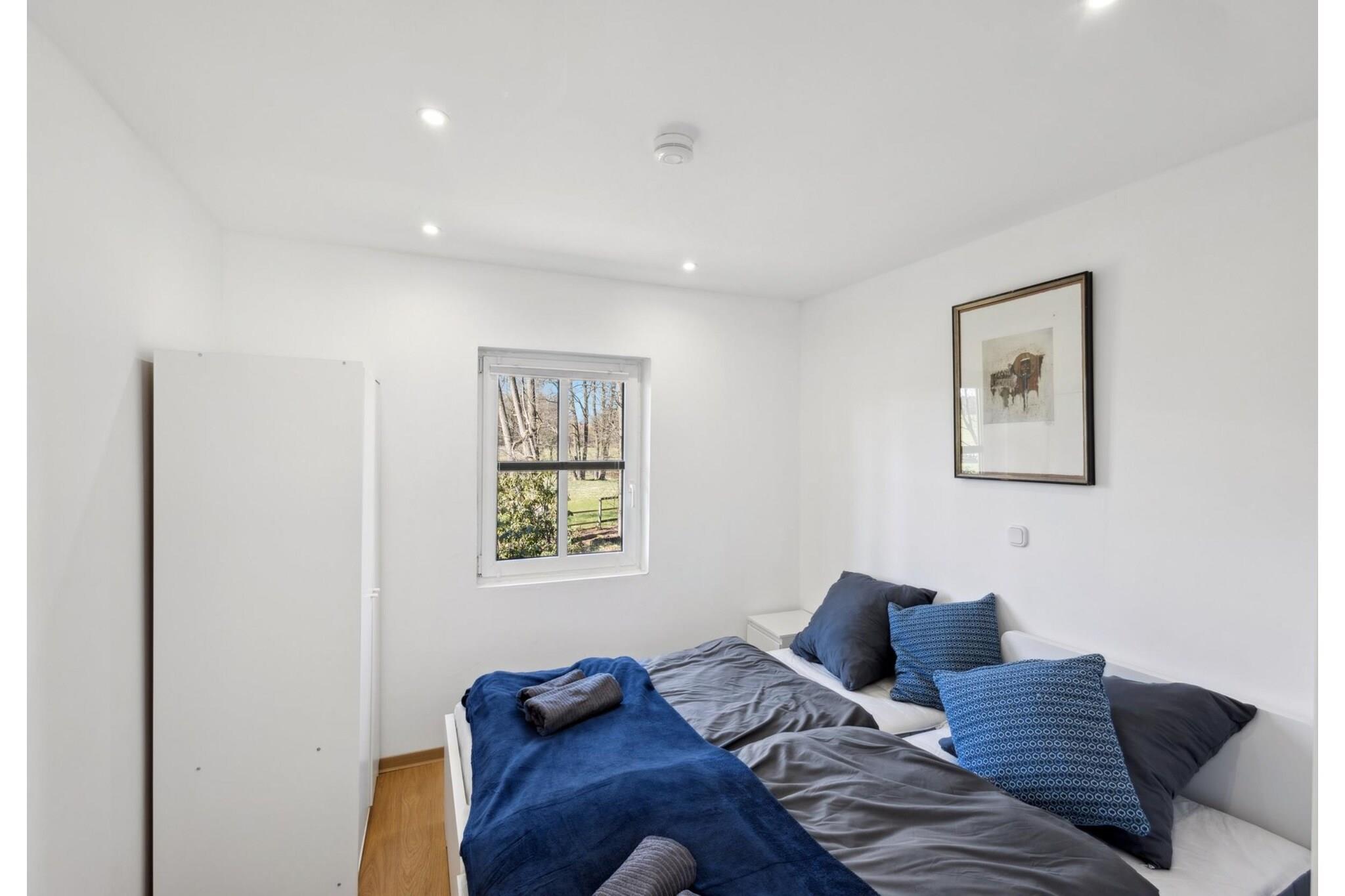 Stueetage: (åbent køkken(elkedel, brødrister, komfur(Komfur med fire kogeplader, induktion), kaffemaskine, opvaskemaskine , køle-fryseskab), stue / spisestue(dobbeltsovesofa, Fjernsyn(kabel, parabol), spisebord, sofahjørne, radio), soveværelse(enkeltseng, enkeltseng), soveværelse(dobbeltseng), badeværelse(bruser, håndvask, toilet, føntørrer)) carport, varme(elektrisk, gulvvarme), terrasse, have(deles med ejer og andre gæster), havemøbler, grill, parkering, barnestol, baby crib(free), Vaskeripakke mod et gebyr