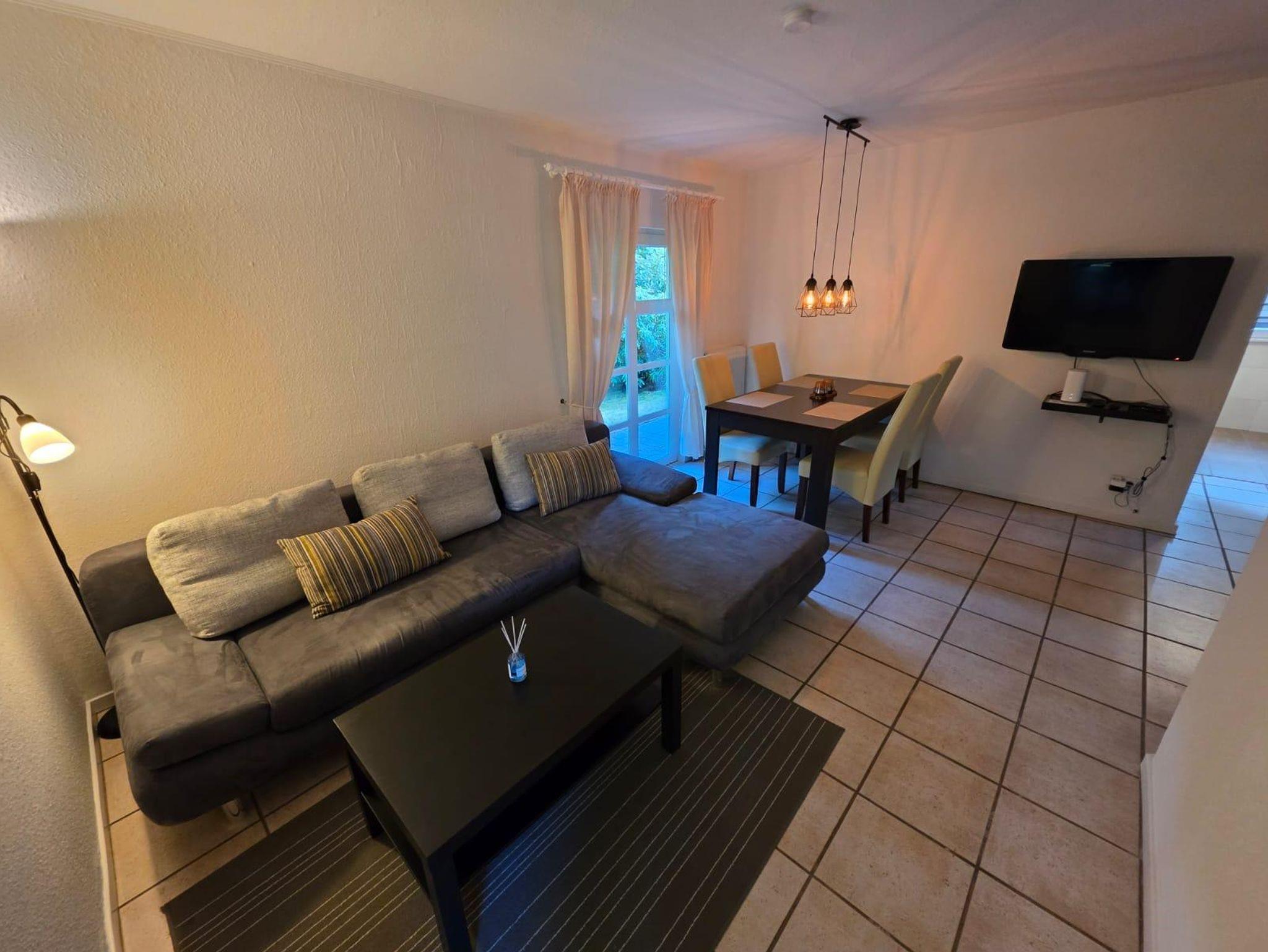 Das hell und modern eingerichtete Ferienhaus verfügt über einen Flur, ein Wohnzimmer mit angrenzender Terrasse, zwei Schlafzimmer eines mit einem Doppelbett und eines mit einem 140 cm x 200 m großen Bett , eine kommplett eingerichtete Küche sowie ein Bad mit Dusche und WC.