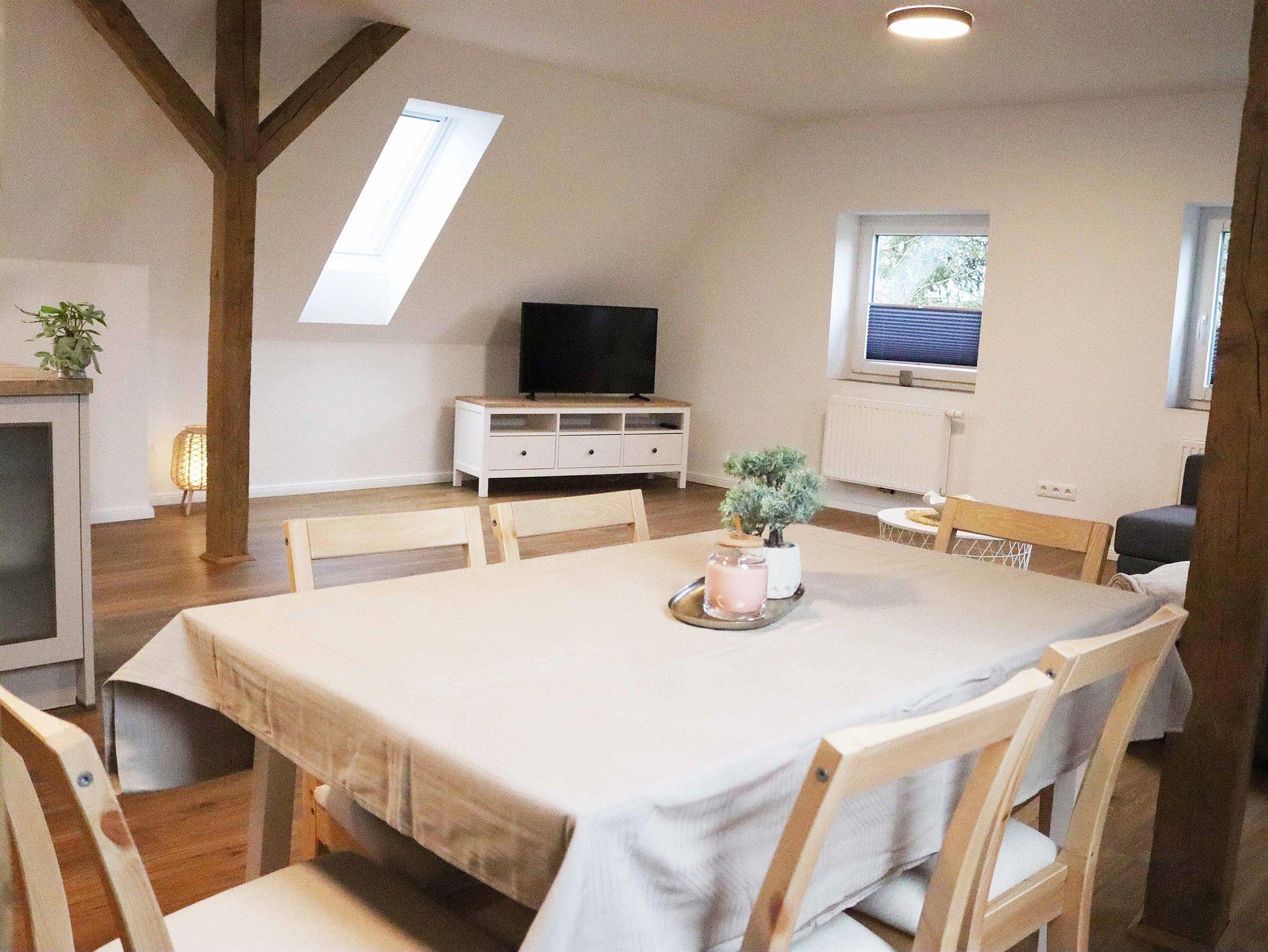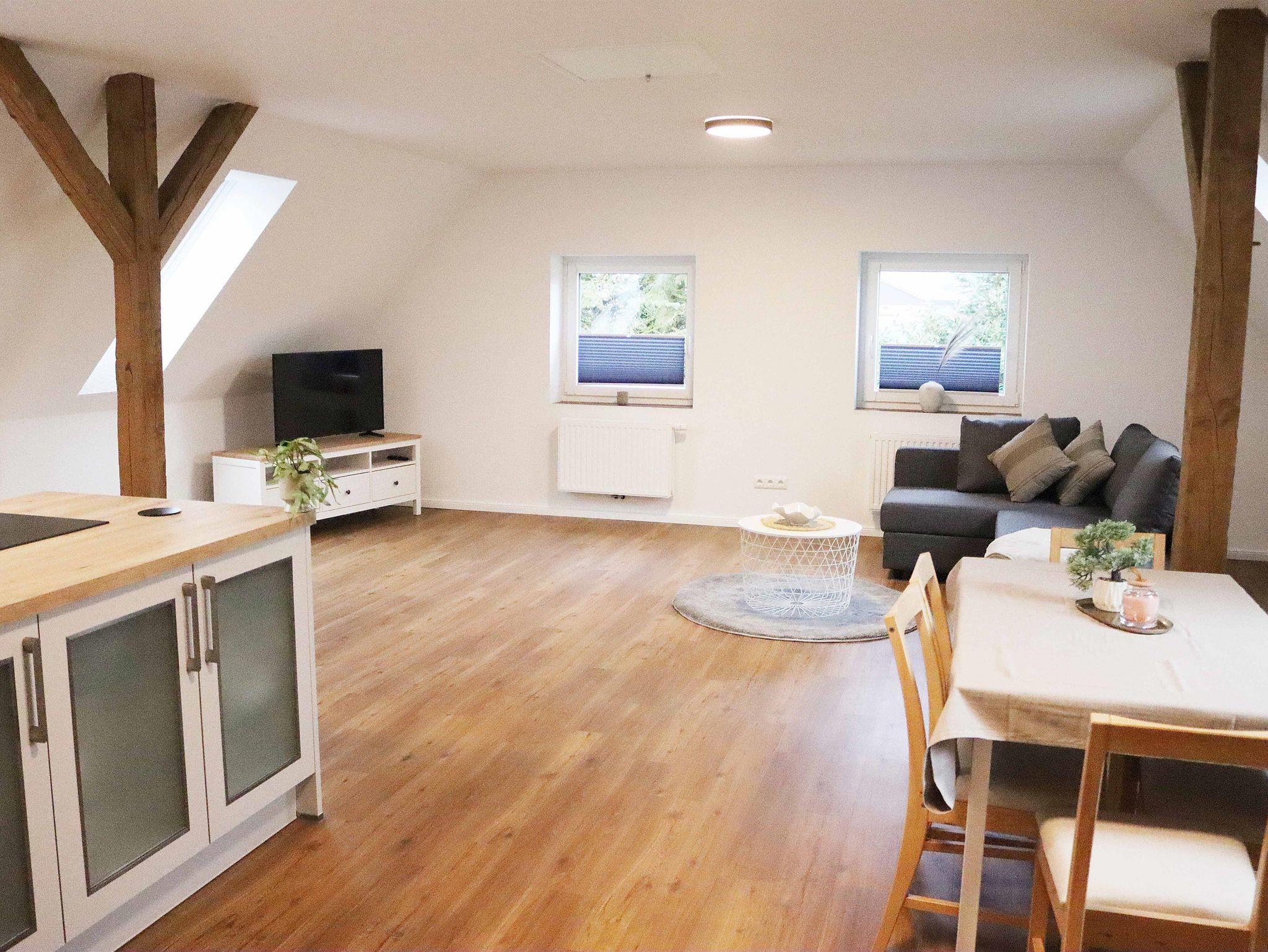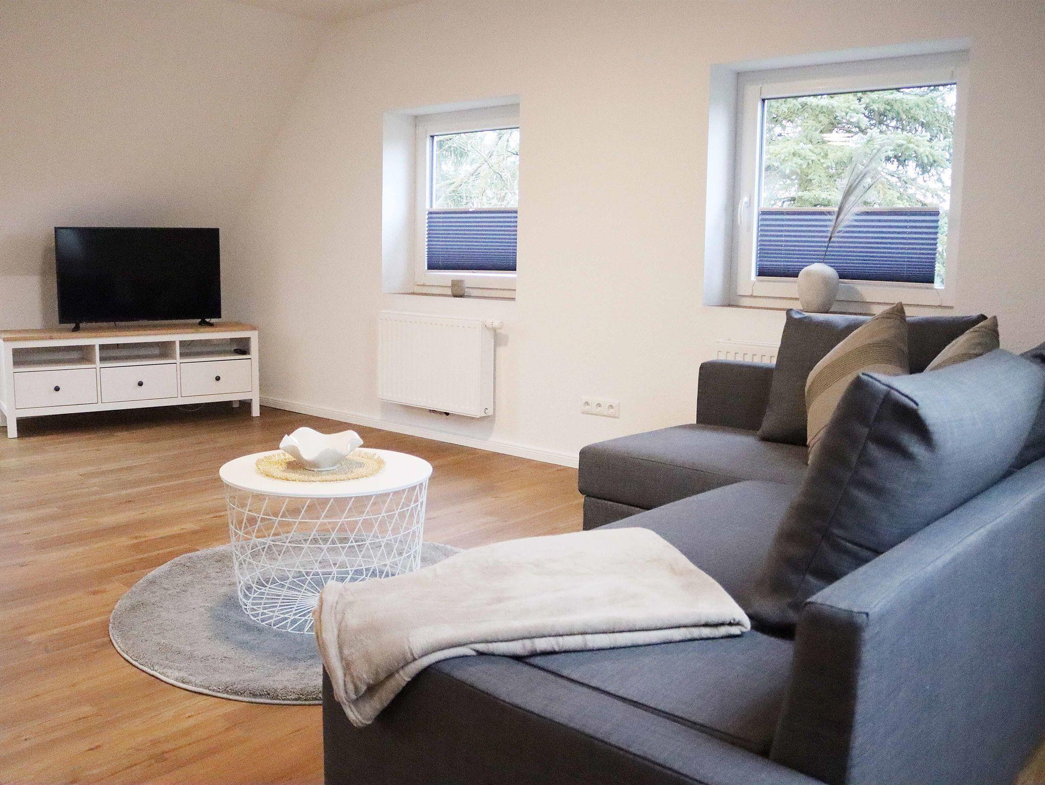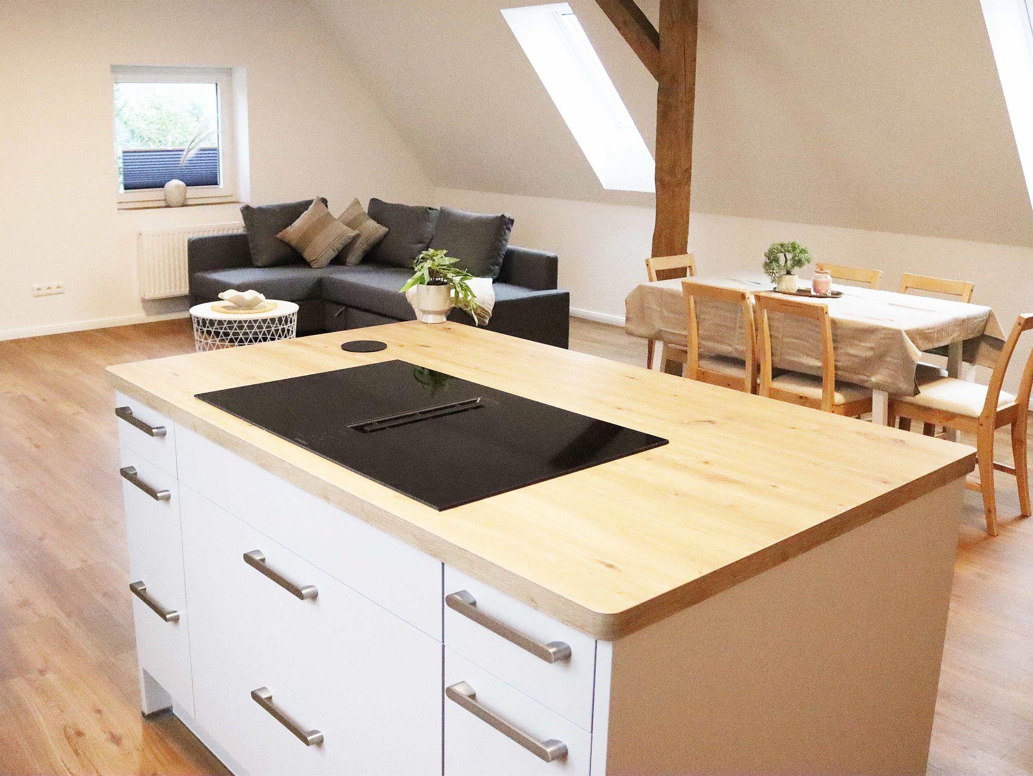 Die hell und modern eingerichtete Ferienwohnung liegt in der ersten Etage und eignet sich für bis zu 6 Personen.