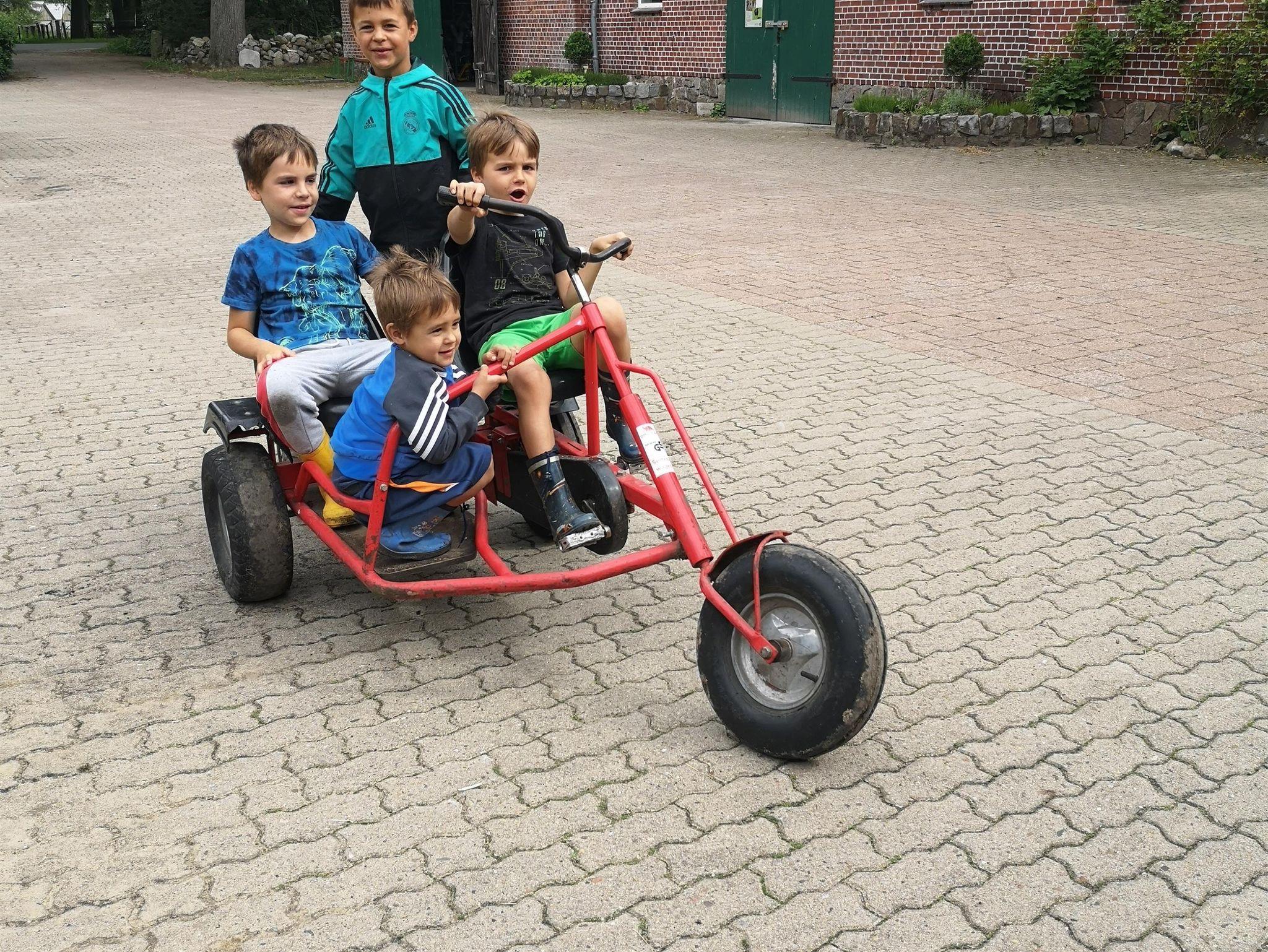 Genießen Sie bei uns Ruhe und schalten Sie ab vom Stress des Alltags auf dem parkähnlichen, weitläufigen Hofgelände oder gönnen Sie sich eine entspannende Wohlfühlmassage durch unser Wellnessangebot, während ihre Kinder die Tiere streicheln, Gokart und Trike fahren, im Stroh spielen oder mit dem Bauern Trecker fahren.