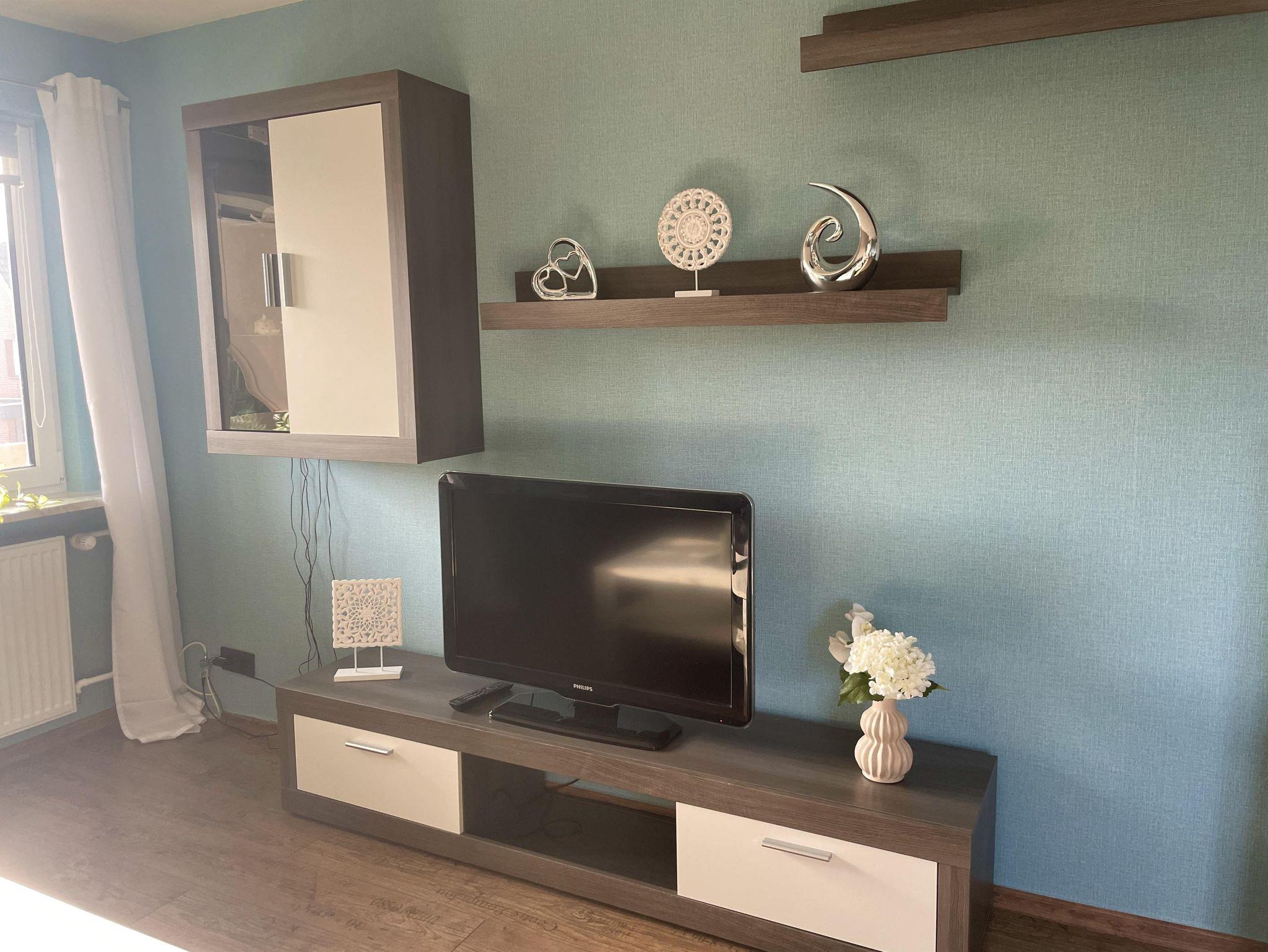 Sie verfügt über eine komplett ausgestattete Küche mit angrenzender Loggia, ein modern eingerichtetes Wohnzimmer mit einer Schlafgelegenheit für die 3. Person, ein separates Schlafzimmer mit einem Doppelbett sowie ein Bad mit Dusche und WC.