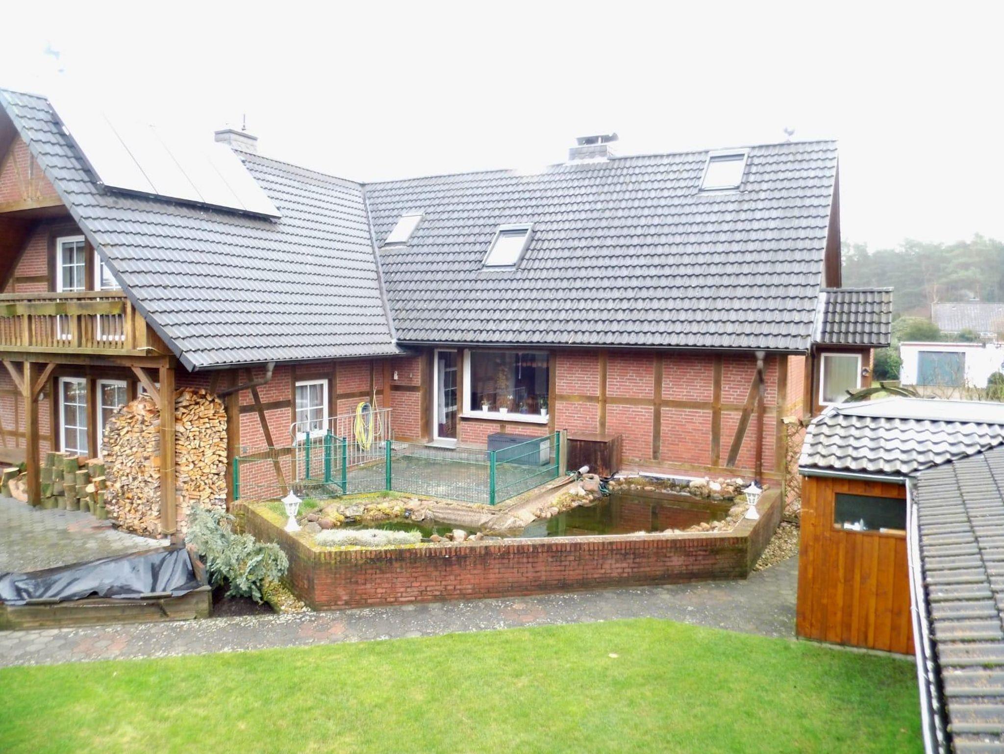 Liebevoll, modern eigerichtete Doppelhaushaushälfte im Fachwerk-Stil mit Terrasse und Gartenteich in einem ruhigen Wohngebiet. Die Osterheide ist mit wenigen Schritten erreichbar. Die Lage ist ein idealer Startpunkt für Wanderungen und Unternehmungen, sowohl zu Fuß als auch mit dem Fahrrad. Auf dem Grundstück befindet sich ein Gartenhaus, in dem Fahrräder sicher abgestellt werden können.