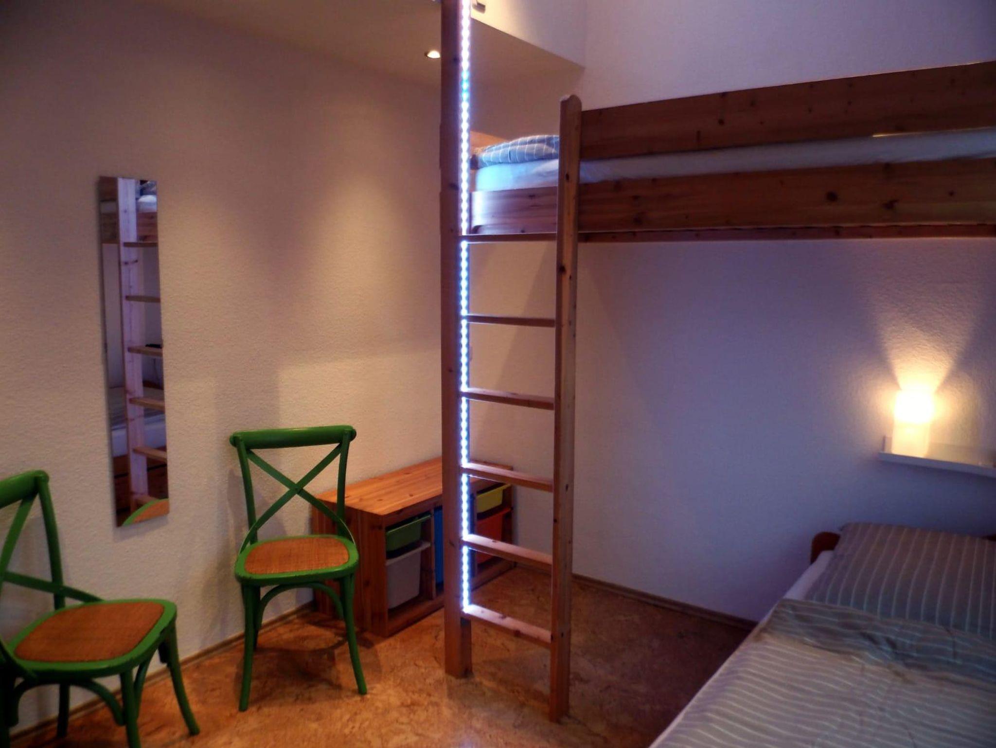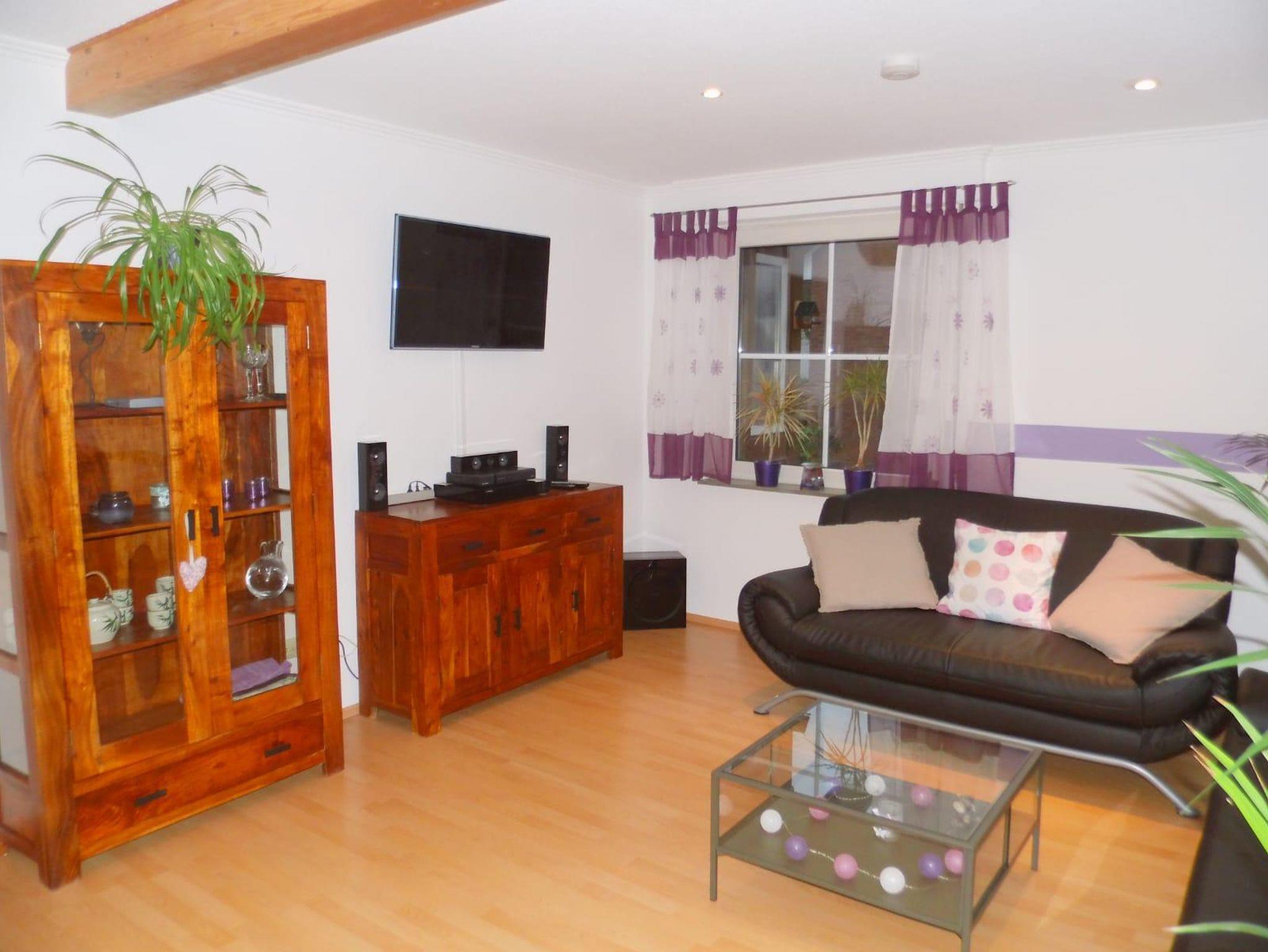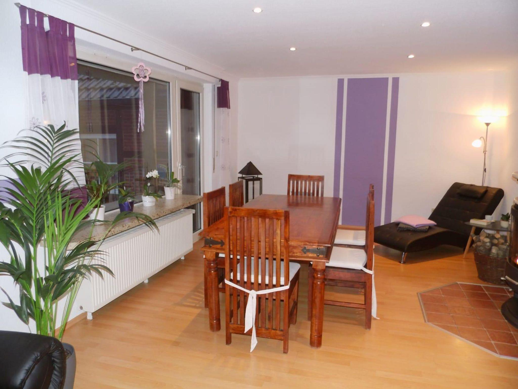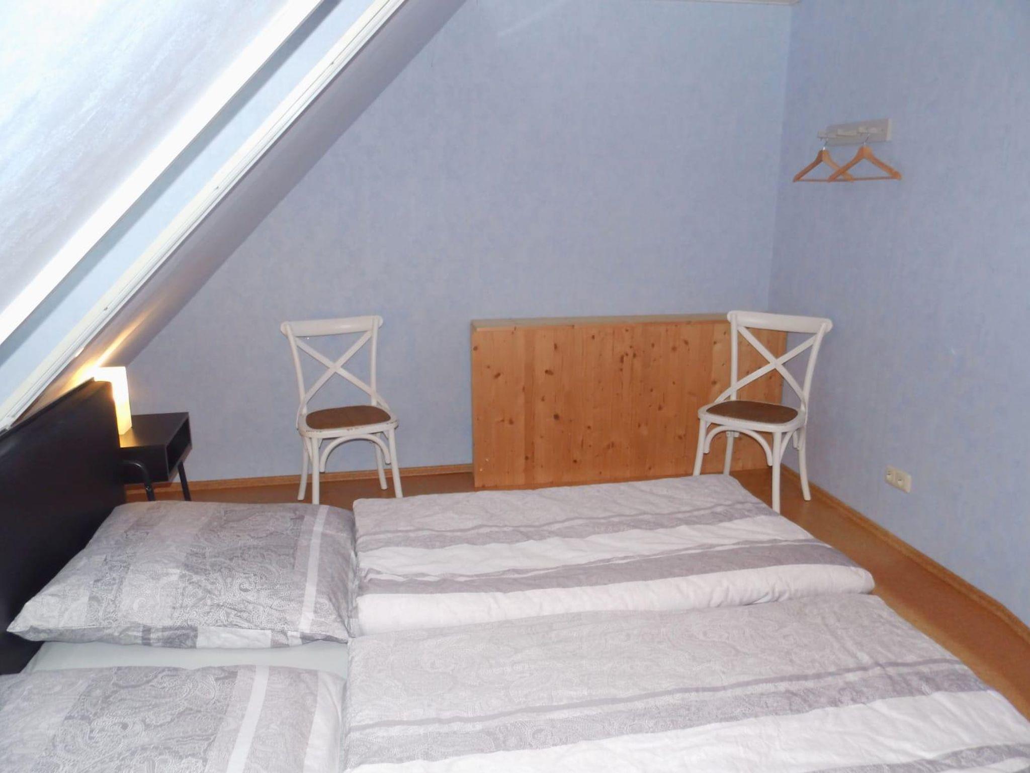 Die Doppelhaushälfte wurde im Jahr 2020 komplett renoviert und neu eingerichtet. Im Erdgeschoss befindet sich ein modernes Wohnzimmer mit einem Ofen, Kabelfernsehen, kostenfreiem W-Lan, eine moderne Küche mit Sitzmöglichkeit, ein Vorratsraum und ein Gäste-WC. Im Obergeschoss befinden sich drei Schlafzimmer (1 Elternschlafzimmer mit Doppelbett und 2 Kinderzimmer mit jeweils einem Einzelbett und einem Hochbett) und ein Badezimmer mit Dusche und Badewanne. Vor dem Wohnzimmer lädt eine Terrasse mit Gartenmöbeln zum Entspannen und zum Grillen ein. Babybett und Hochstuhl sind vorhanden. Im Garten befindet sich eine Gartenhütte zum Unterstellen von Fahrrädern.