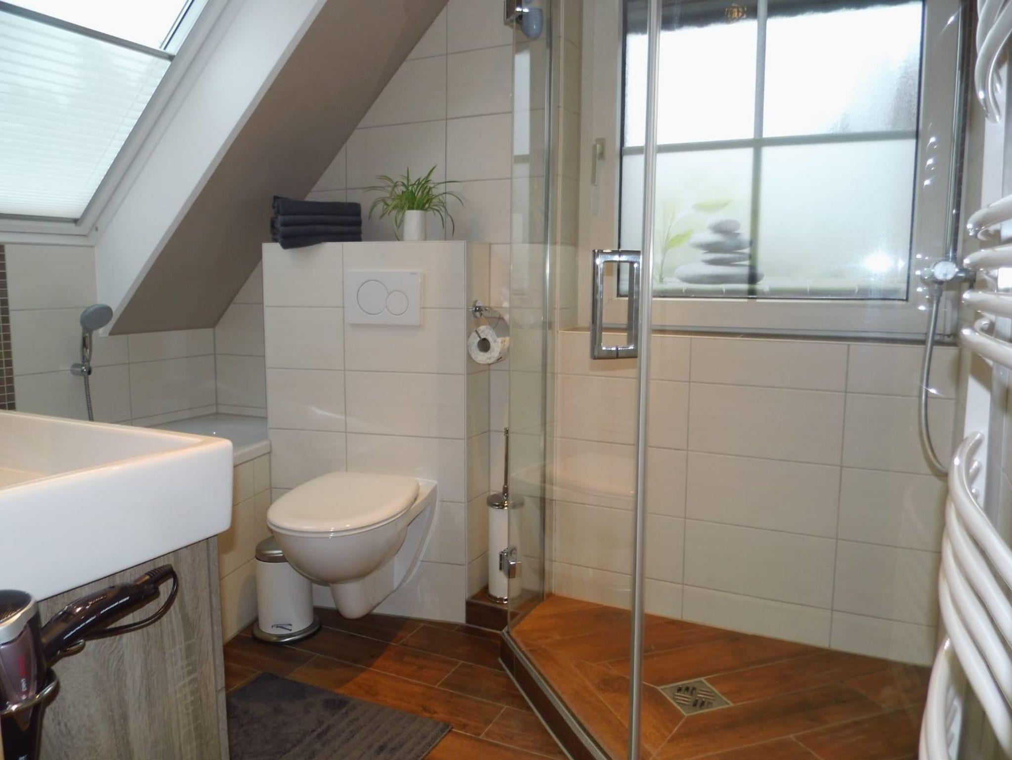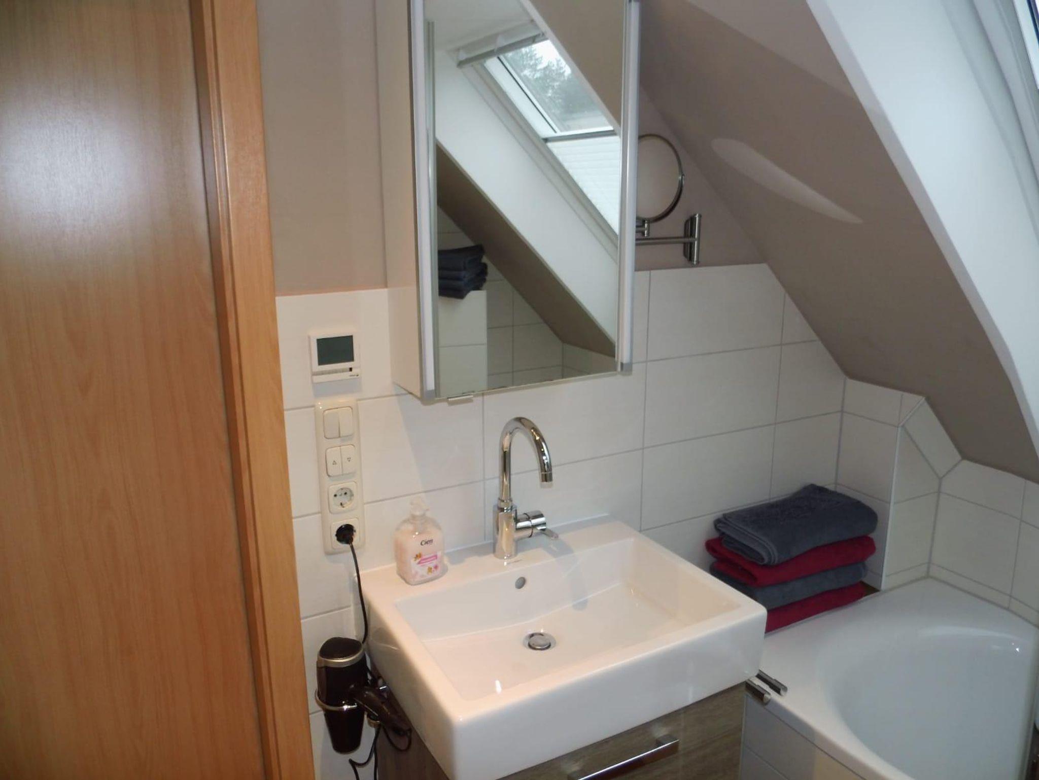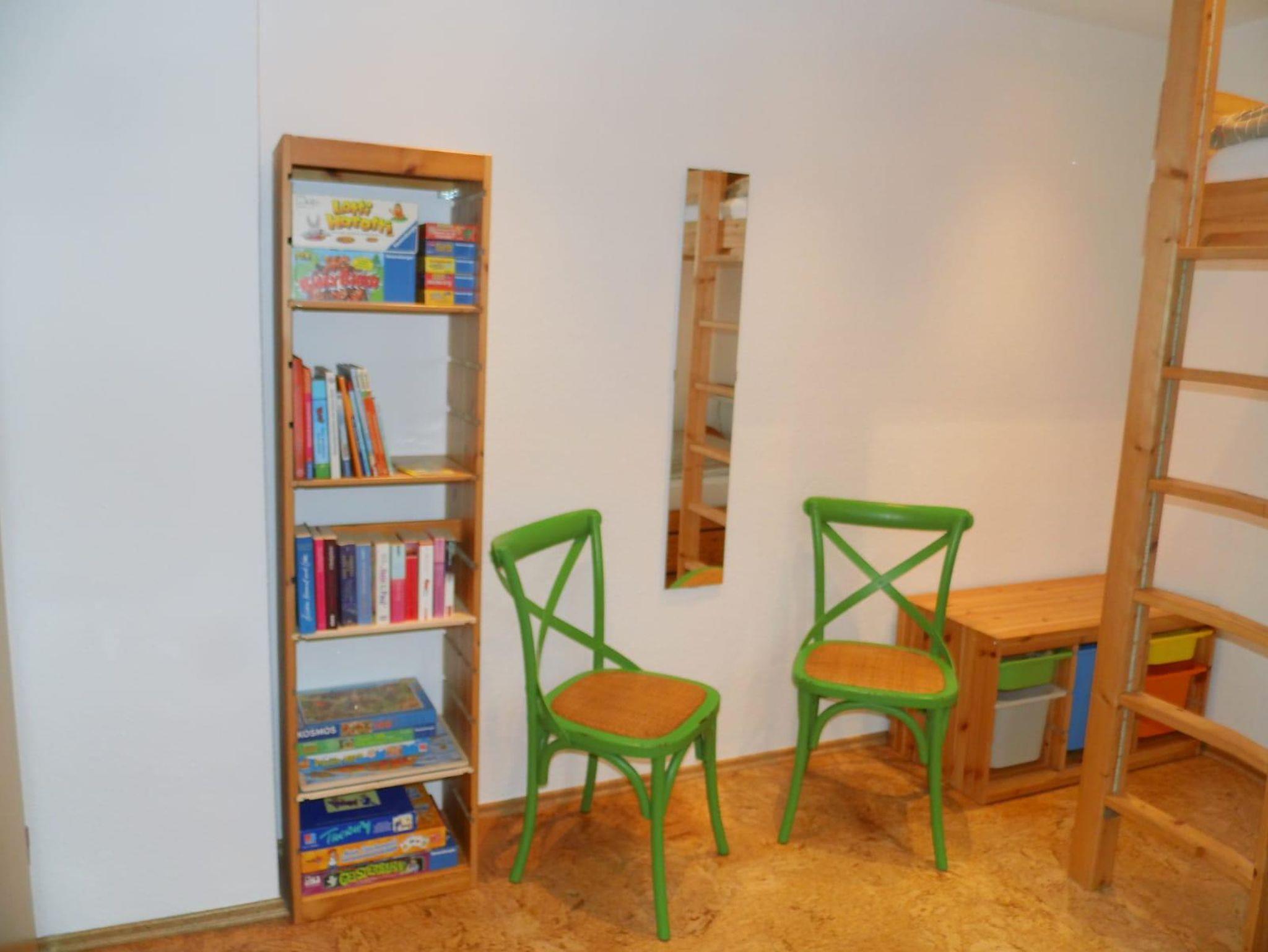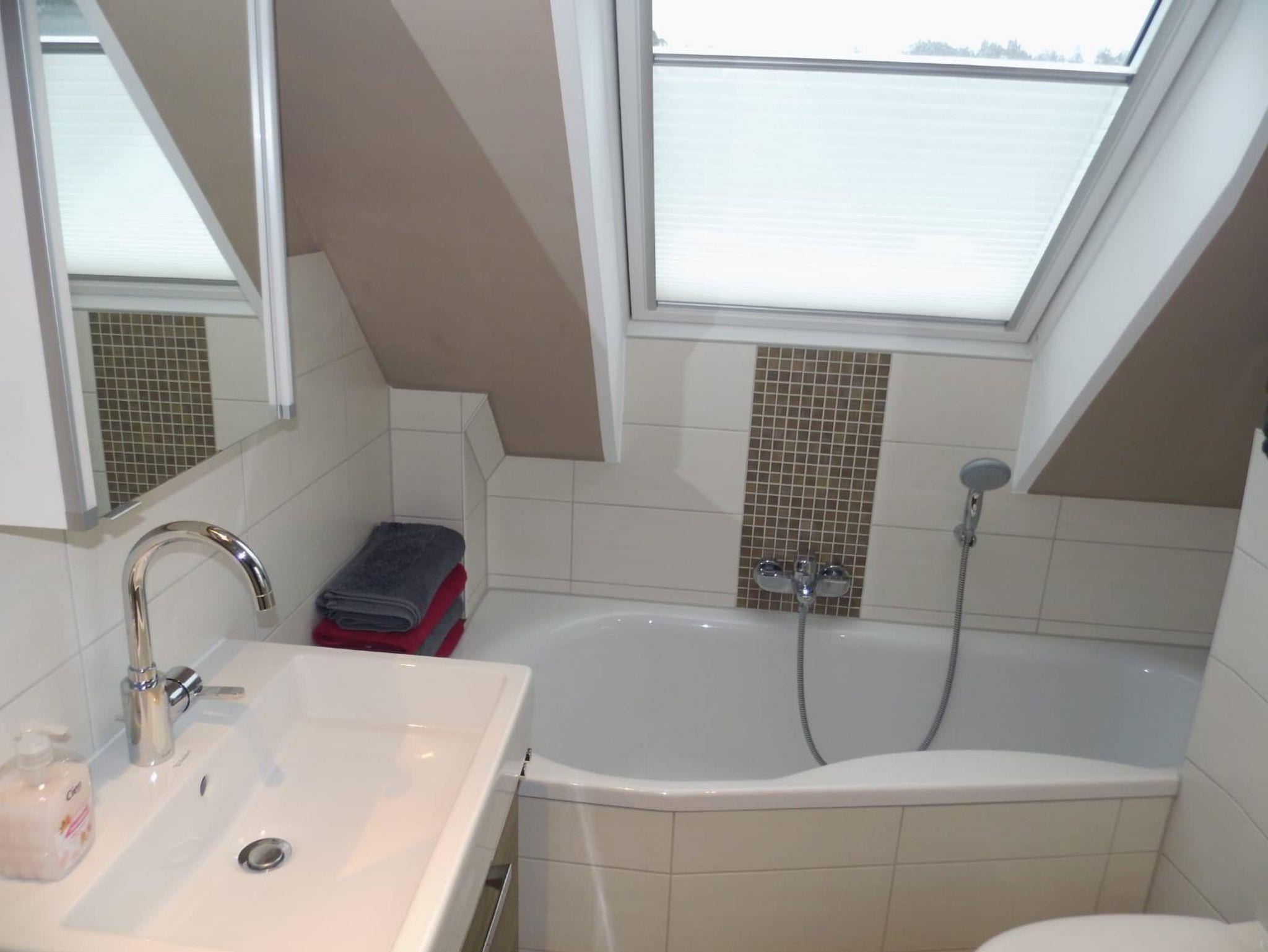 Die Doppelhaushälfte wurde im Jahr 2020 komplett renoviert und neu eingerichtet. Im Erdgeschoss befindet sich ein modernes Wohnzimmer mit einem Ofen, Kabelfernsehen, kostenfreiem W-Lan, eine moderne Küche mit Sitzmöglichkeit, ein Vorratsraum und ein Gäste-WC. Im Obergeschoss befinden sich drei Schlafzimmer (1 Elternschlafzimmer mit Doppelbett und 2 Kinderzimmer mit jeweils einem Einzelbett und einem Hochbett) und ein Badezimmer mit Dusche und Badewanne. Vor dem Wohnzimmer lädt eine Terrasse mit Gartenmöbeln zum Entspannen und zum Grillen ein. Babybett und Hochstuhl sind vorhanden. Im Garten befindet sich eine Gartenhütte zum Unterstellen von Fahrrädern.