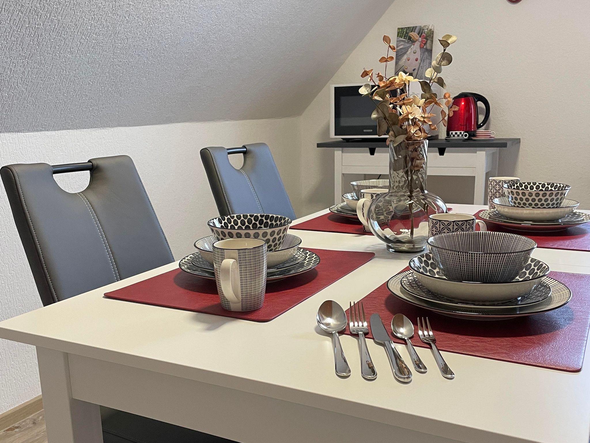 Die modern und mit viel Liebe zum Detail eingerichtete Ferienwohnung verfügt über eine komplett ausgestattete Küche mit Geschrirrspüler, ein gemütliches Wohnzimmer mit Zugang zur moblierten Loggia, 2 Schlafzimmer mit Doppelbetten (180x200 cm), eine Bad mit Dusche und WC, ein separates Gäste WC eine gemütliche Leseecke sowie einen Abstellraum.