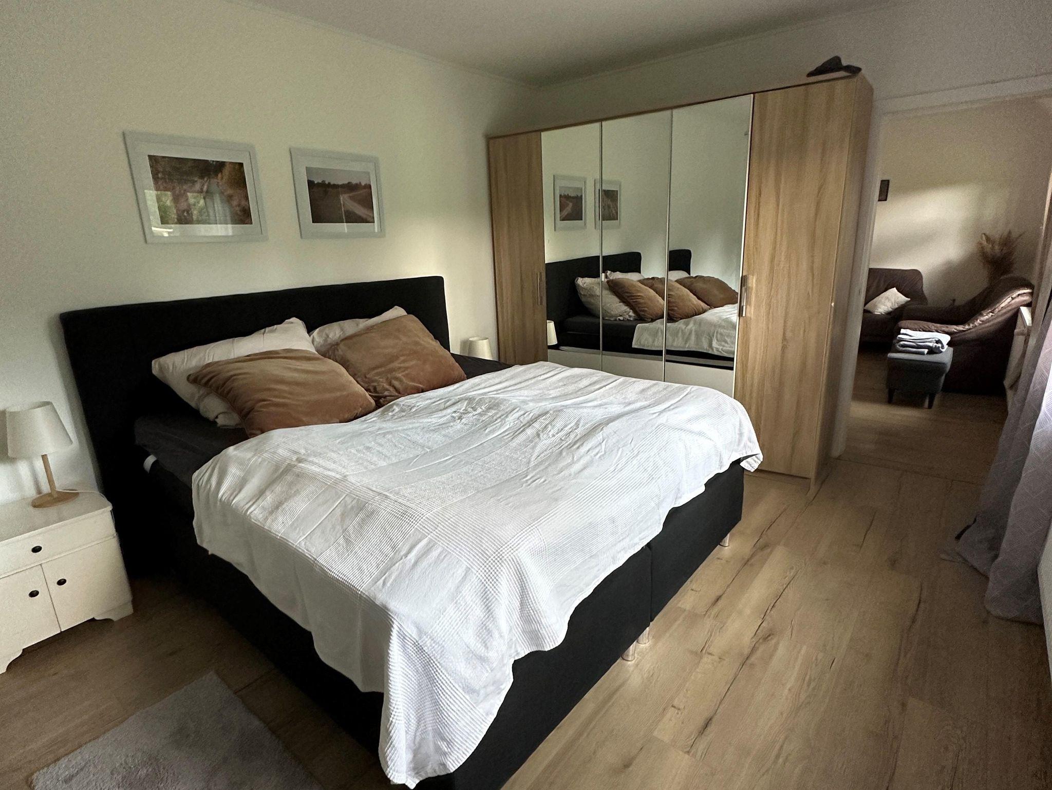 Die familienfreundliche Ferienwohnung für bis zu 4 Personen befindet sich im Erdgeschoss. Sie verfügt über einen separaten Eingang, eine vollausgestattete Küche, ein Wohnzimmer mit Essbereich, ein Schlafzimmer mit einen Boxspringbett, ein Schlafzimmer mit einem Etagenbett, ein Bad mit Dusche und WC sowie ein separates WC.