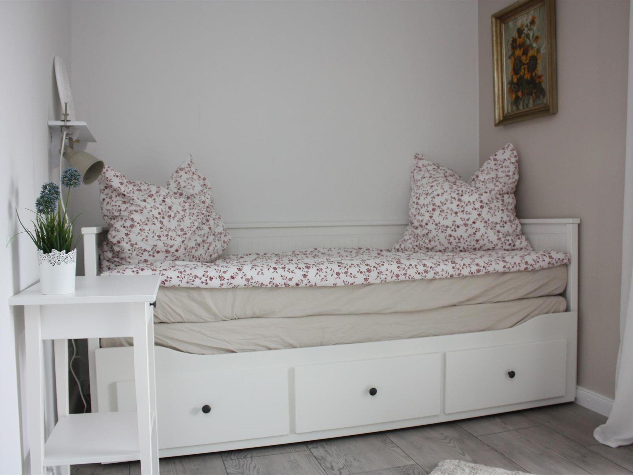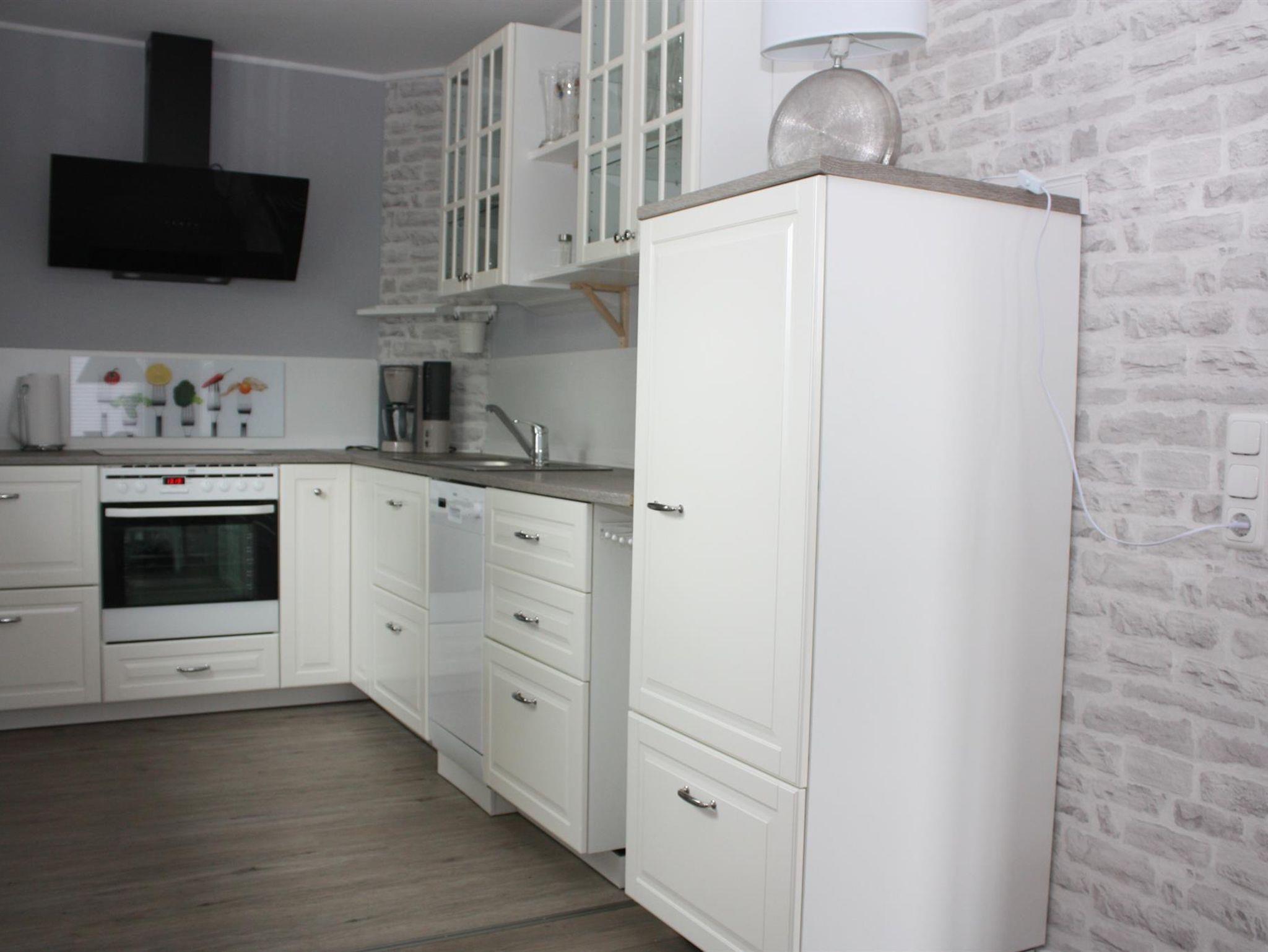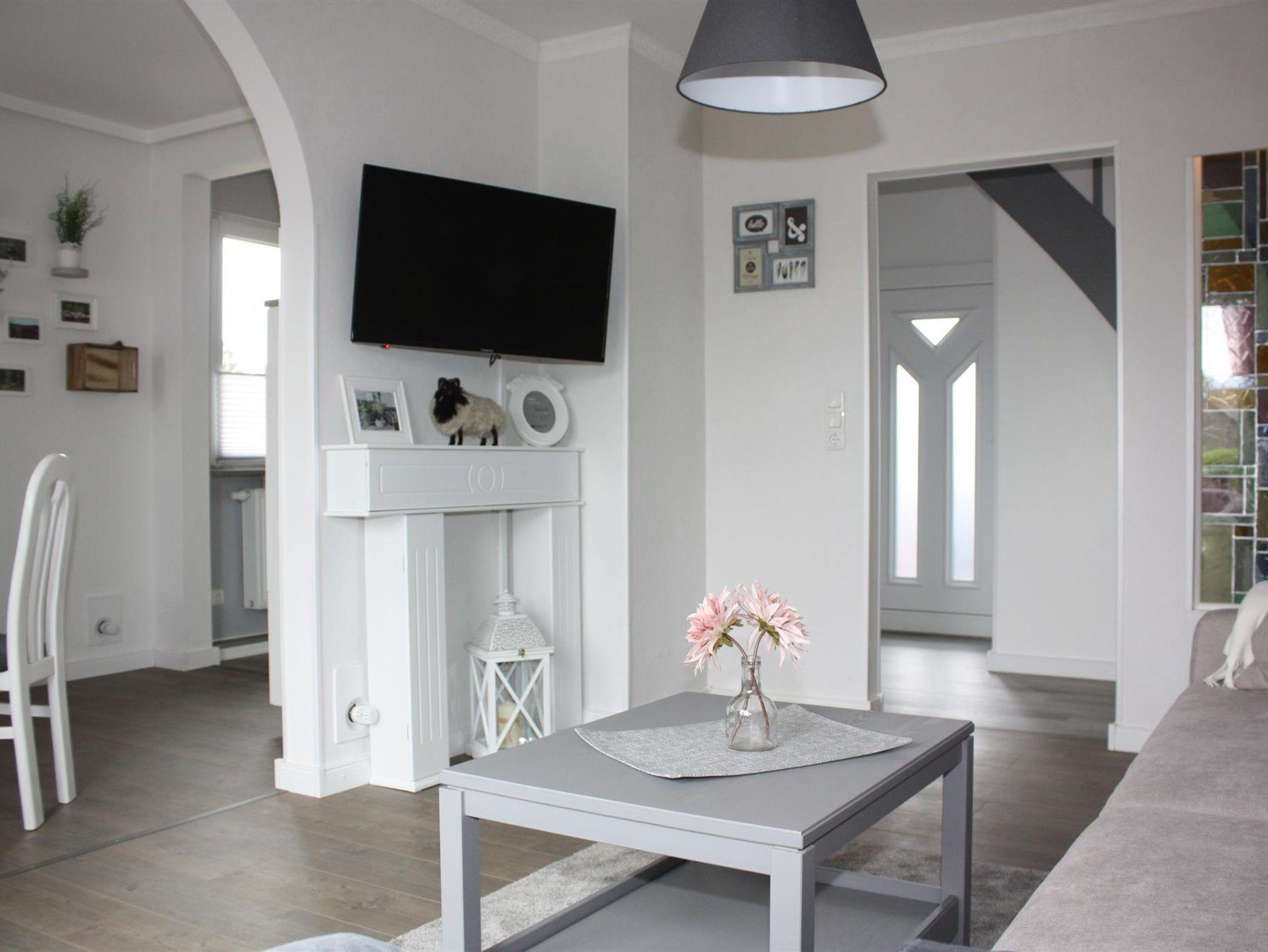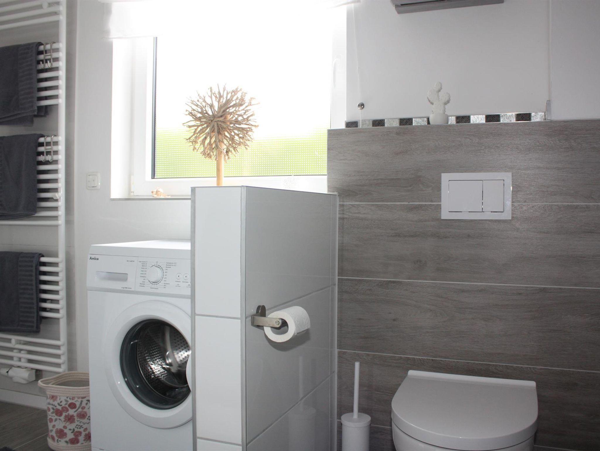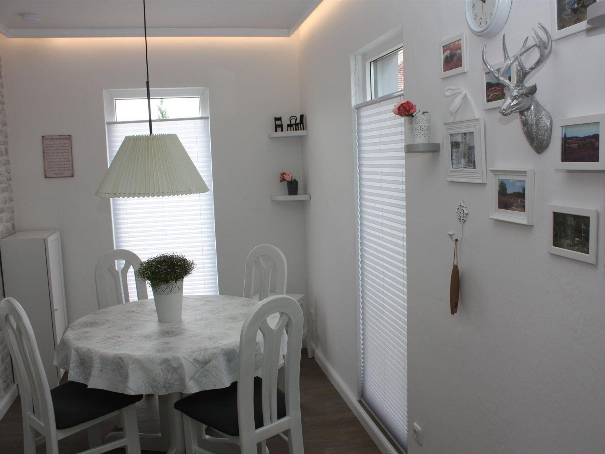 In dem gemütlichen 73 m² großem Ferienhaus, haben Sie die Möglichkeit sich vollkommen zu entspannen. Im Erdgeschoss befindet sich die Küche, diese verfügt über einen Herd mit Dunstabzug, Backofen, Spülmaschine, eine Mikrowelle gibt es auf Wunsch auch. Die richtigen Küchengeräte sind ebenfalls vorhanden, Wasserkocher, Kaffeemaschine, Toaster und um morgens gut in den Tag zu starten auch ein Radio mit Bluetooth Funktion. Die Küche ist zum Esszimmer offen, am Esstisch für bis zu 4 Personen, findet jeder seinen Platz. Im Erdgeschoss befindet sich auch das erste Schlafzimmer mit einem ausziehbarem Bett, mit Zugang zur Terrasse. Nebenan liegt das große Badezimmer mit Dusche und Waschmaschine, hier finden Sie einen Haarfön, einen Kosmetikspiegel und eine begehbare Dusche. das geräumige Wohnzimmer ist mit einen Sofa und einem Flachbild-TV ausgestattet.