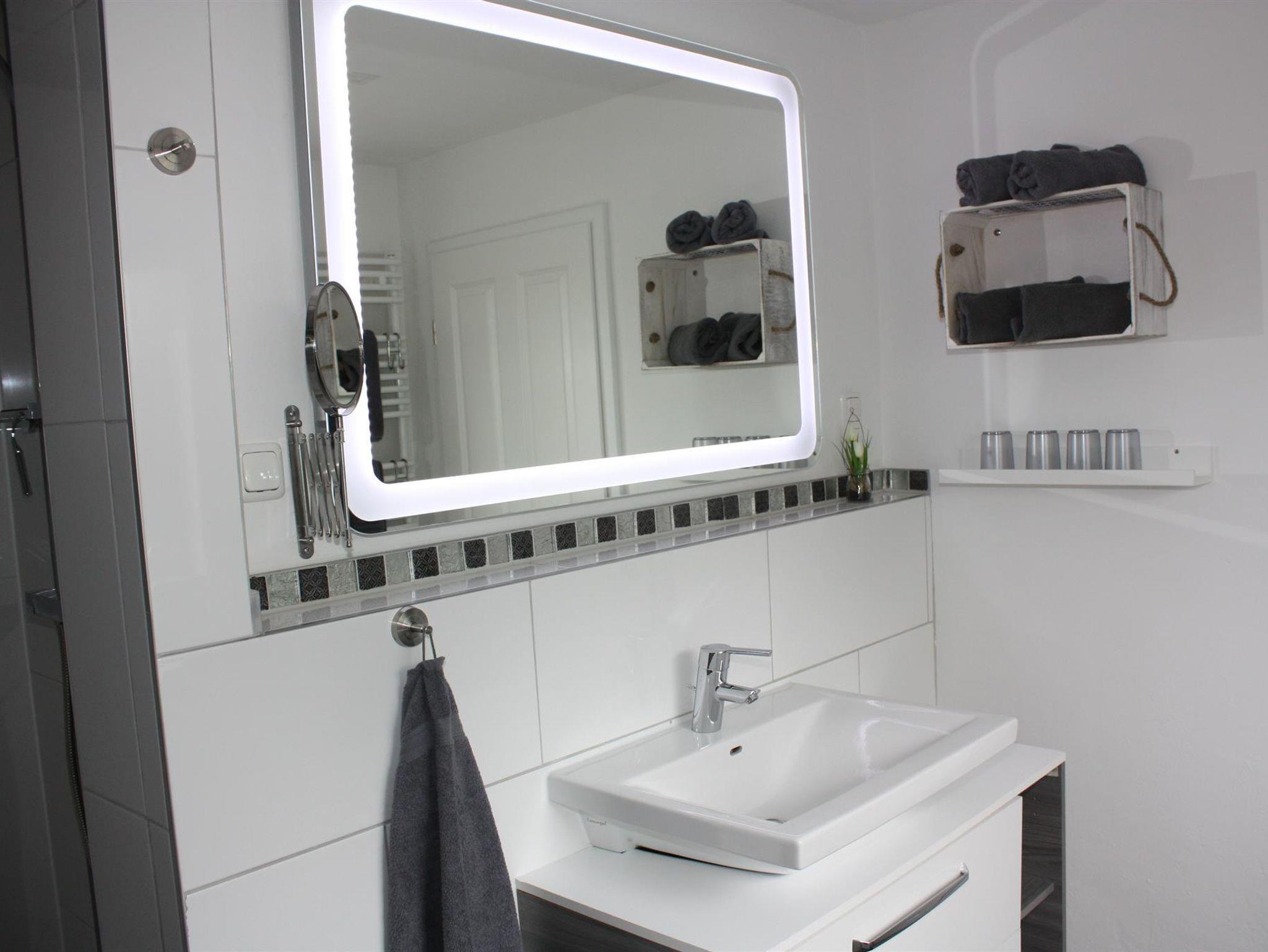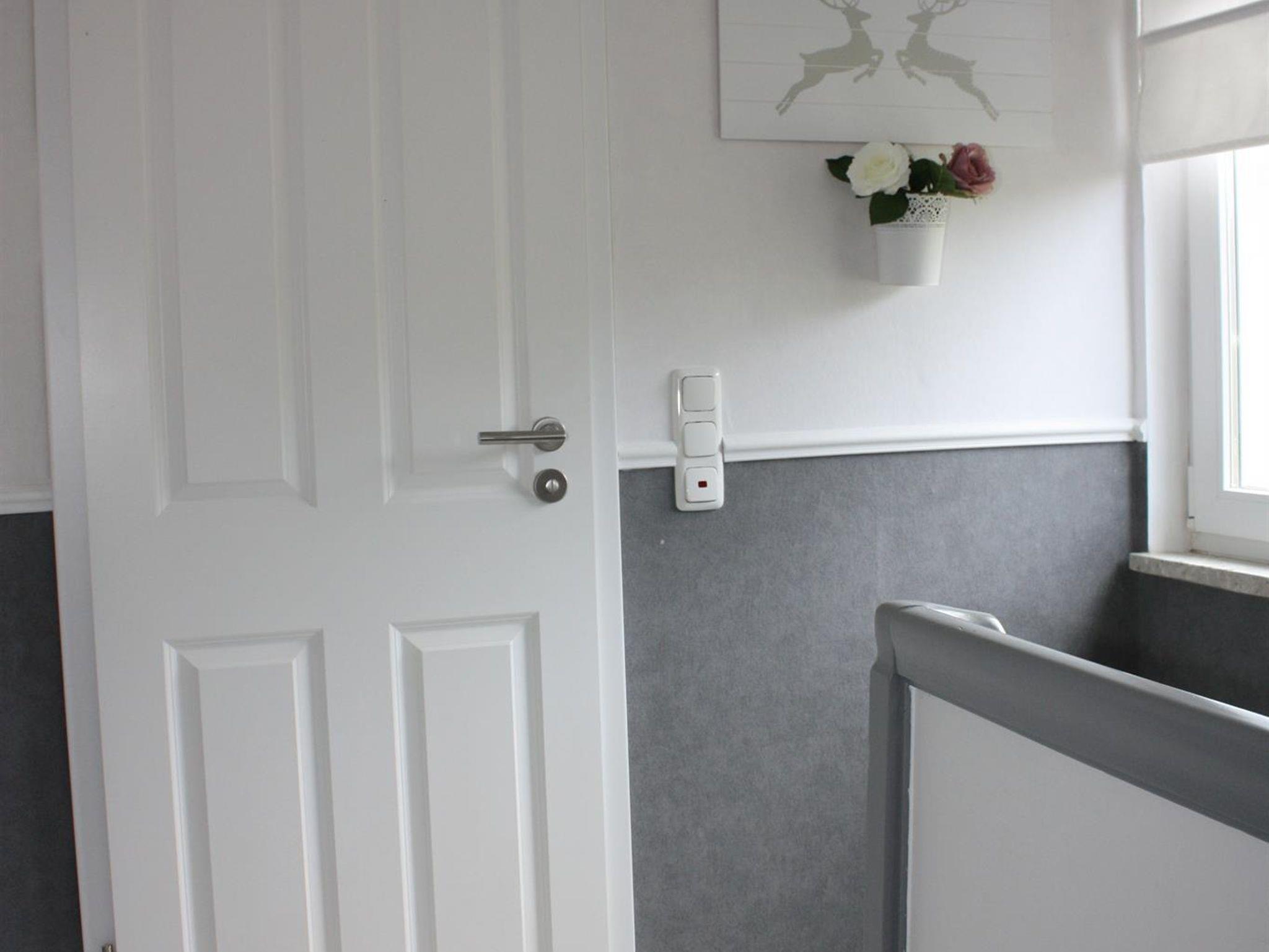 Der beleuchtete Treppenaufgang, führt Sie ins 1. Obergeschoss, dort befindet sich das WC und das Doppelzimmer, mit Weckeinrichtung und einem Flachbildfernseher. Für unsere kleinen Gäste stehen Ihnen auf Wunsch, ein Hochstuhl, Babybett und eine bunte Spielesammlung zur Verfügung.