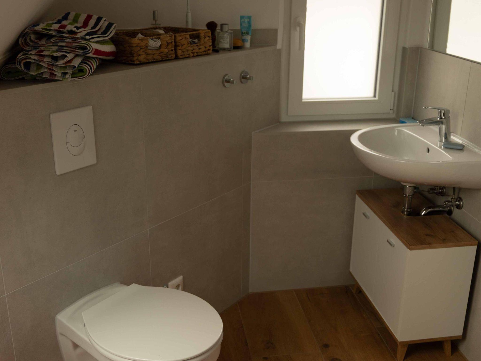 Die Ferienwohnung ist über eine Außentreppe erreichbar und verfügt über einen einladenden Flur, eine großzügige Wohnküche mit Schlafsofa für die dritte und vierte Person, ein gemütliches Schlafzimmer mit herrlichem Ausblick sowie ein modernes Badezimmer mit Dusche und WC.