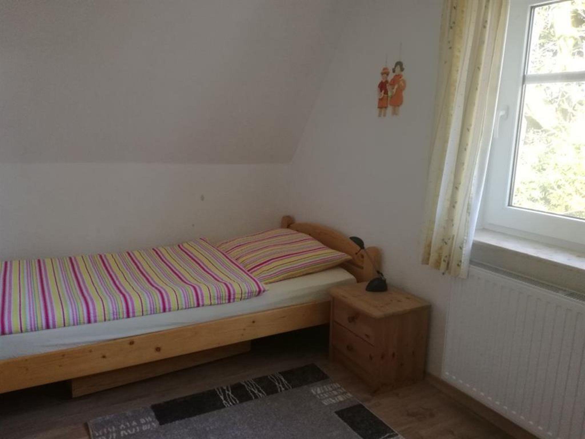 Das 100 m² große Ferienhaus für 6 Personen verfügt über 3 Schlafzimmer, 2 Bäder mit Dusche und WC ( 1 x EG, 1 x OG), eine separate, vollausgestattete Küche und 1 großes Wohnzimmer. Zwei der drei Schlafzimmer sind über eine Raumspartreppe zu erreichen.