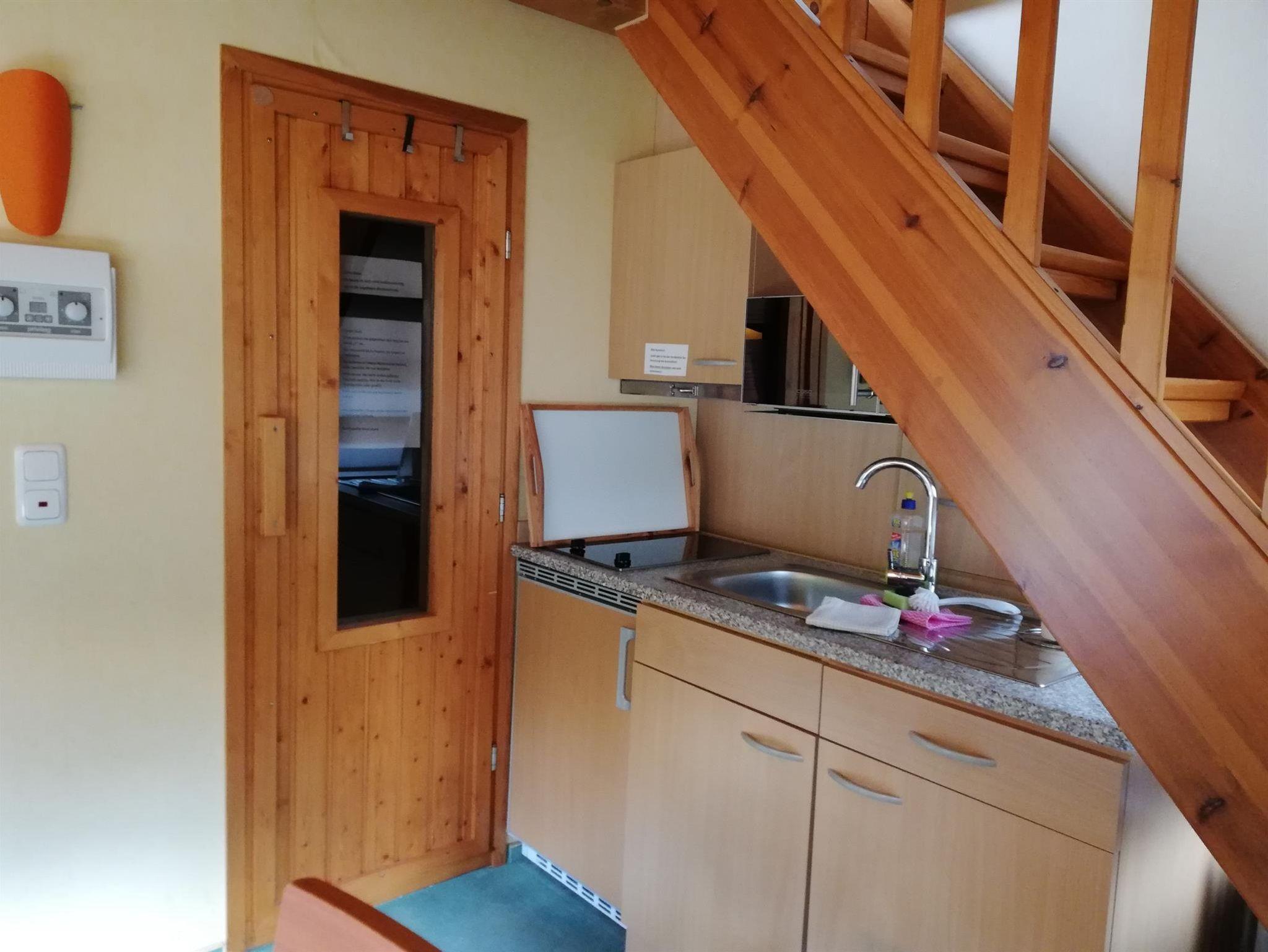 Ferienhaus, 45 m², im Erdgeschoss und Obergeschoss. Wohnzimmer, Küche, 1 Schlafzimmer, Bad mit Dusche und WC.