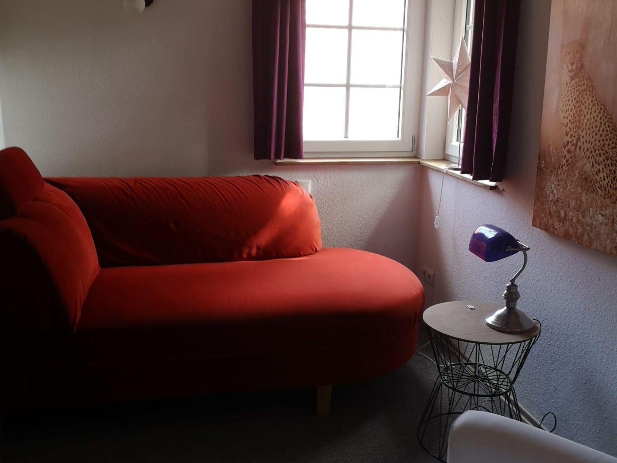 Dieses modern und liebevoll eingerichtete Doppelzimmer mit einem französischem Bett, ist durch den Hauseingang des Vermieters über eine schmale Treppe zu erreichen. Das separate WC befindet sich auf dem angrenzenden Flur. Das Bad ist gemeinsam mit dem Vermieter im Erdgeschoss zu nutzen.
