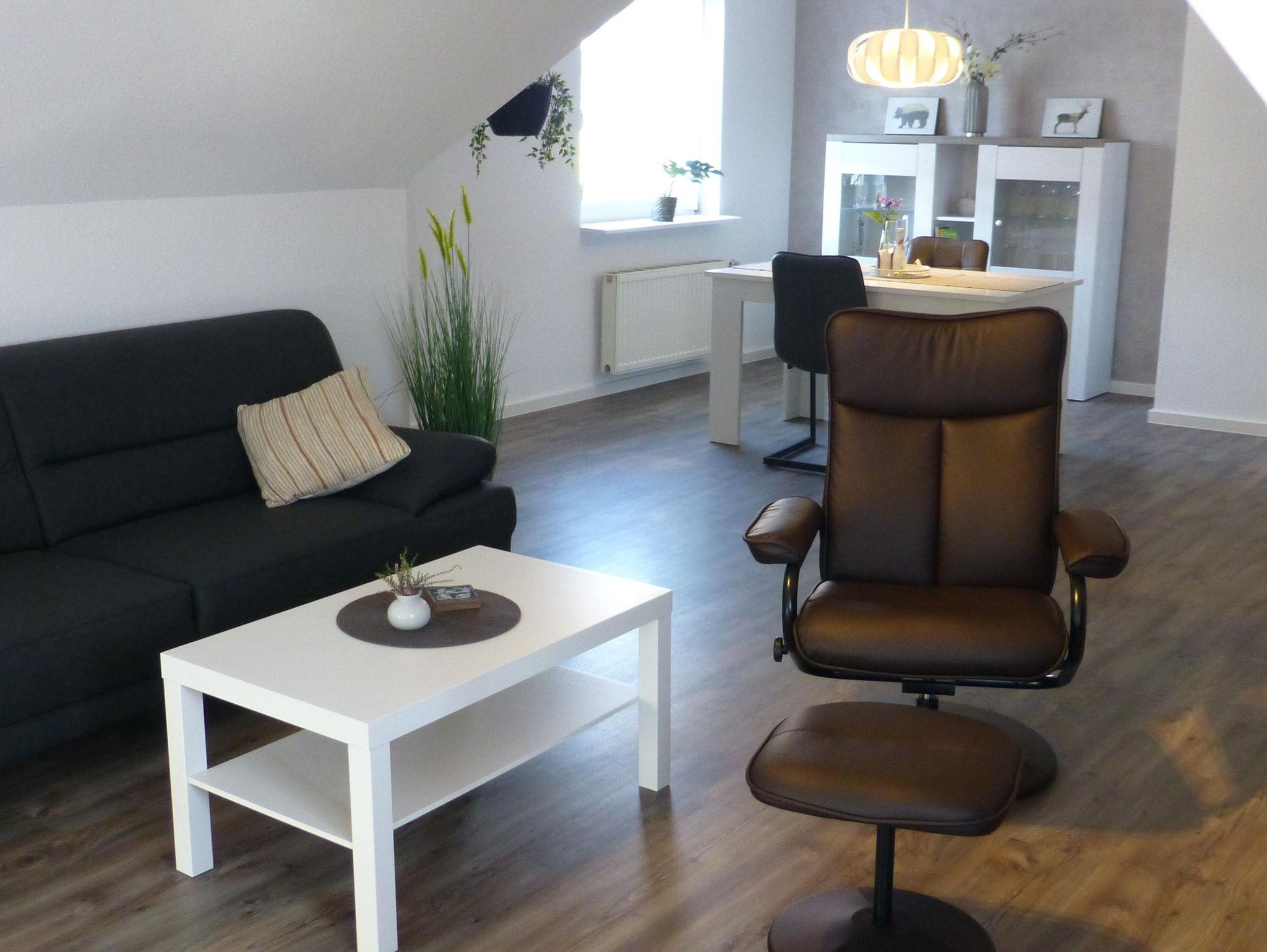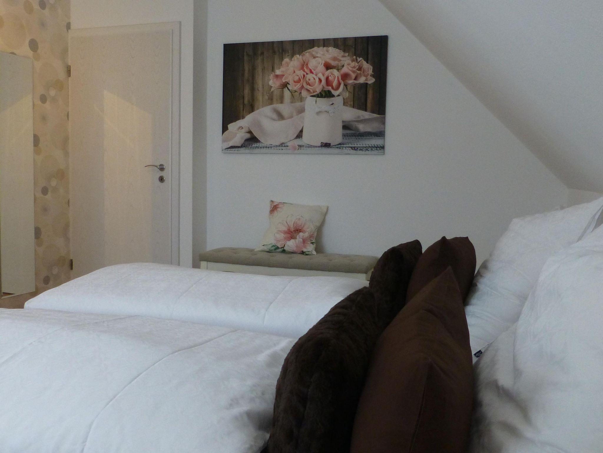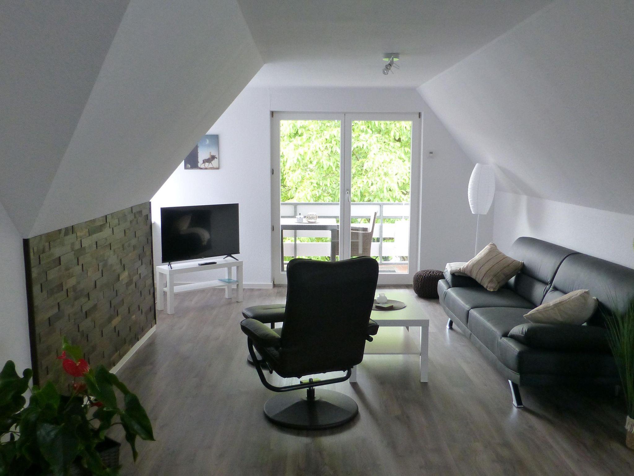 Die hell, modern und mit sehr viel Liebe zum Detail eigerichtete Ferienwohnung verfügt über Wohnzimmer mit Essgelegenheit, eine komplett ausgestattete Küche, ein Schlafzimmer mit Doppelbett, ein Bad mit Badewanne und Dusche sowie ein separates WC. Sonnige Stunden genießen Sie auf dem Balkon.