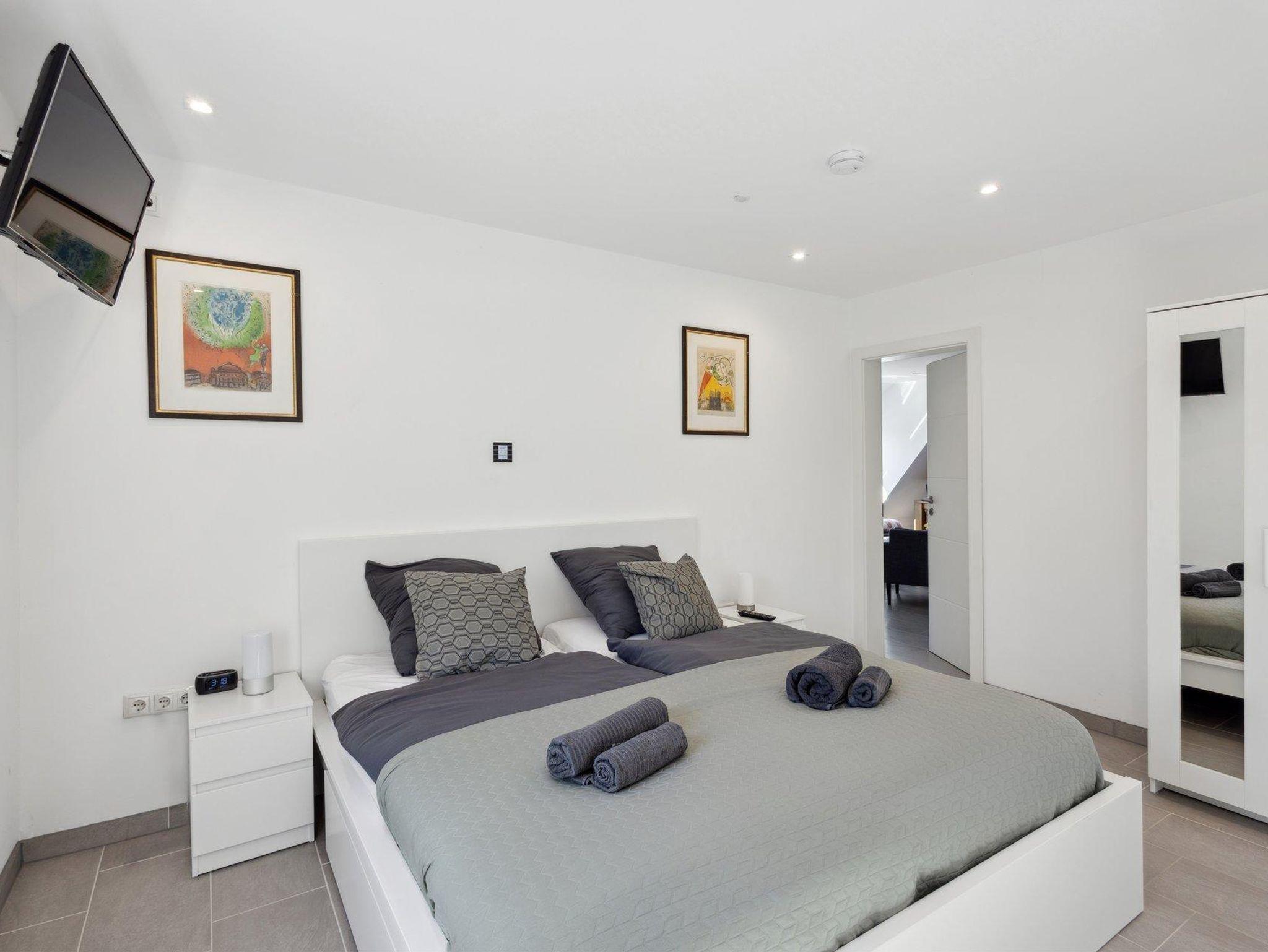 Diese Ferienwohnung bietet Komfort für bis zu 6 Personen. Der zentrale Wohnbereich vereint Wohnzimmer und Küche zu einer großzügigen Wohnküche – ausgestattet mit einem Kaffeevollautomat, einer Geschirrspülmaschine und einem gemütlichen Essbereich. Ein Flachbild-TV sowie ein Sofa, das sich in eine Schlafgelegenheit für die 5. und 6. Person umwandeln lässt.