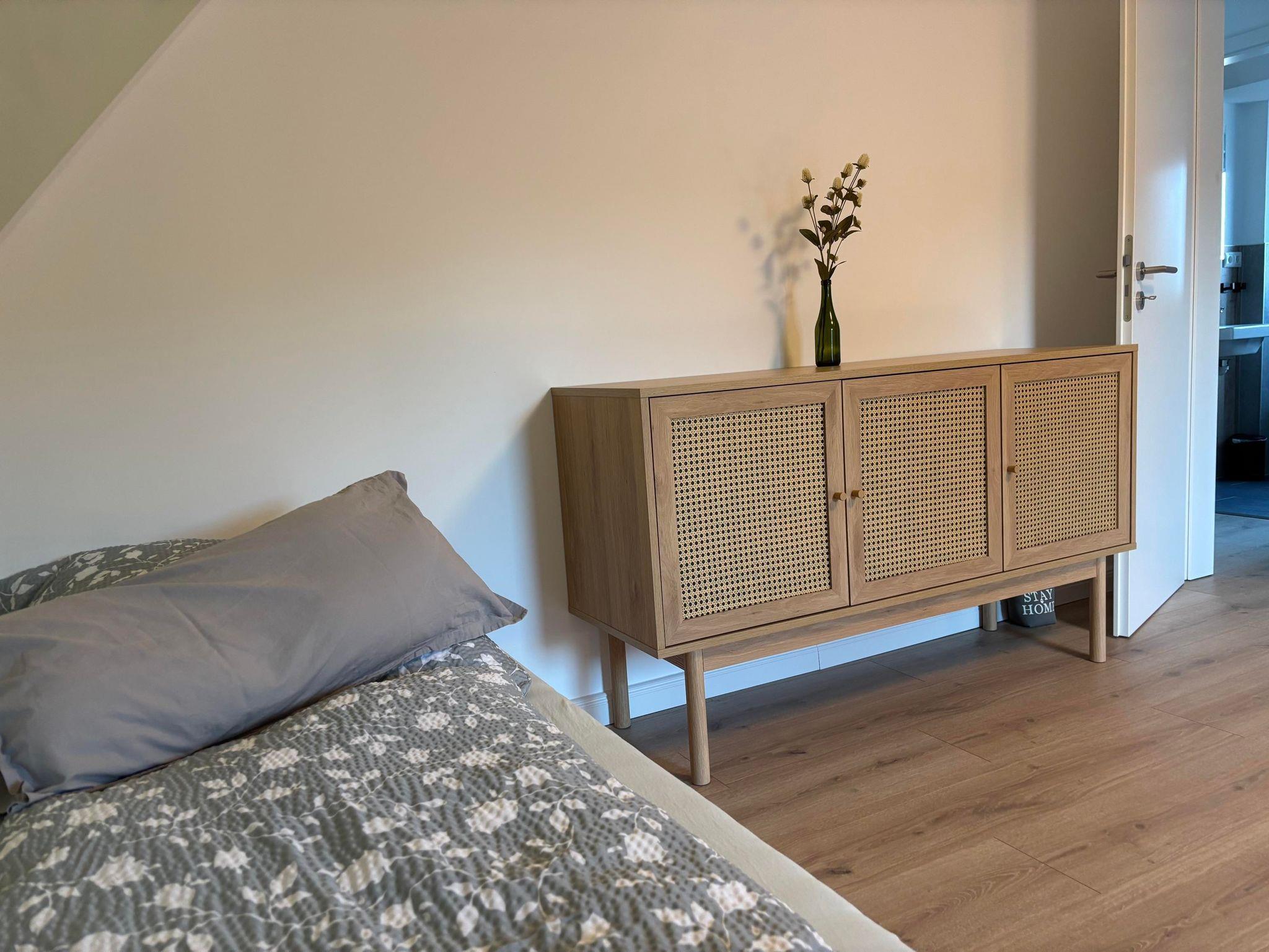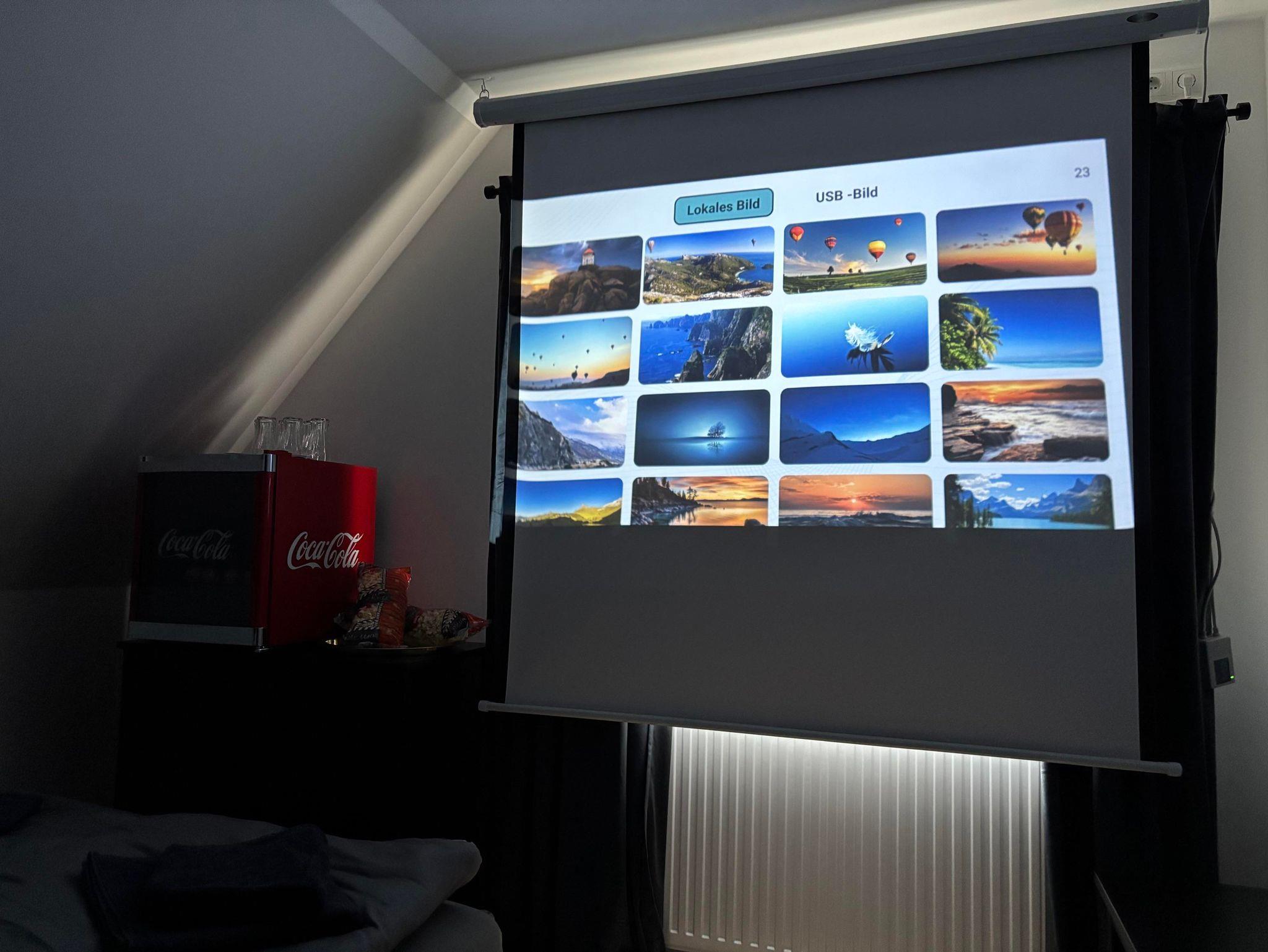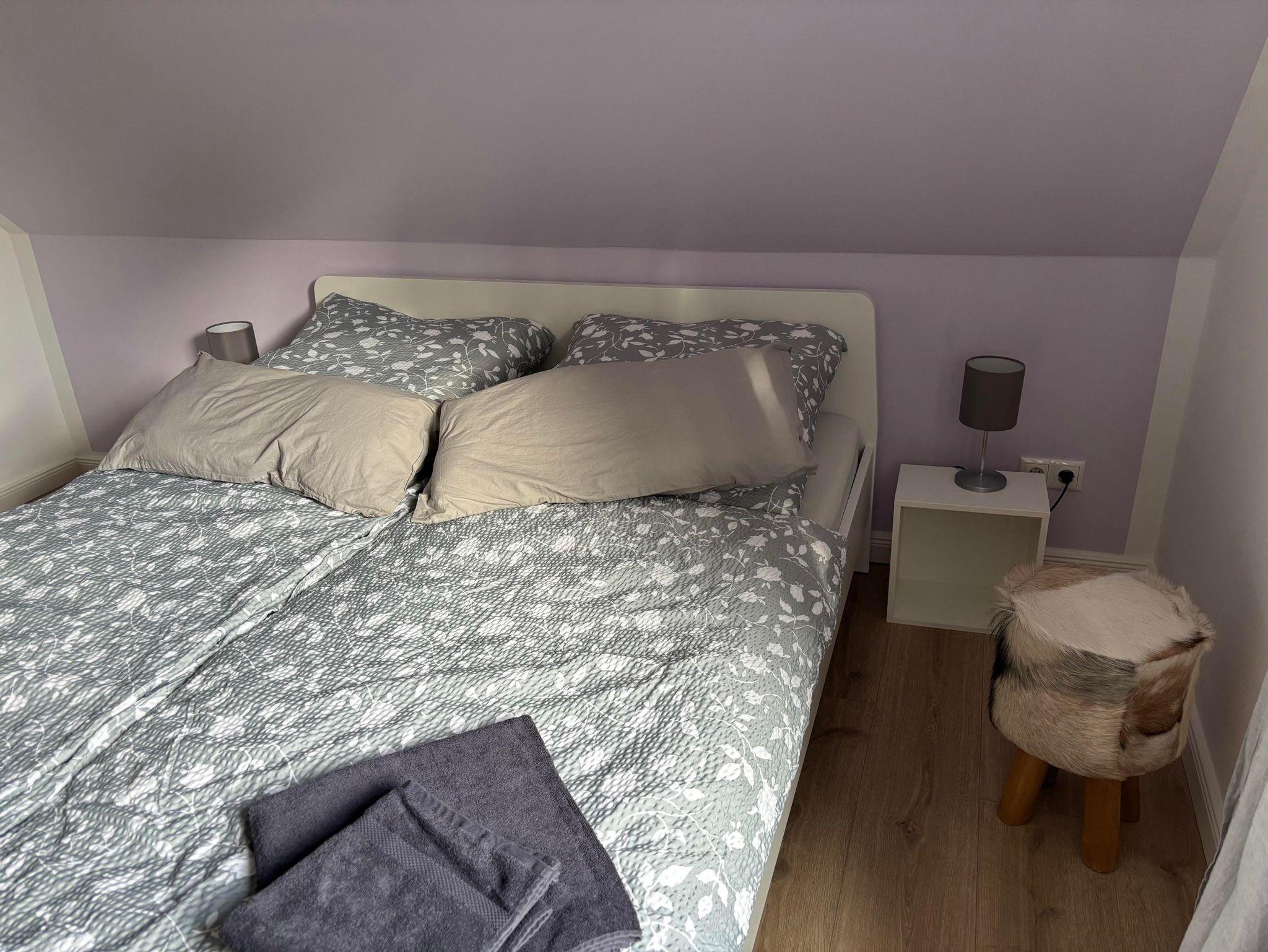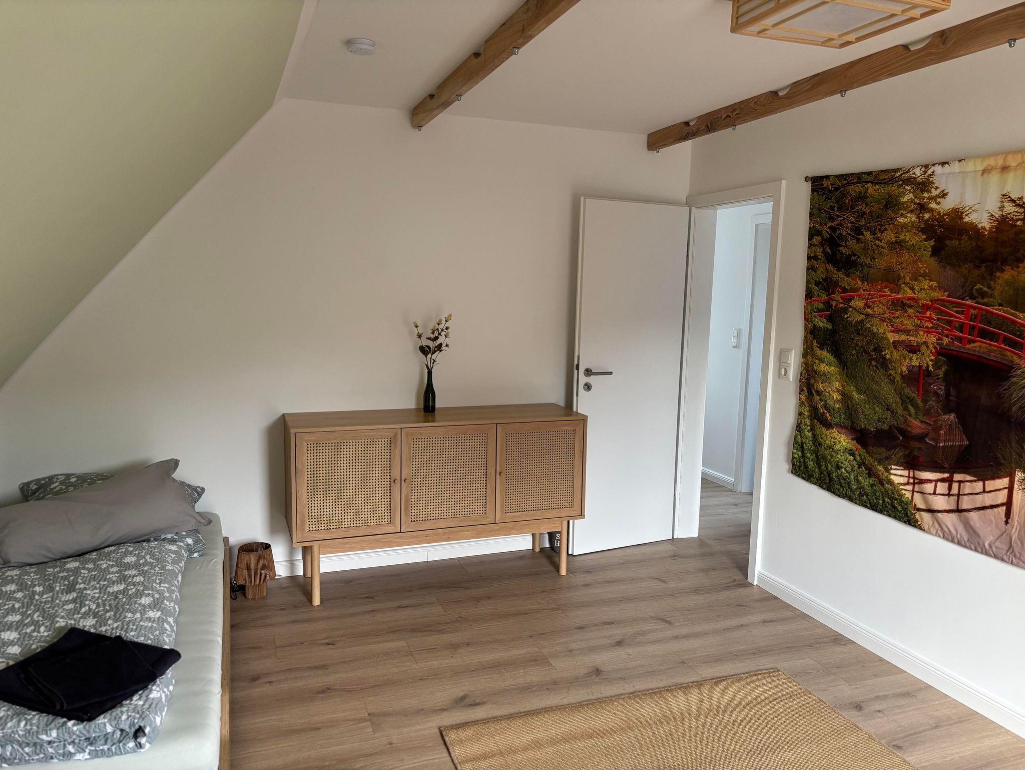 Im Obergeschoss befinden sich die Themschlafzimmer Kinozimmer mit Beamer, Leinwand und Kinosessel, Japanzimmer und natürlich das Heidezimmer sowie ein großes Bad mit Dusche und WC.