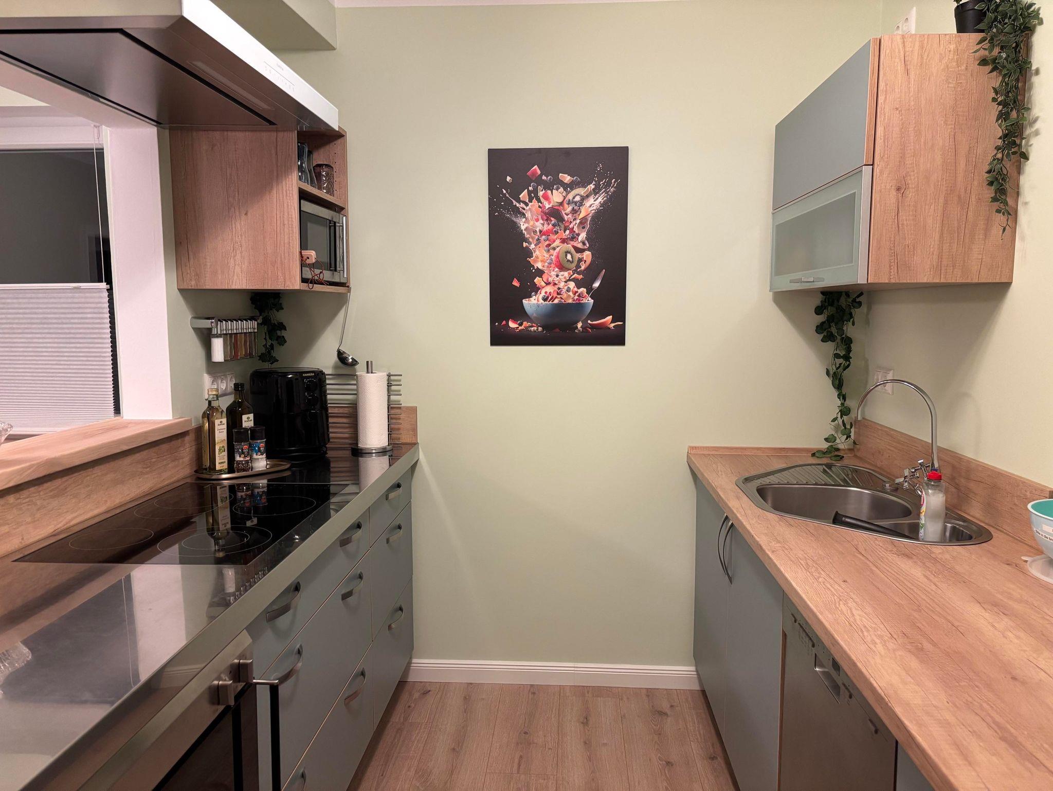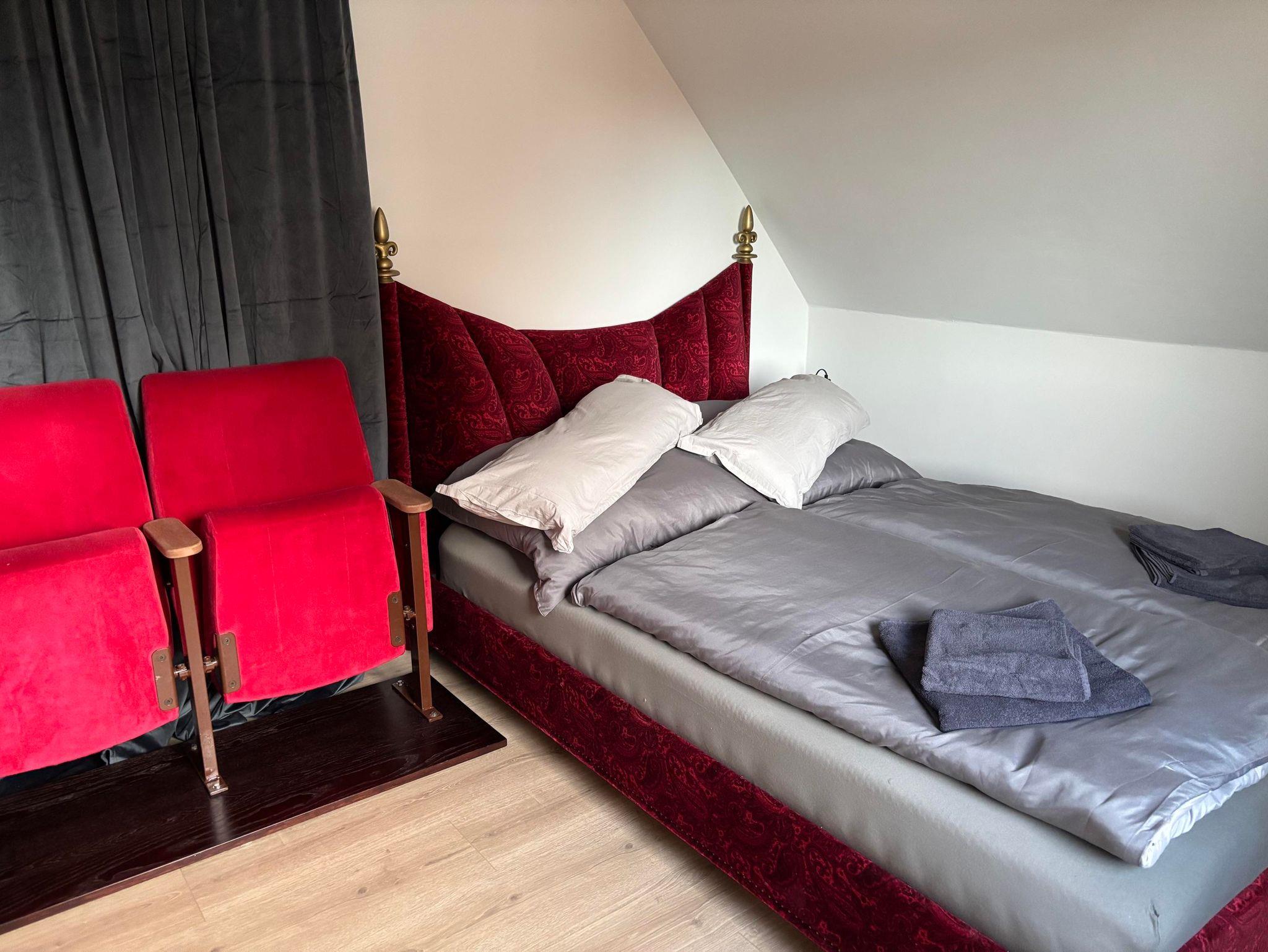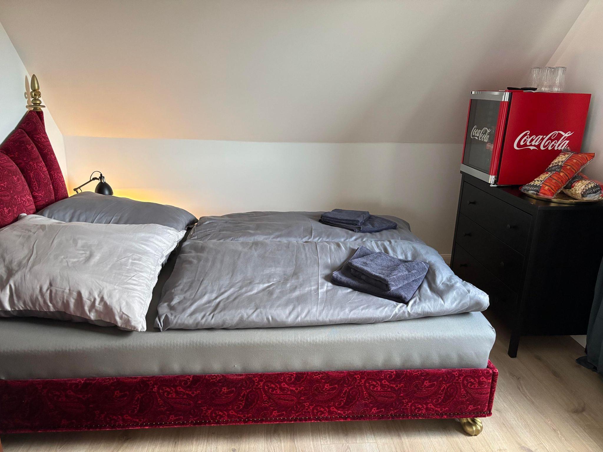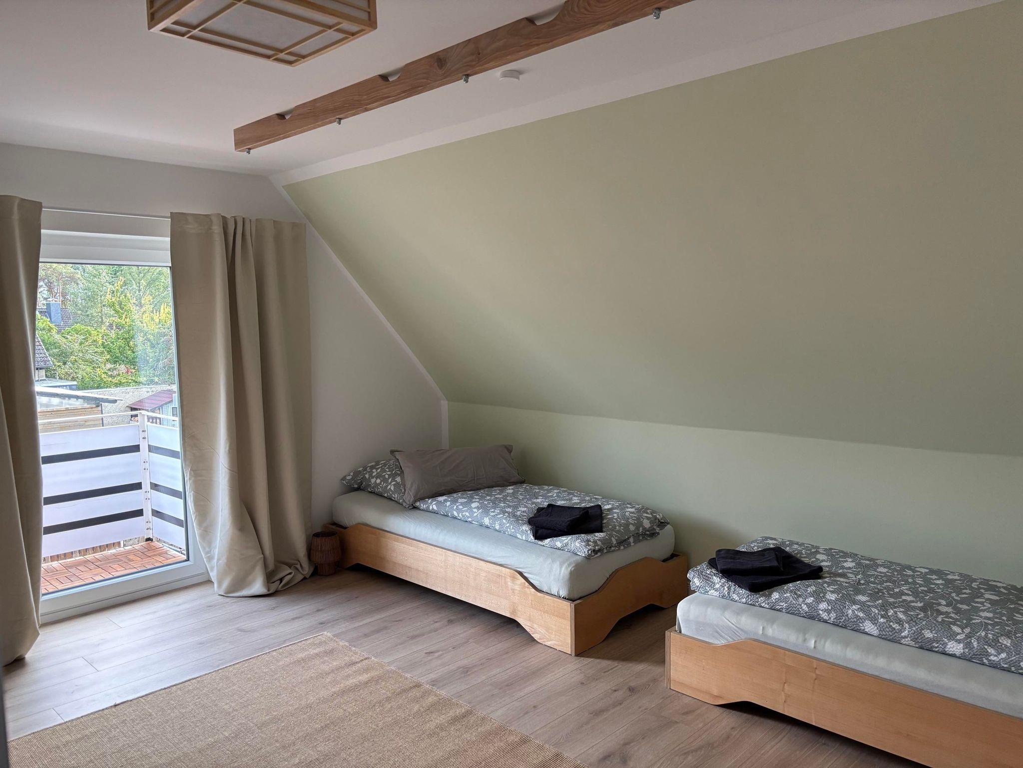 Im Obergeschoss befinden sich die Themschlafzimmer Kinozimmer mit Beamer, Leinwand und Kinosessel, Japanzimmer und natürlich das Heidezimmer sowie ein großes Bad mit Dusche und WC.