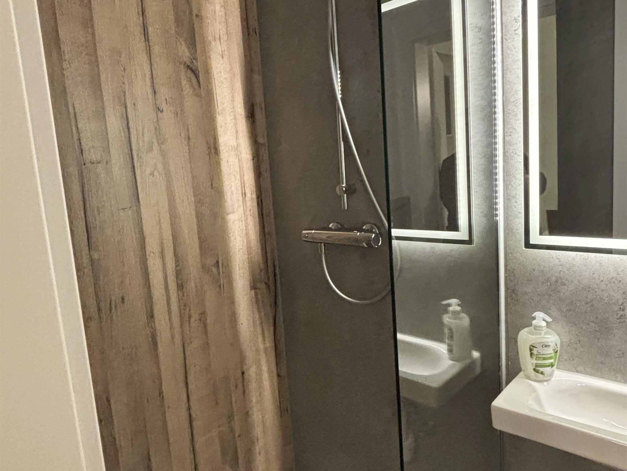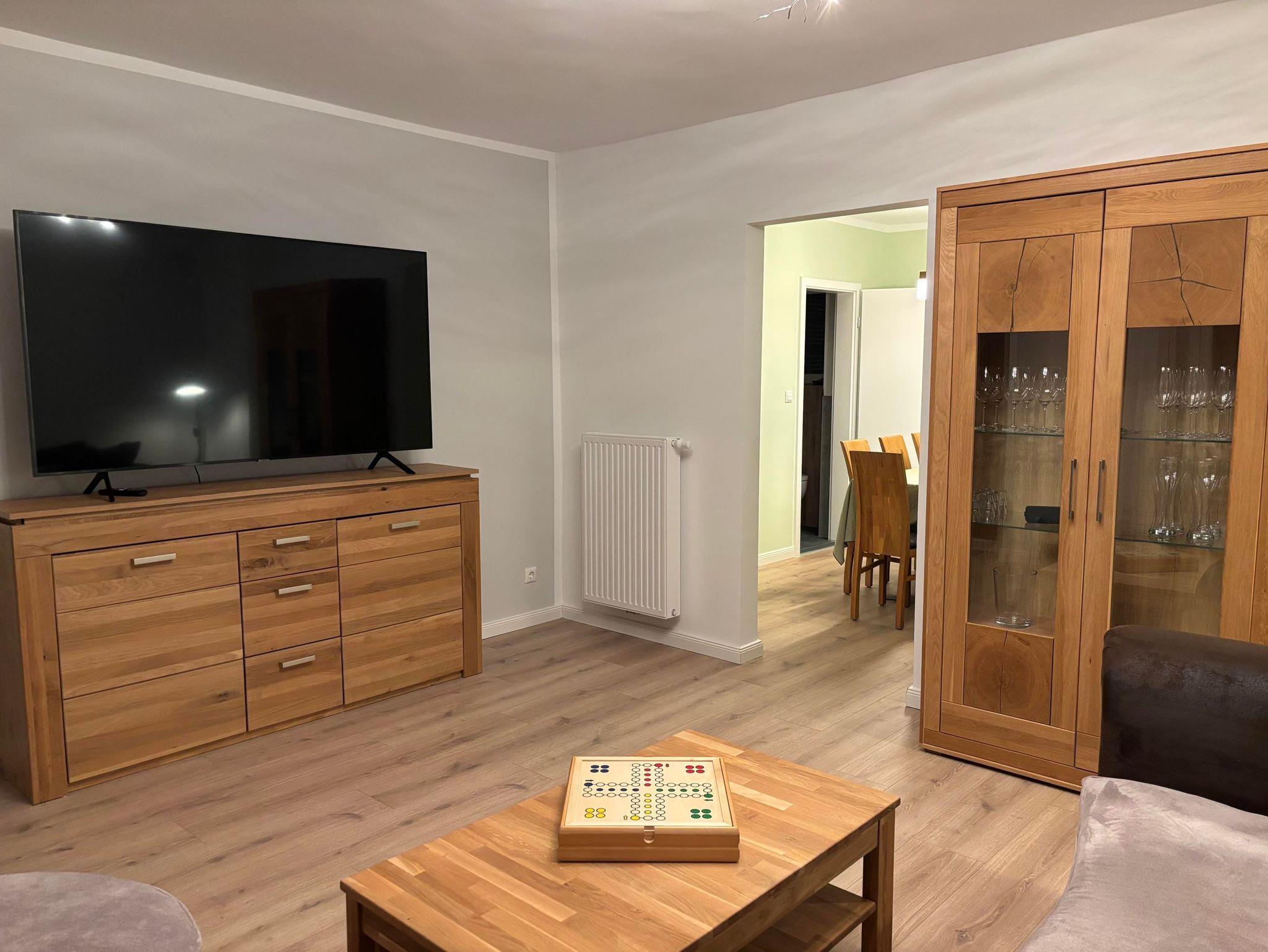 Das 100 m² große Ferienhaus verfügt im Erdgeschoss über eine vollausgestattete Küche mit Spülmaschine, ein Esszimmer, ein Wohnzimmer mit großer TV Anlage, ein Bad mit Dusche und WC und das Themenschlafzimmer Hamburg.