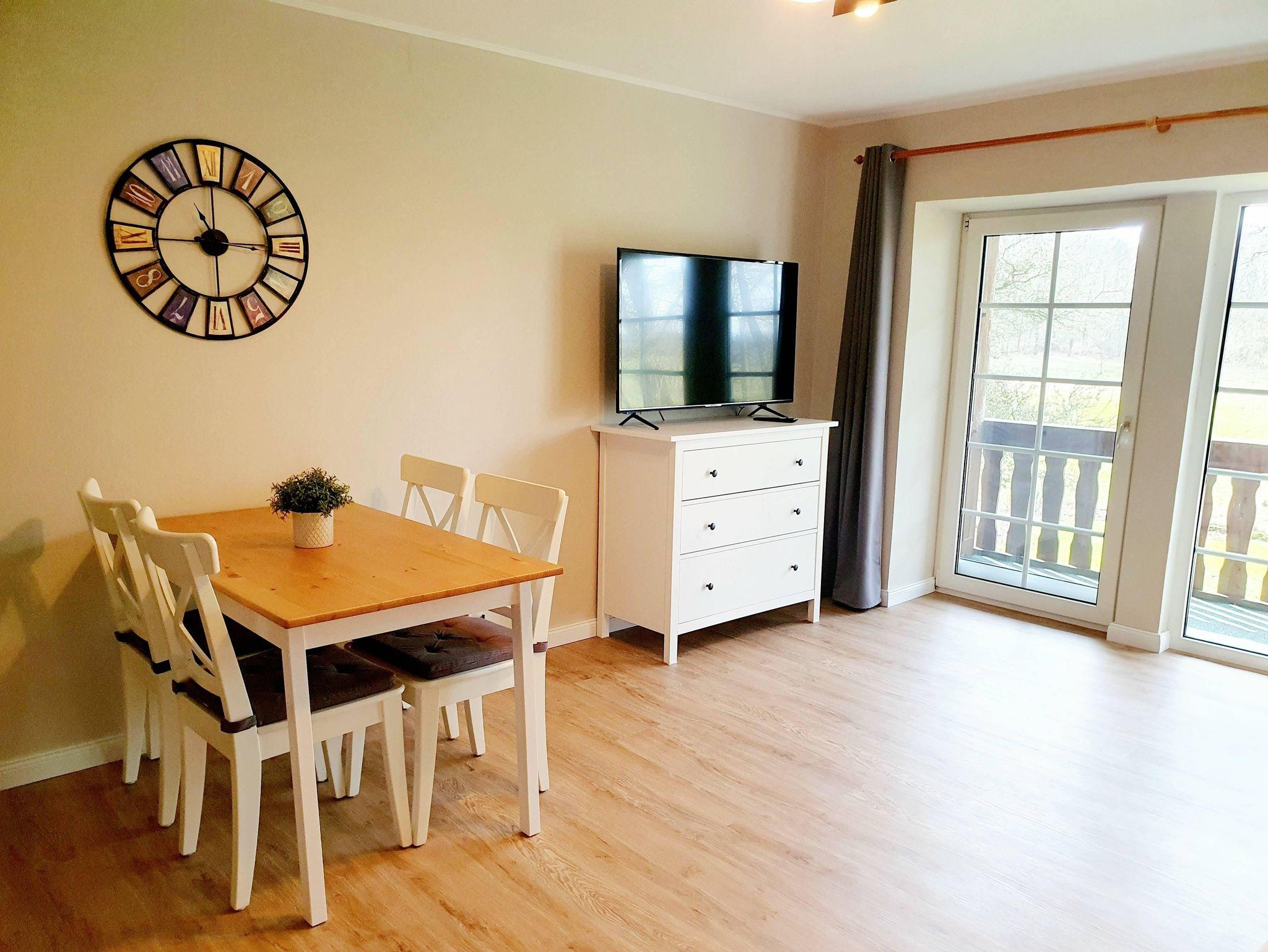 • Wohnzimmer mit gemütlicher Sitzecke, Smart TV und Bluetooth Radio